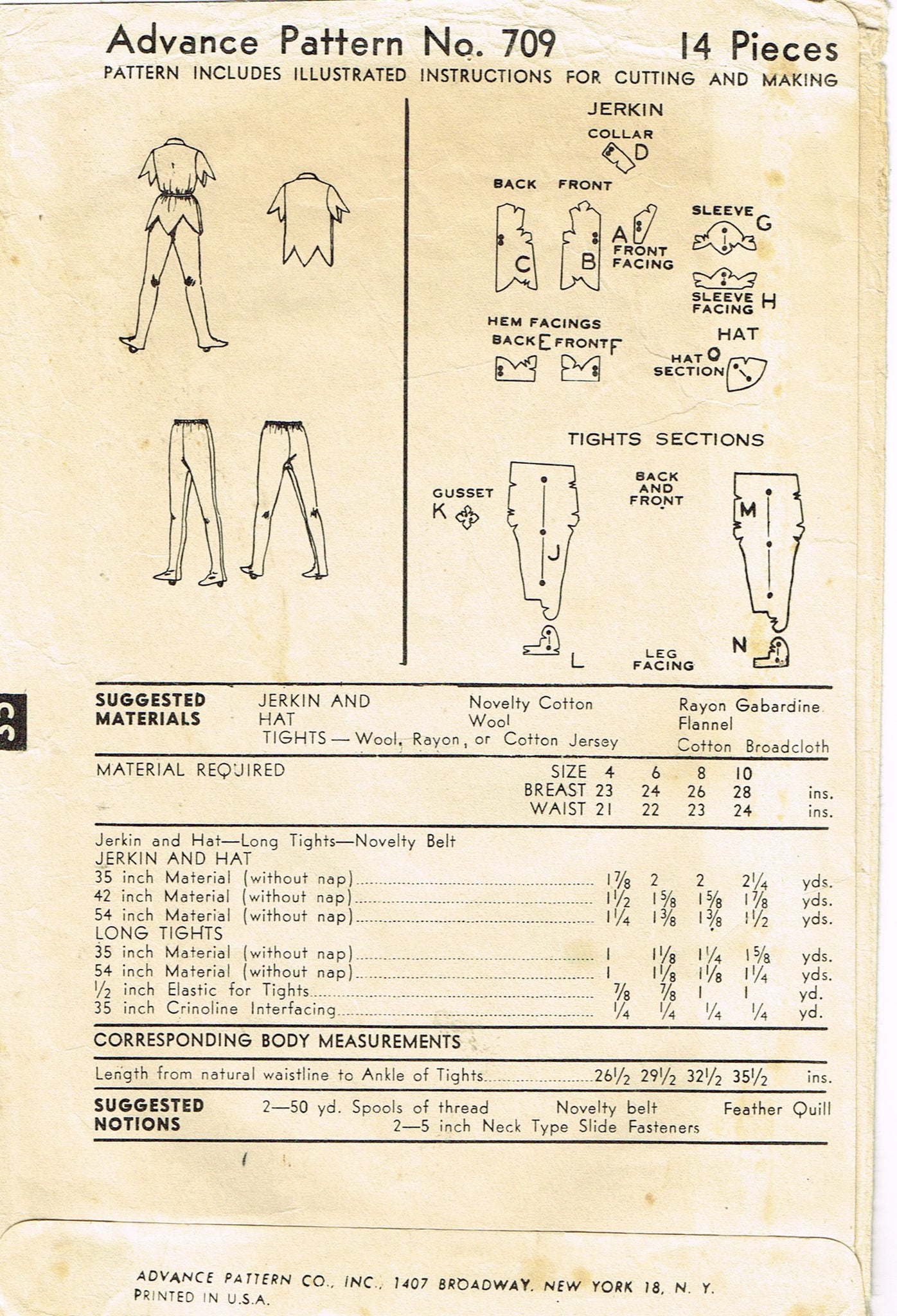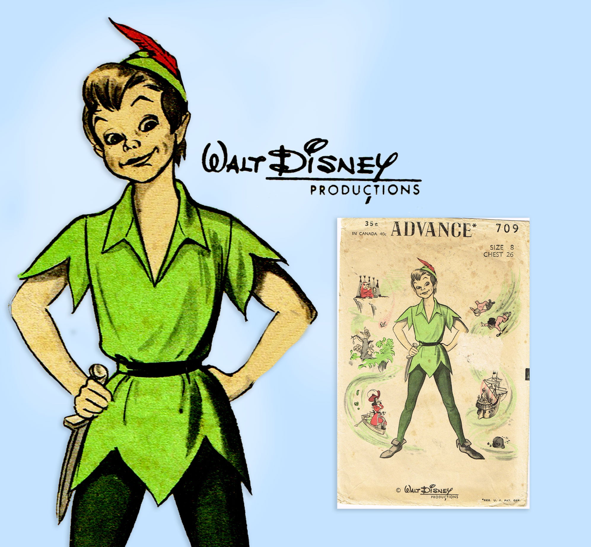 Advance 709: 1950s Rare Kids Peter Pan Costume w Hat Sz 8 Vintage Sewing Pattern