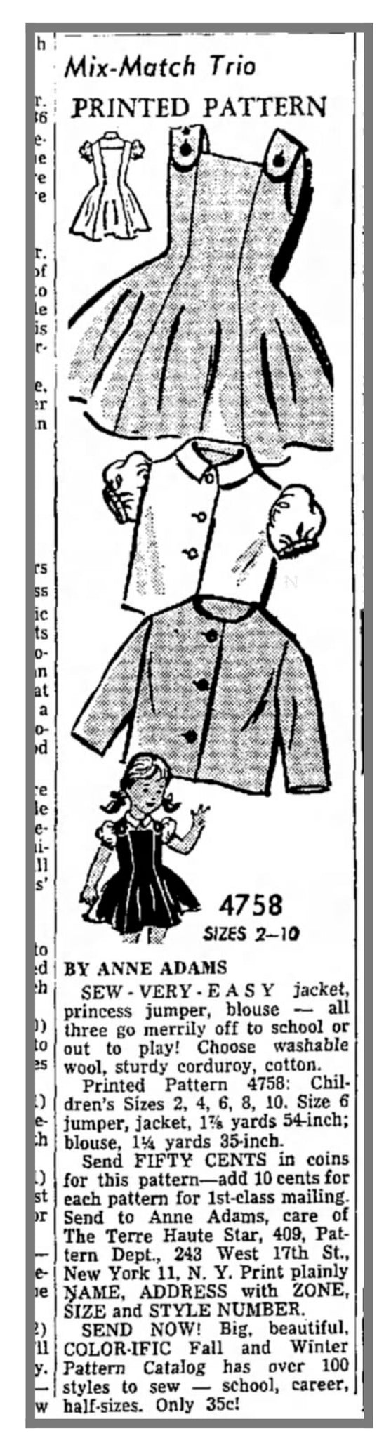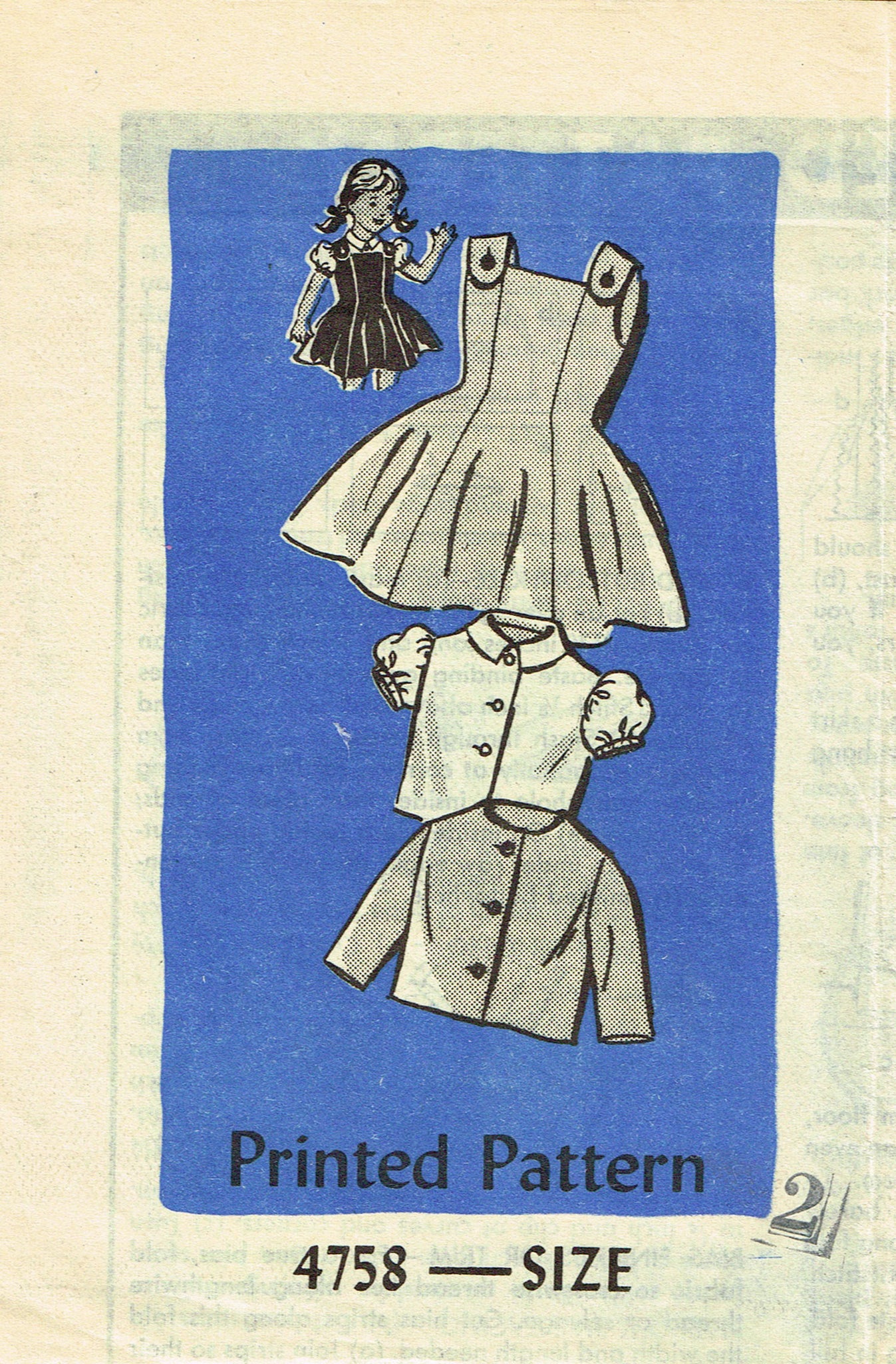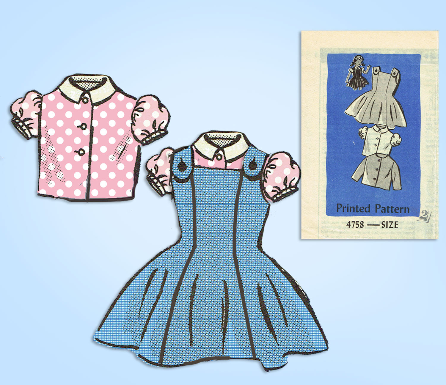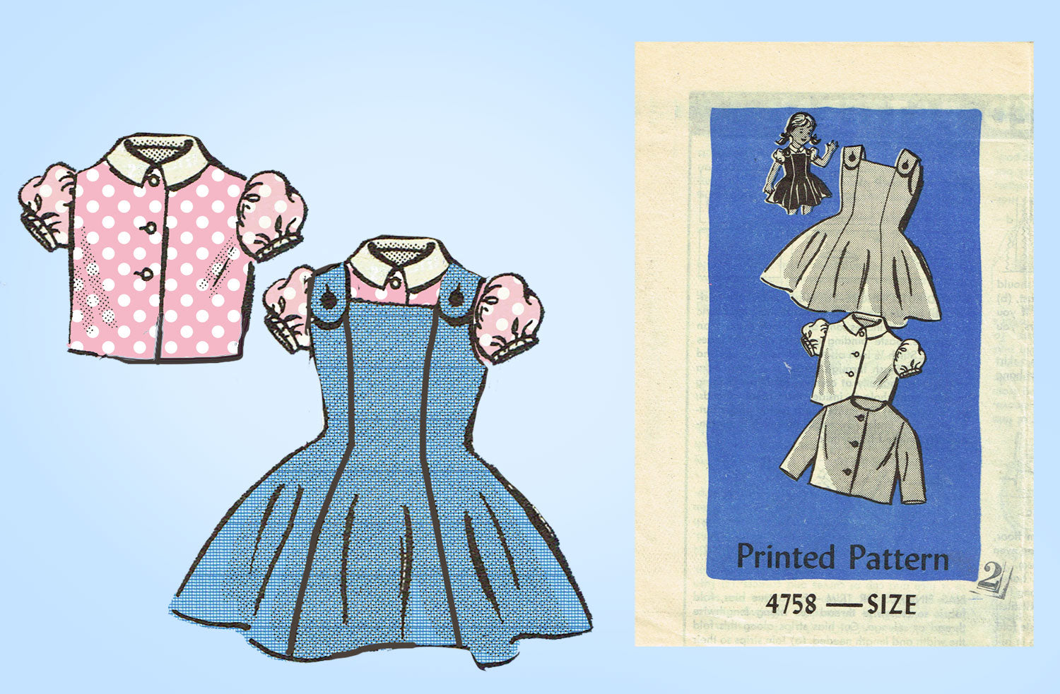 Anne Adams 4758: 1950s Vintage Sewing Pattern Toddler Girls Sz 2 Jumper Dress