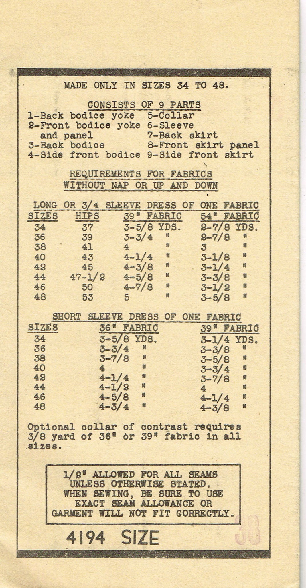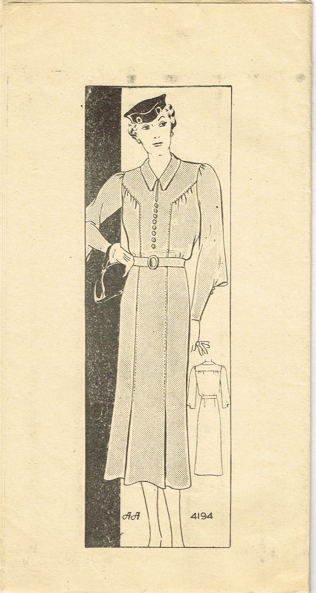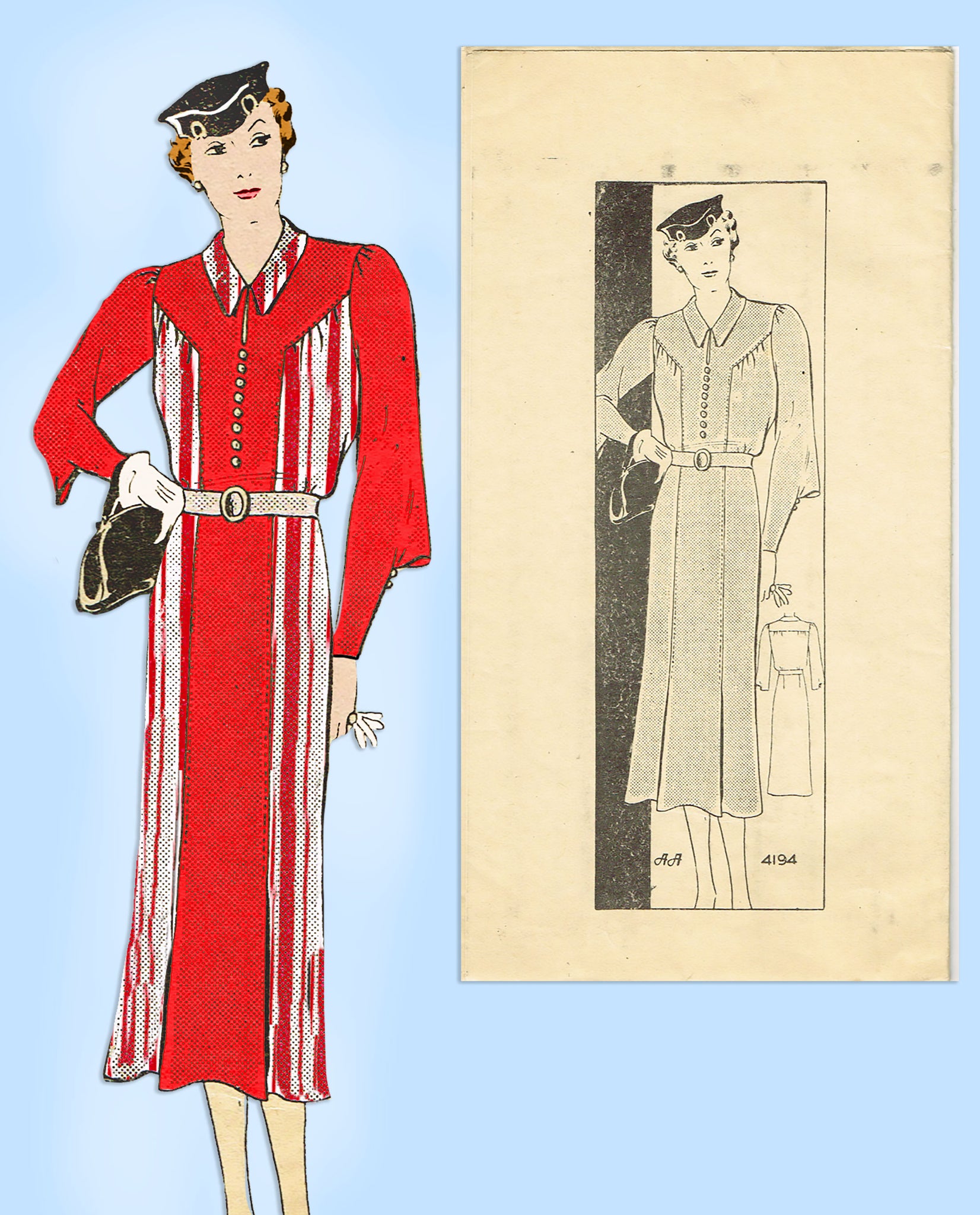 Anne Adams 4194: 1930s Misses Afternoon Dress Sz 38 Bust Vintage Sewing Pattern