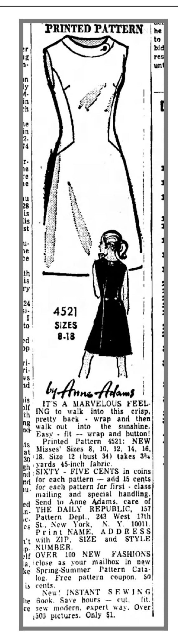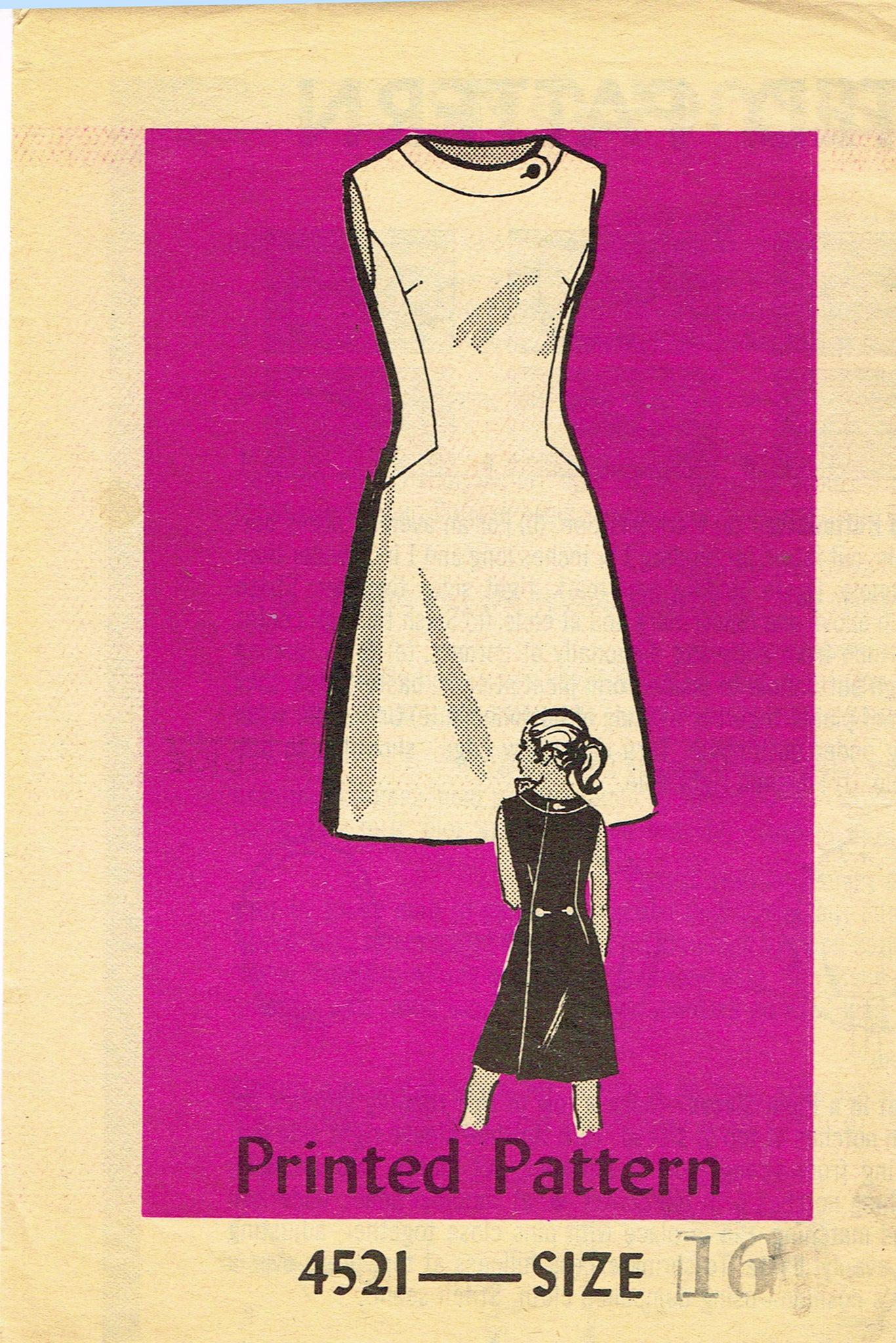 Anne Adams 4521: 1960s Misses Mod Dress Sz 38 Bust Vintage Sewing Pattern