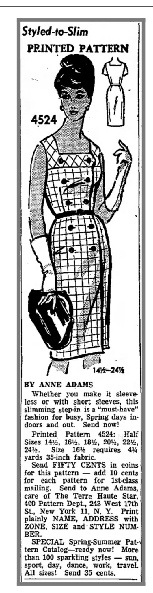 Anne Adams 4524: 1960s Misses Sun Dress Sz 39 Bust Vintage Sewing Pattern