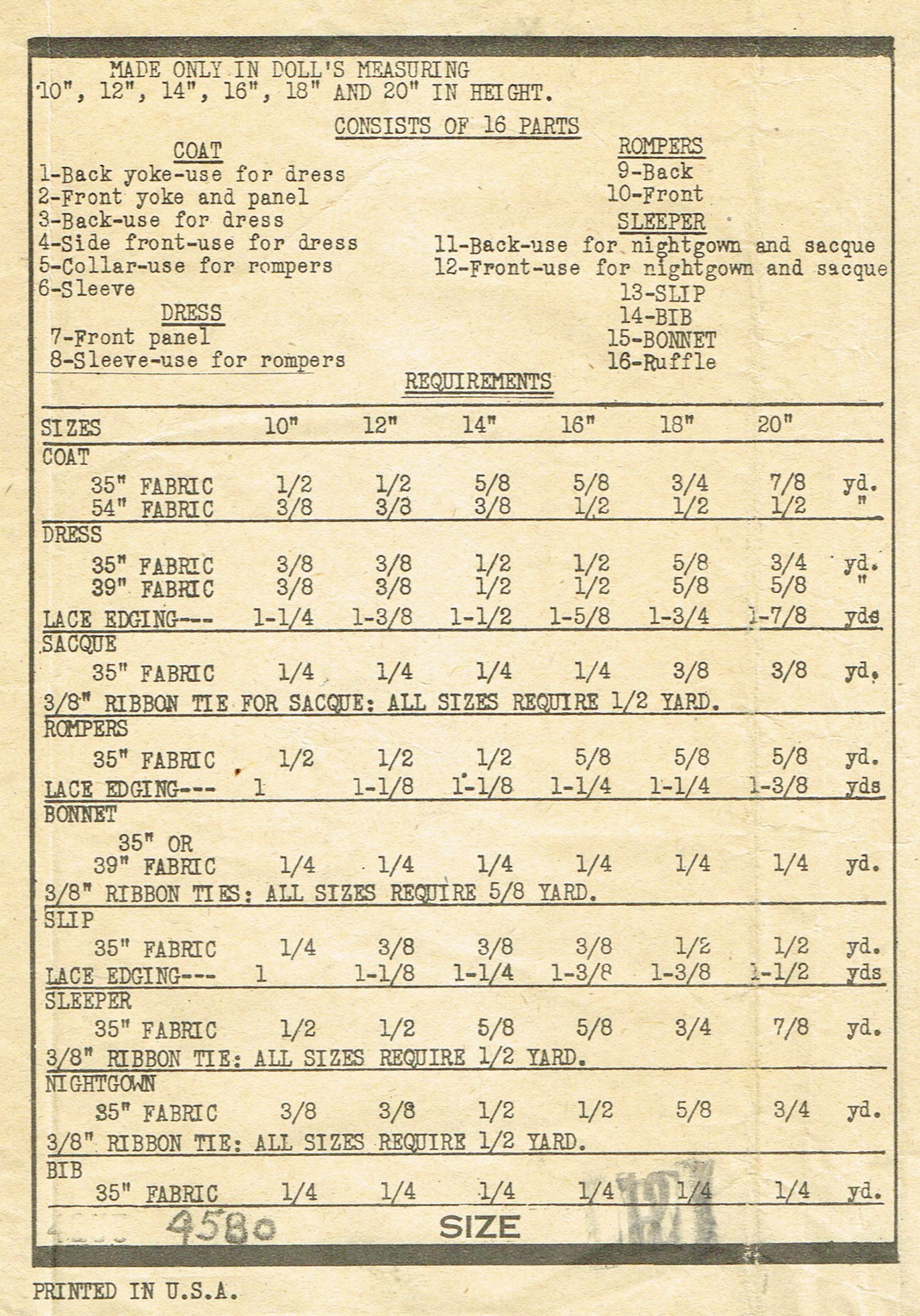 Anne Adams 4580: 1940s Cute 12 Inch Doll Clothes Set Vintage Sewing Pattern