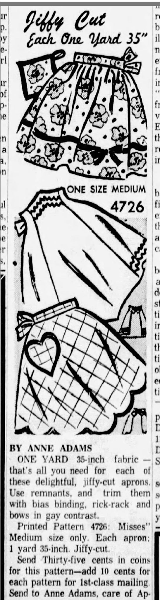 Anne Adams 4726: 1960s Misses Cockail Apron Set Sz MED Vintage Sewing Pattern