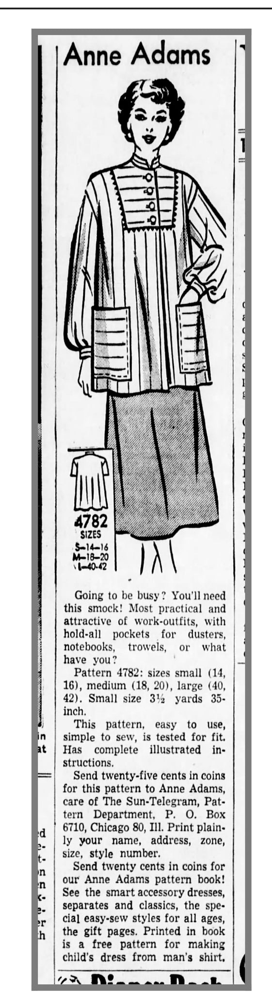 Anne Adams 4782: 1950s Misses Smock Sz 32 34 Bust Vintage Sewing Pattern