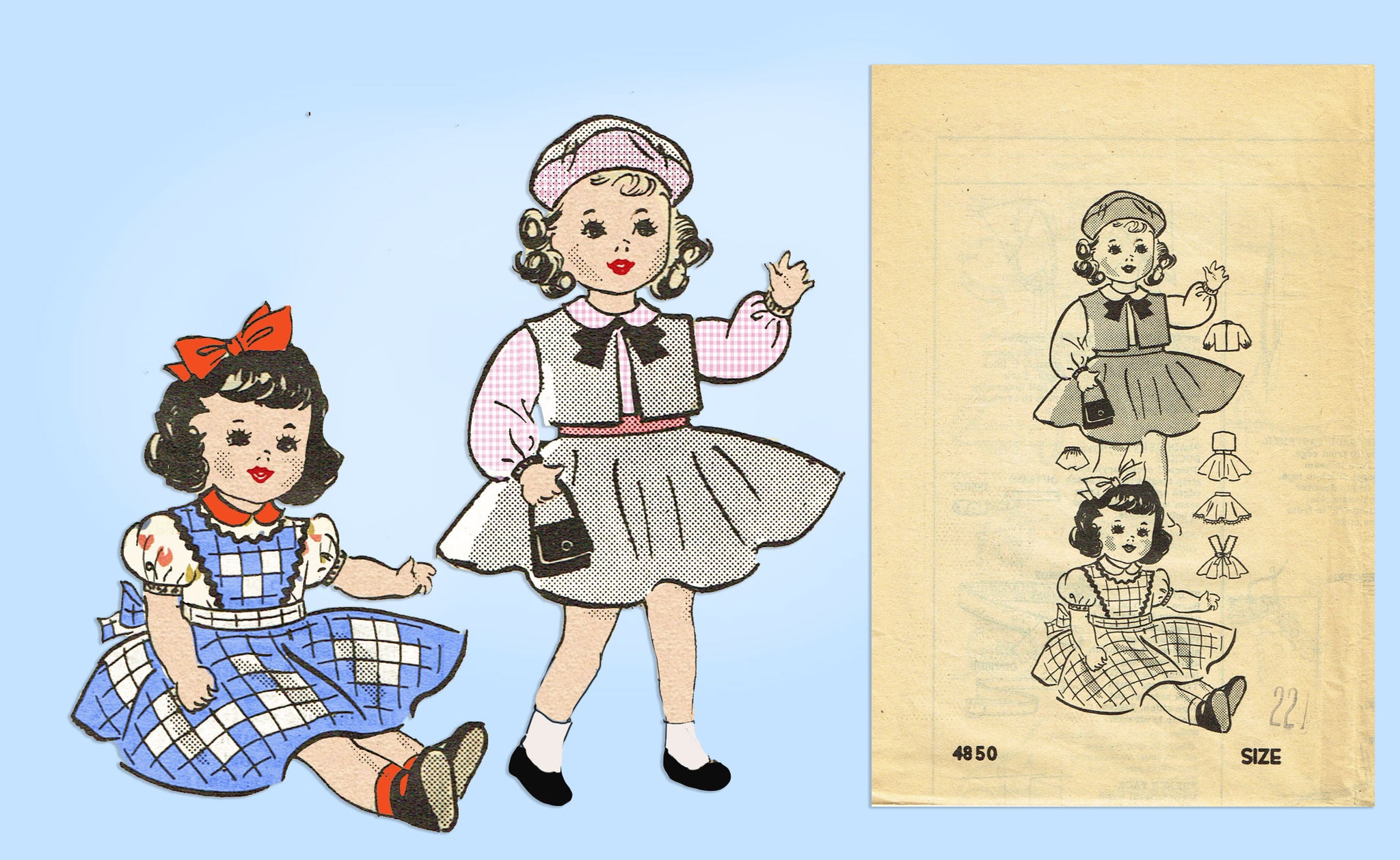 Anne Adams 4850: 1950s Cute 22 Inch Doll Clothes Set Vintage Sewing Pattern