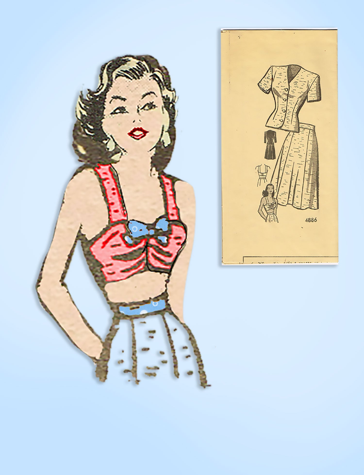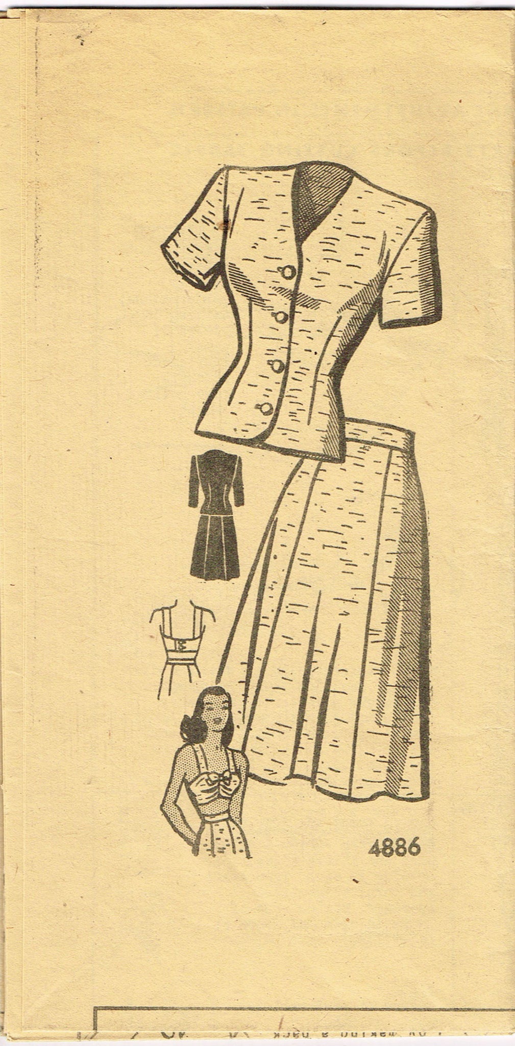 Anne Adams 4886: 1950s Misses Suit w Bra Top Sz 38 Bust Vintage Sewing Pattern