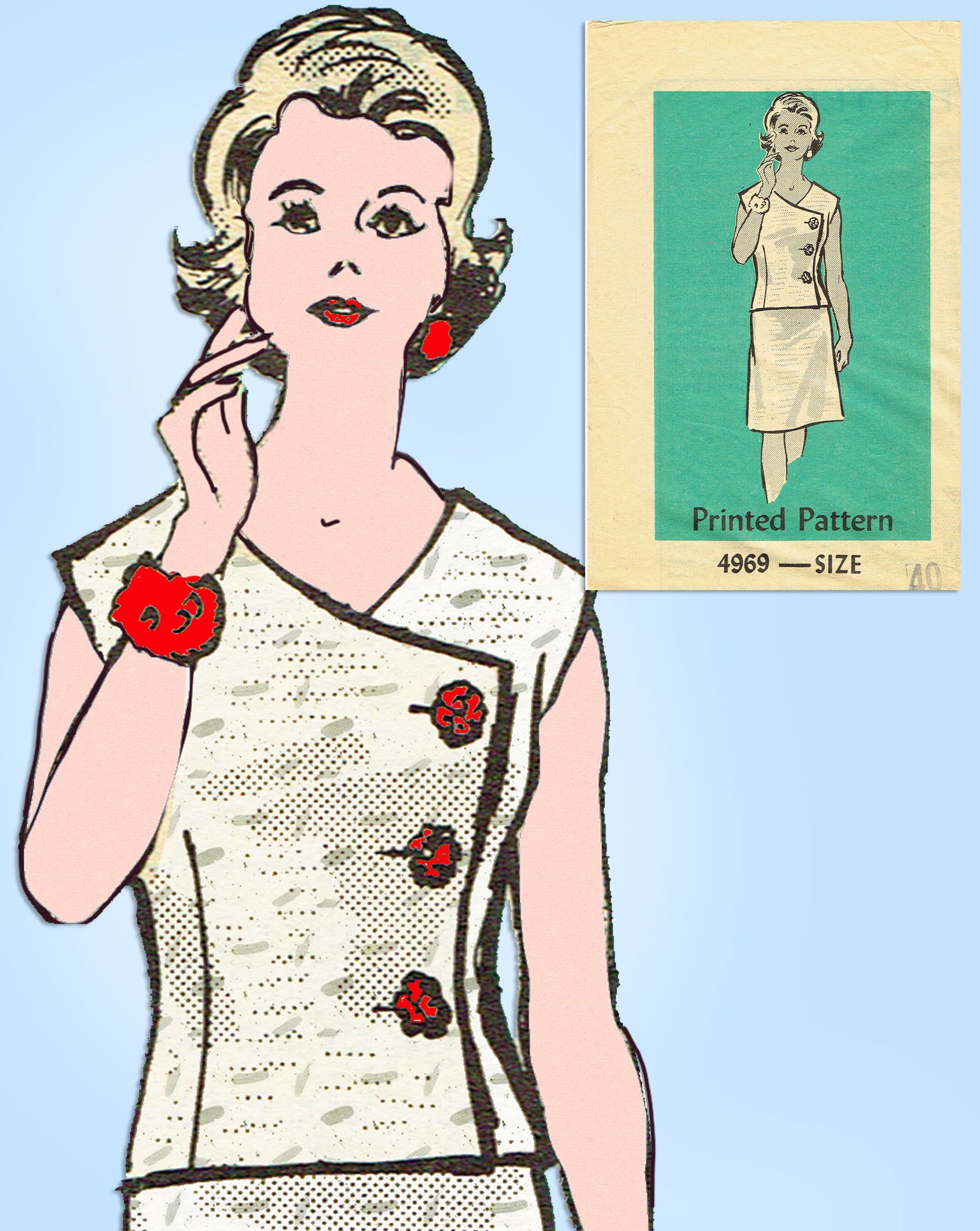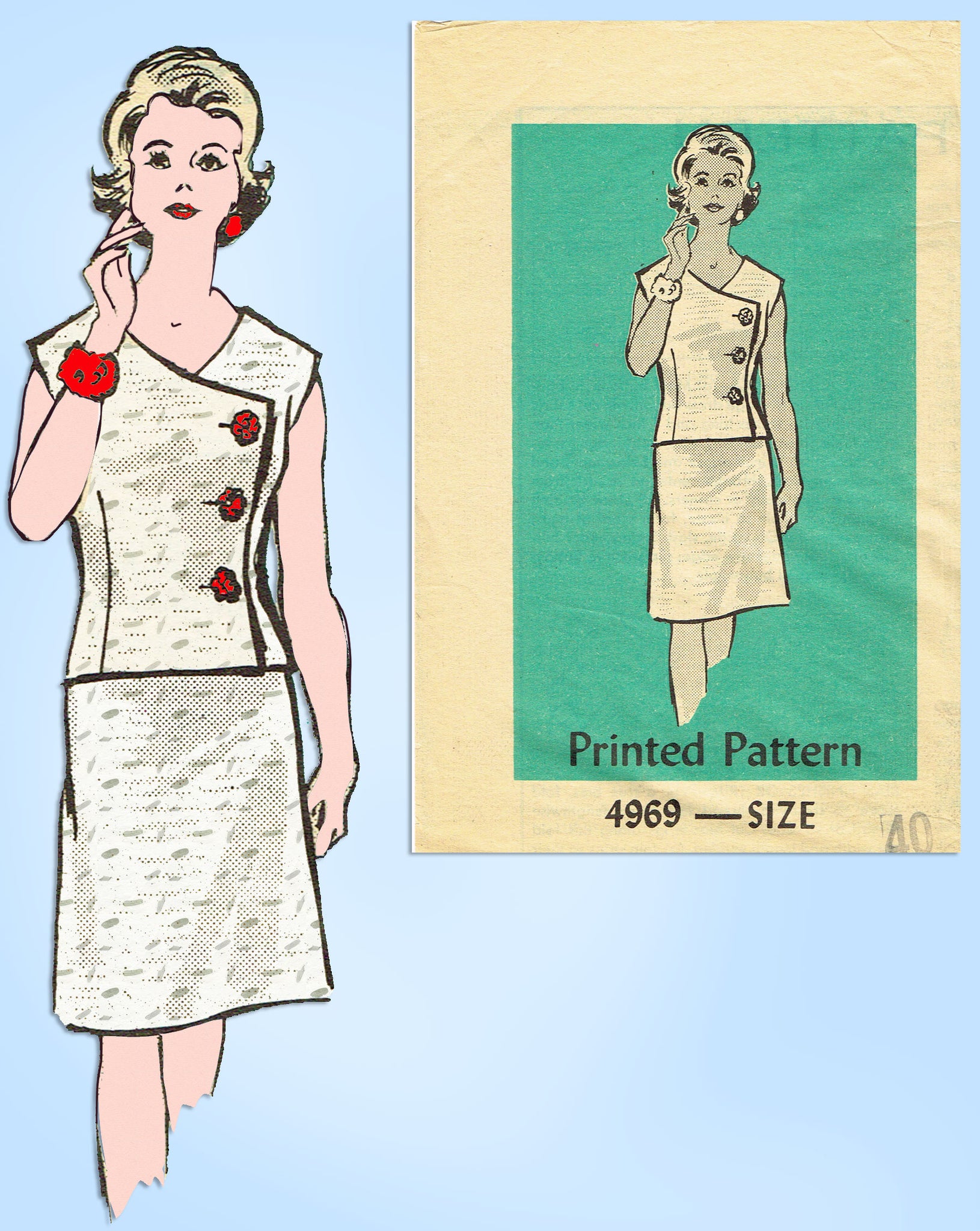Anne Adams 4969: 1960s Plus Size 2 Piece Dress 42 Bust Vintage Sewing Pattern