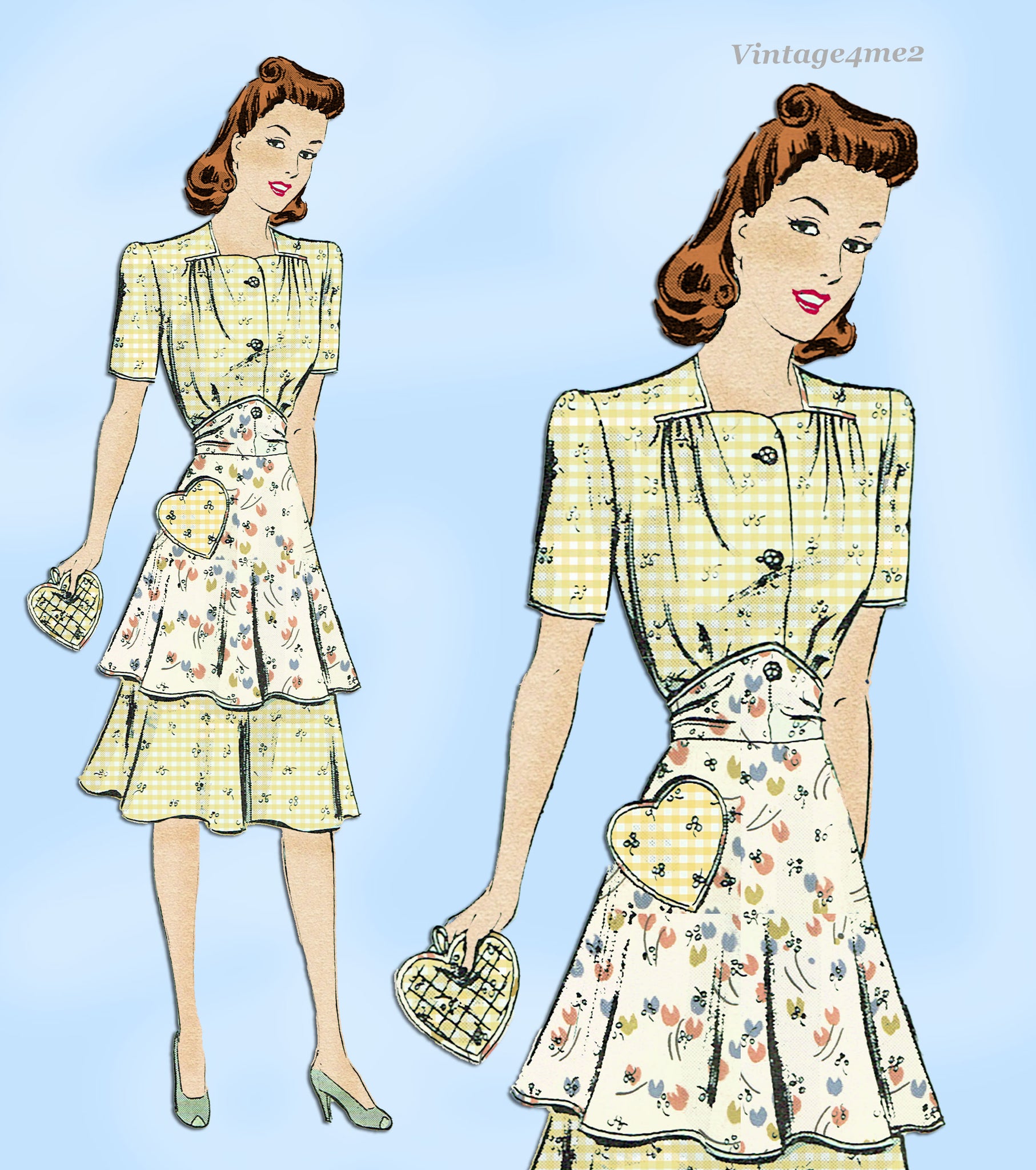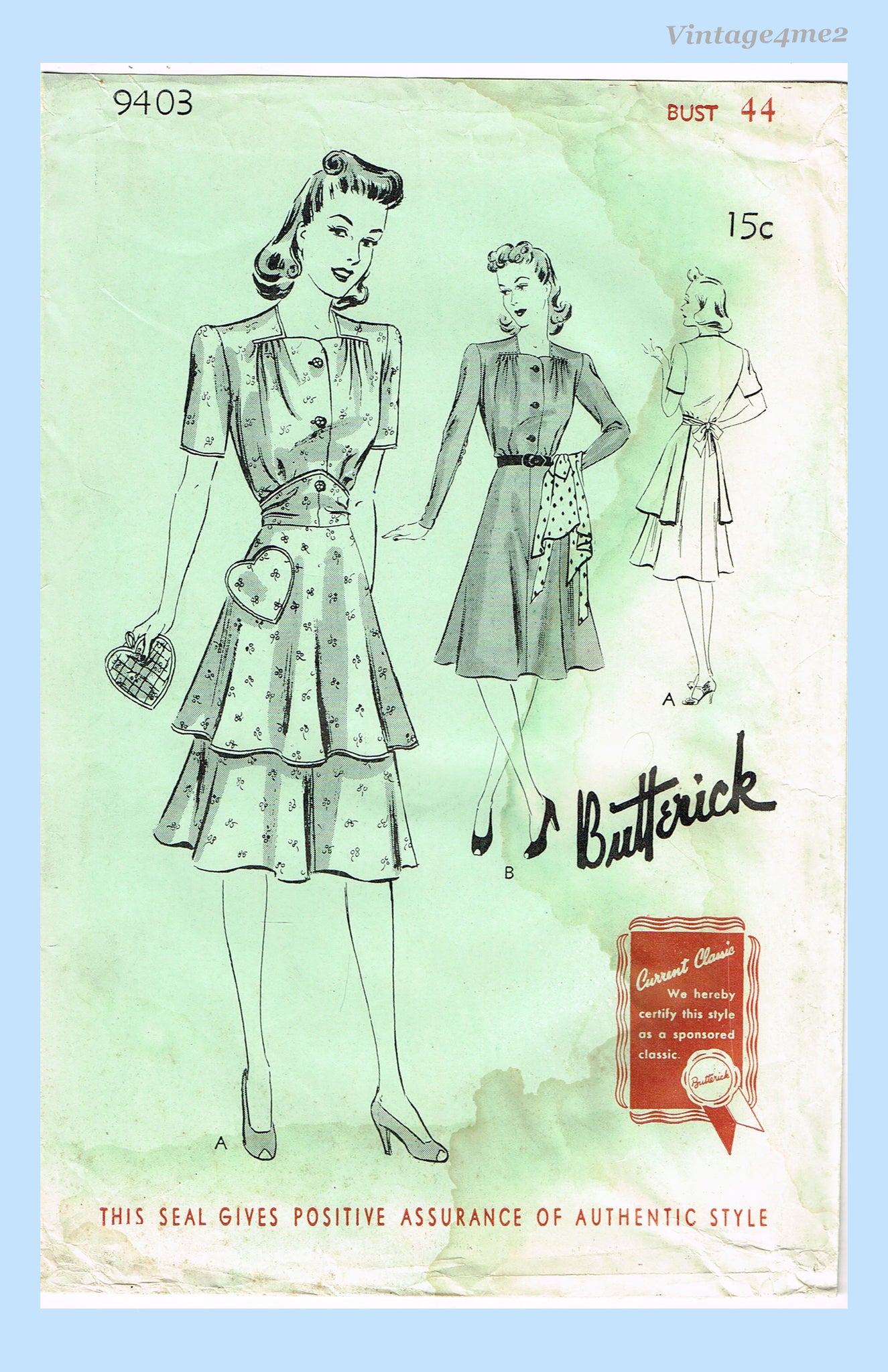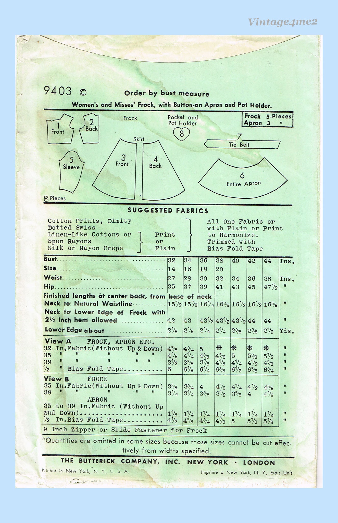 Butterick 9403: 1940s day Dress and Apron Vintage Sewing Pattern Plus UNCUT 44 B