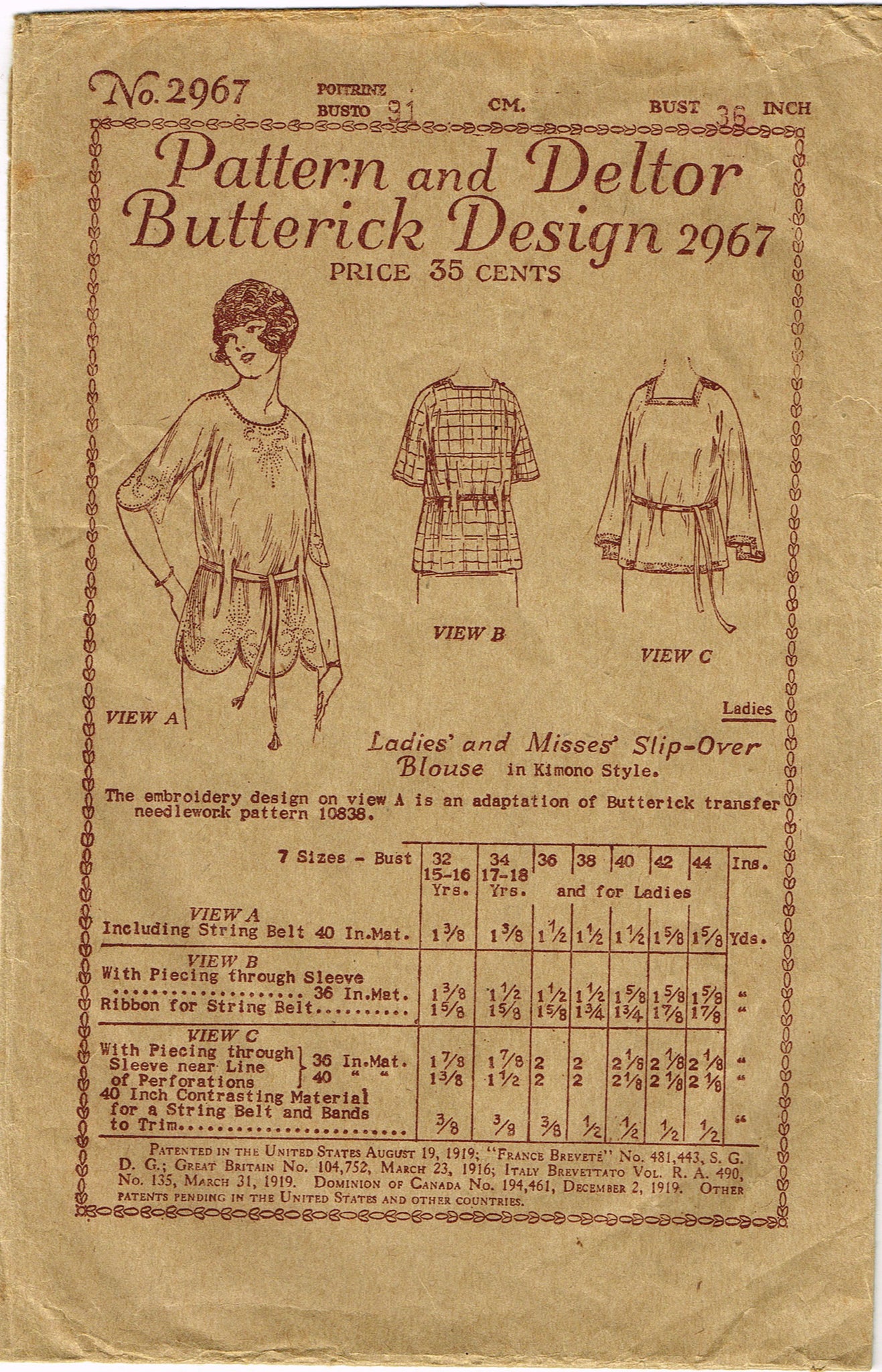 Butterick 2967: 1920s Misses Easy 1 Piece Blouse Sz 36 B Vintage Sewing Pattern