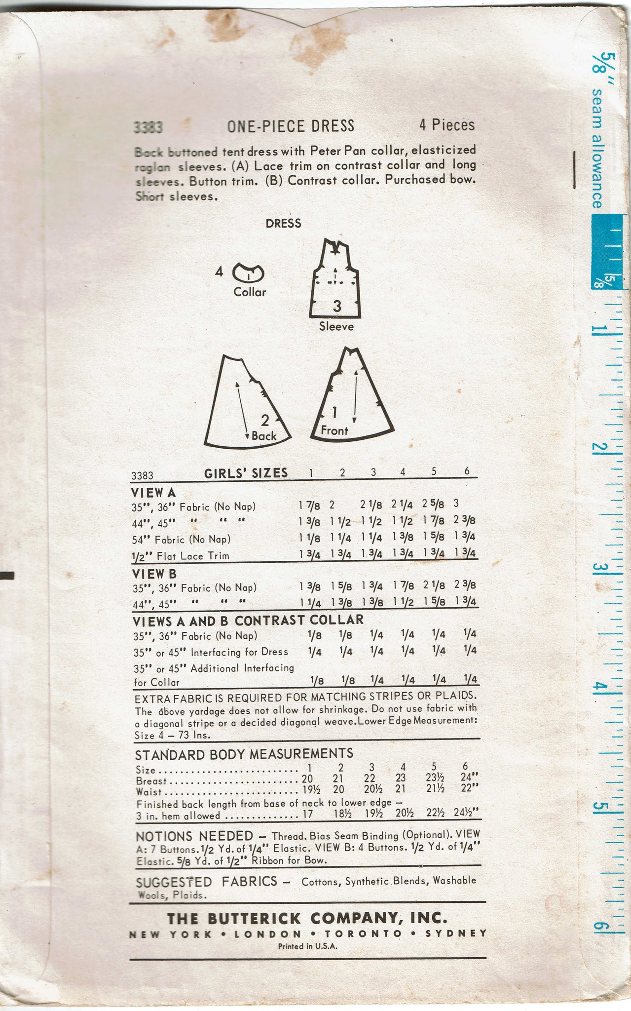 Butterick 3383: 1960s Cute Uncut Toddler Girls Dress Sz 1 Vintage Sewing Pattern