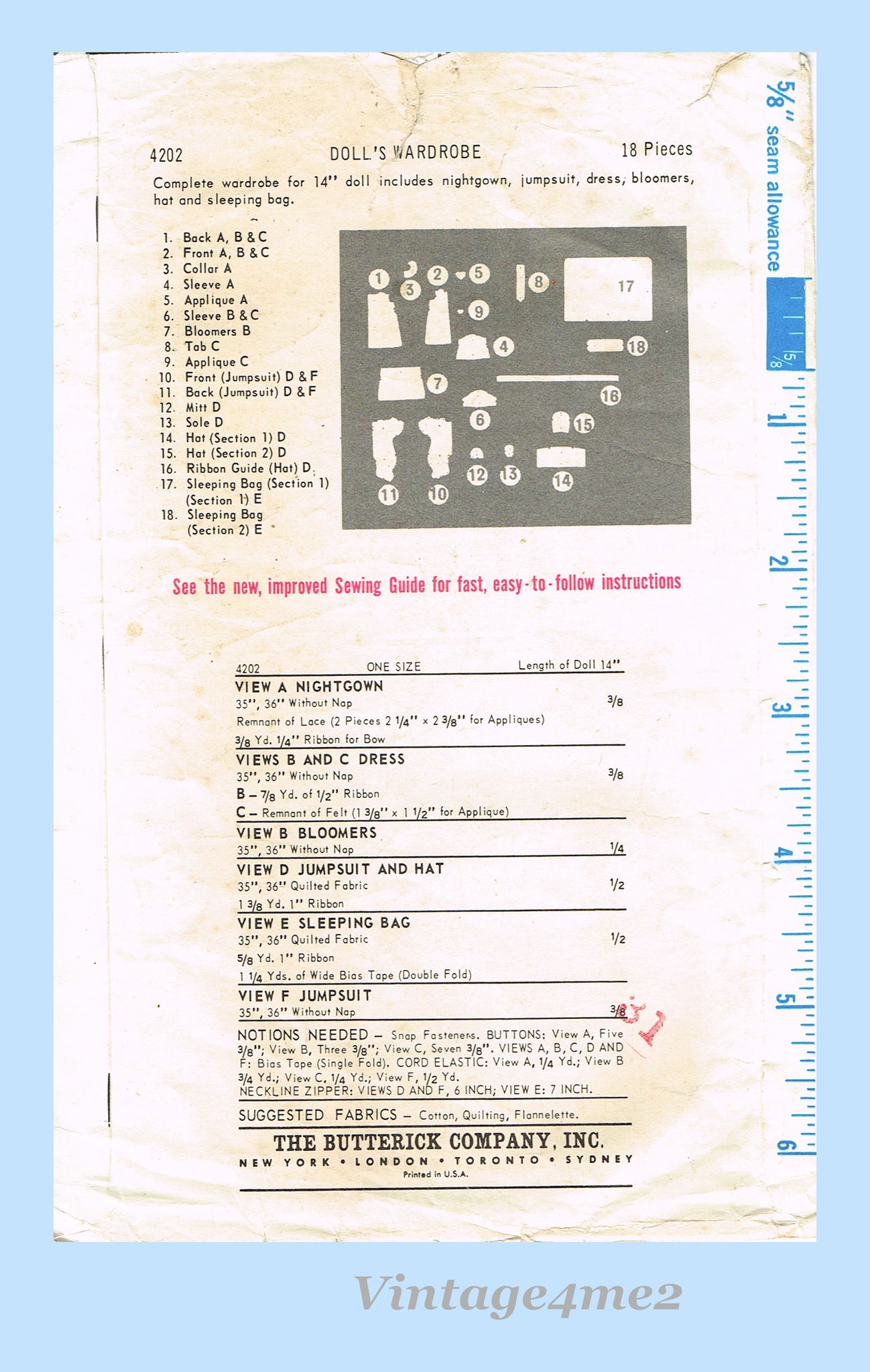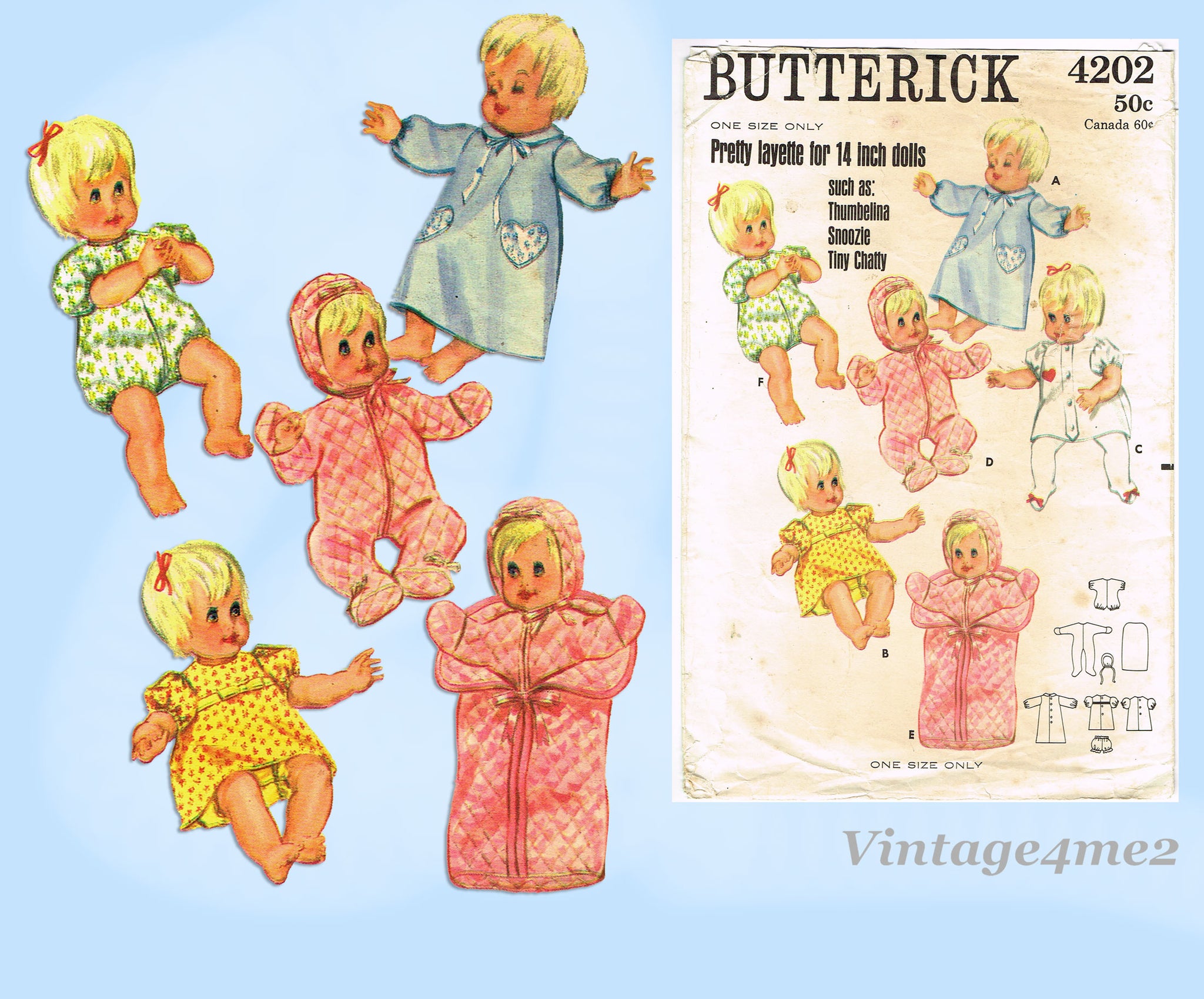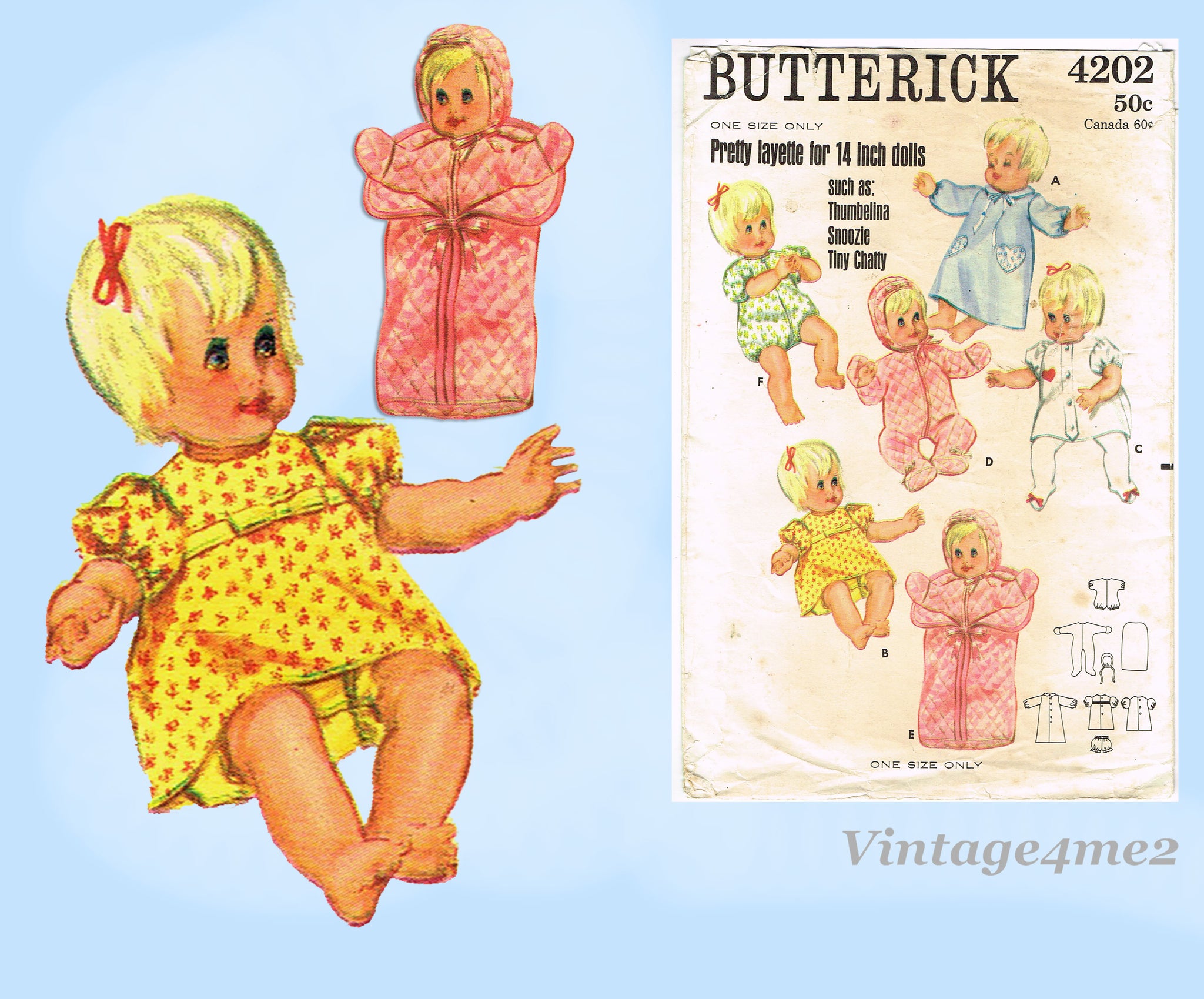 Butterick 4202: 1960s Cute 14 Inch Baby Doll Clothes Set Vintage Sewing Pattern