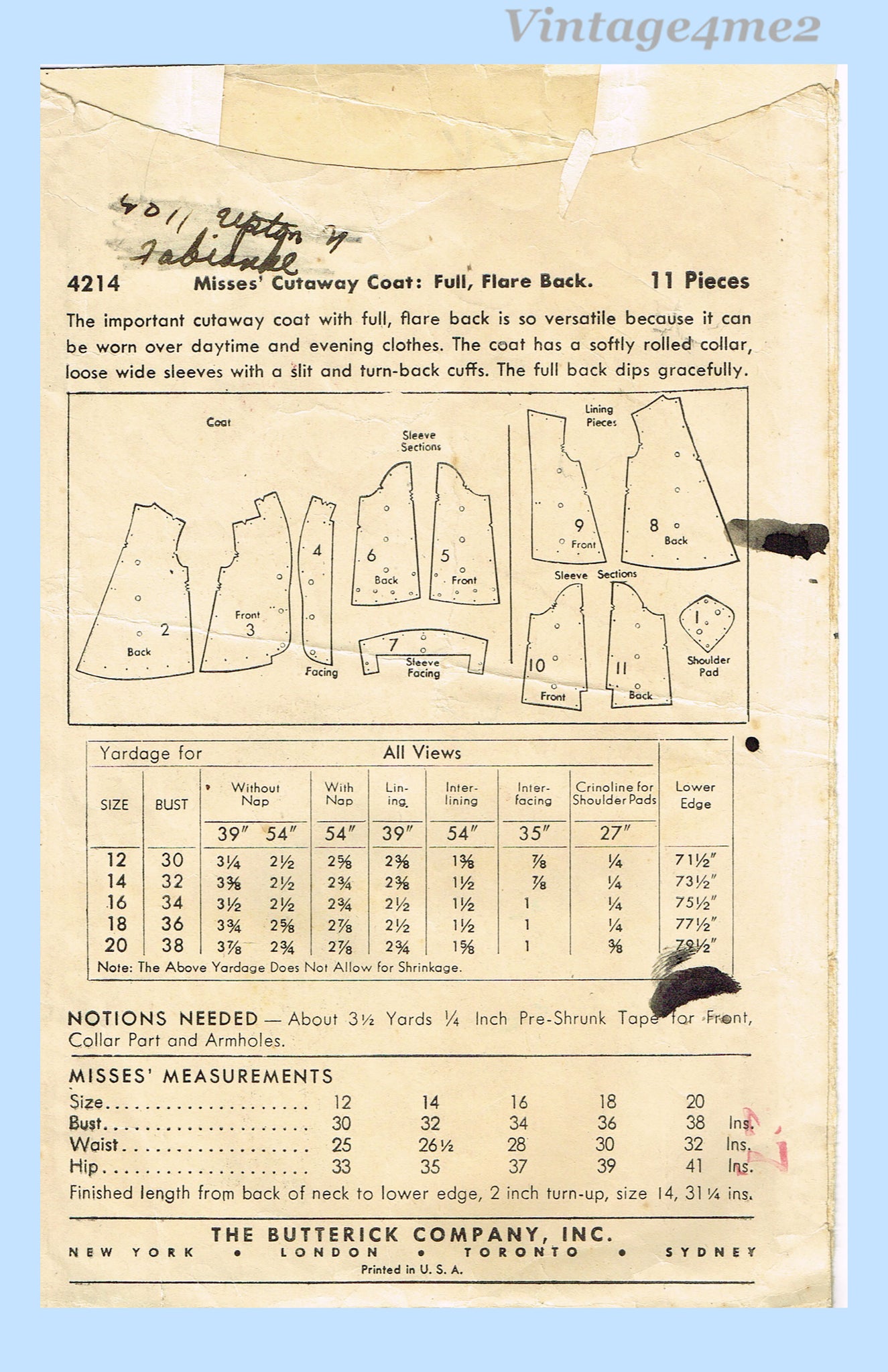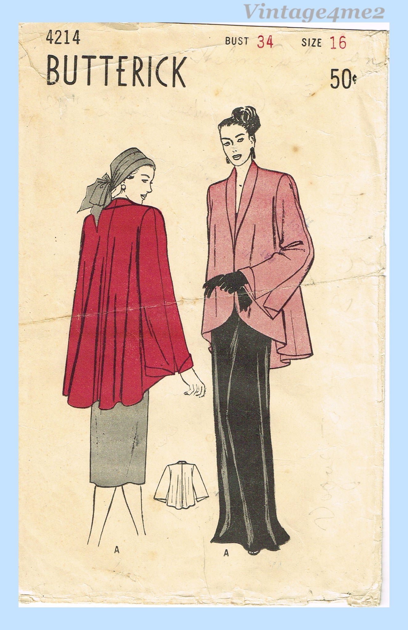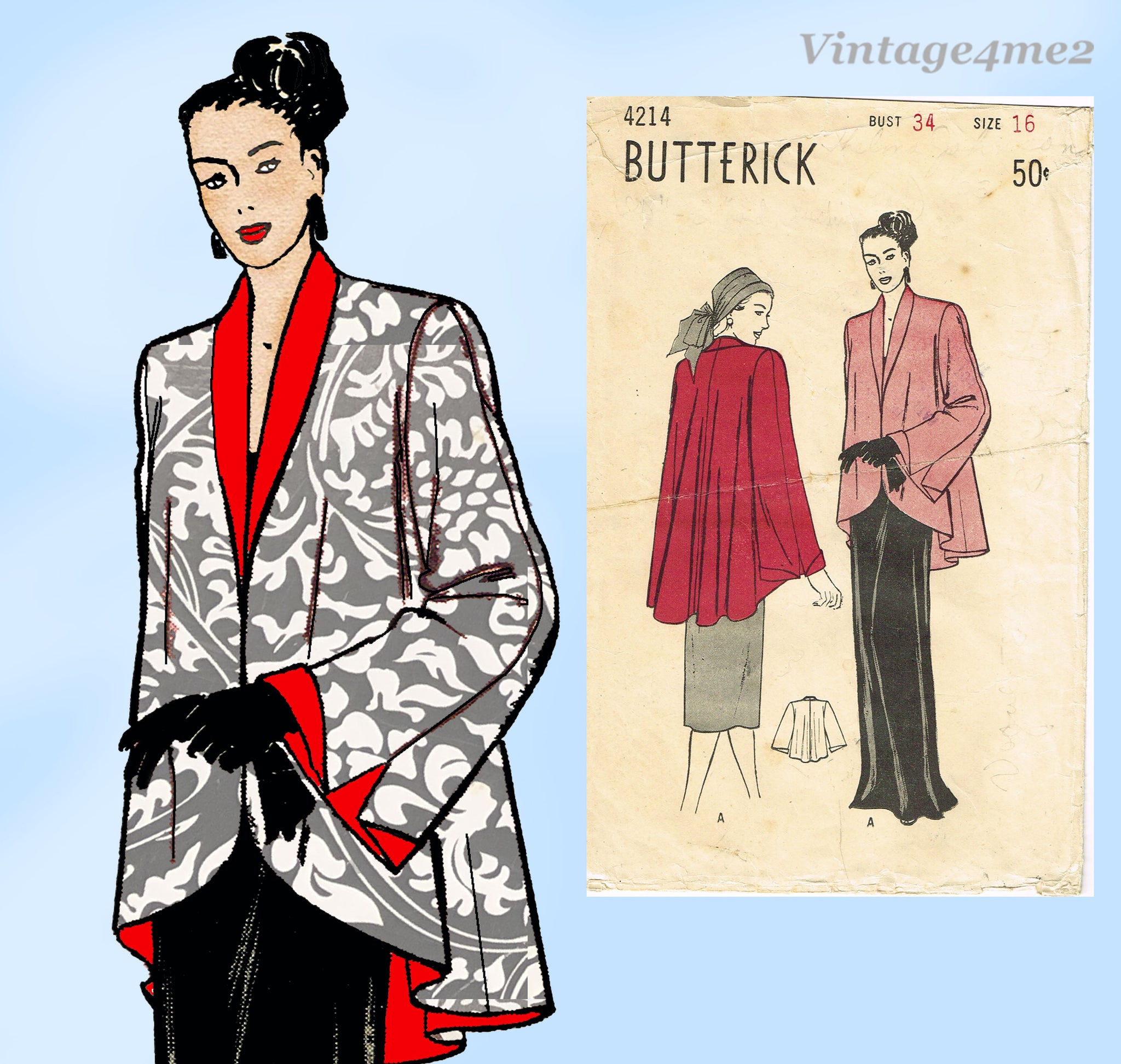 Butterick 4214: 1940s Chic Misses Cutaway Evening Coat 34B Vintage Sewing Pattern