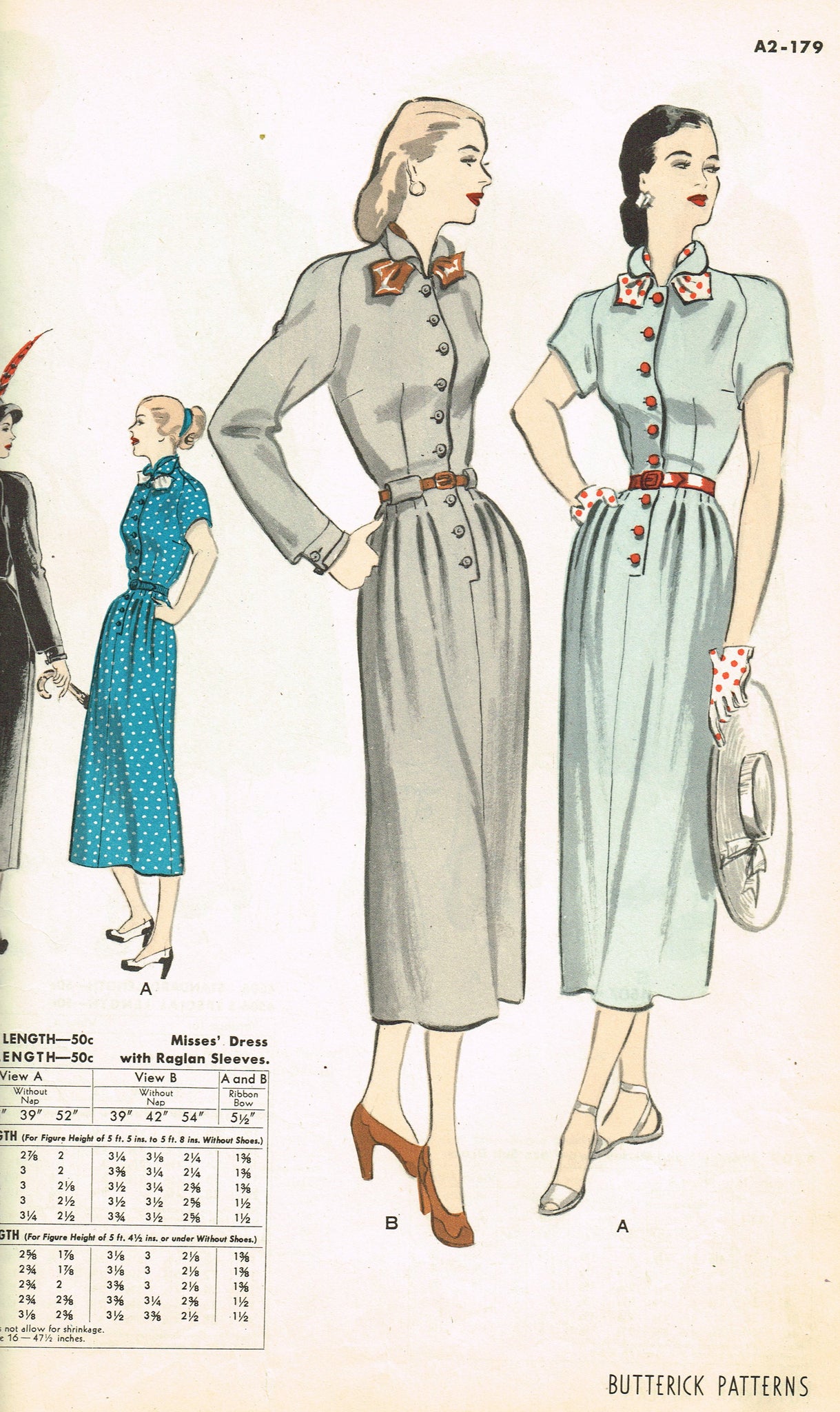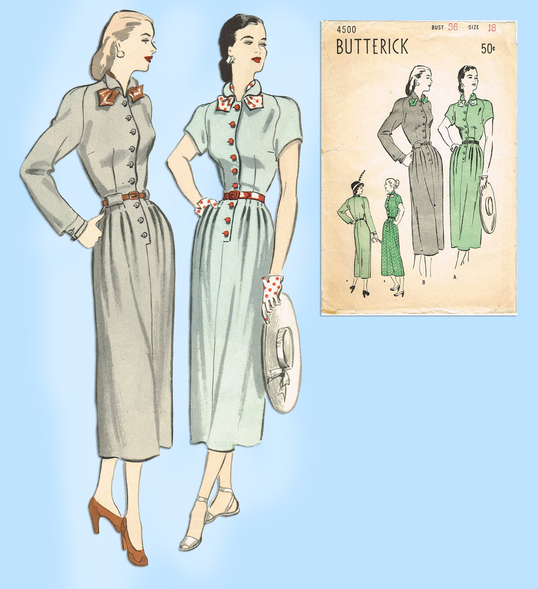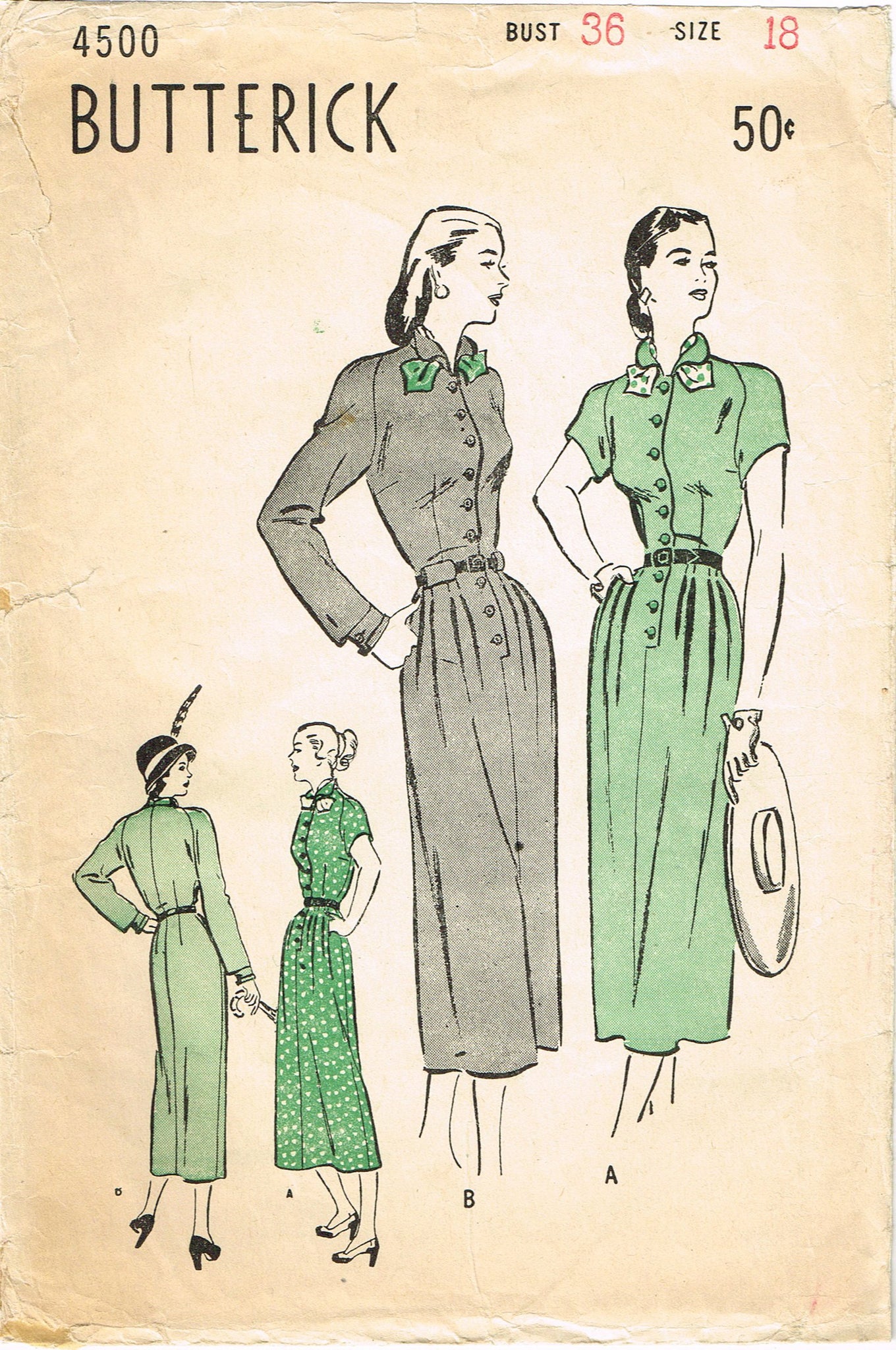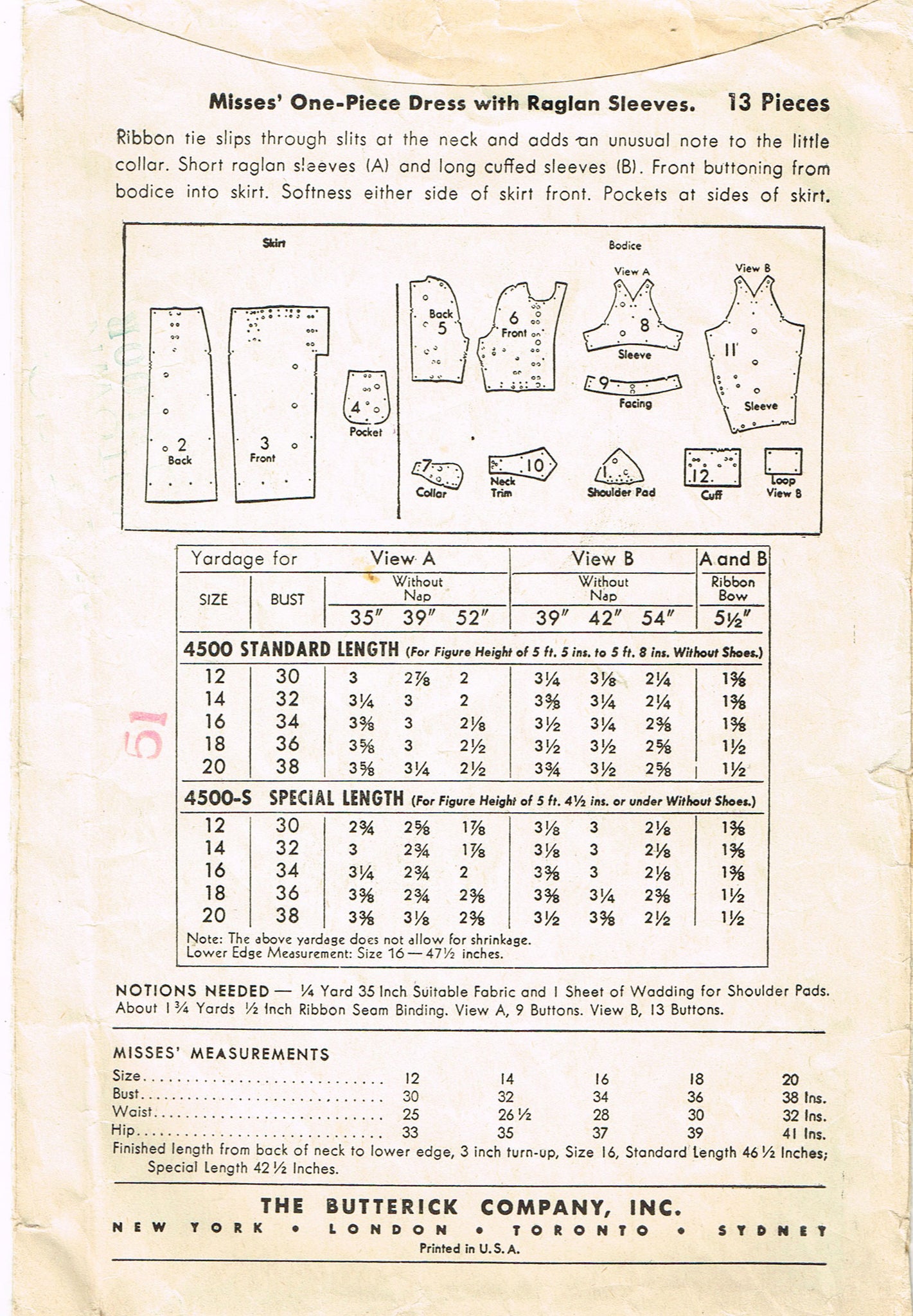 Butterick 4500: 1940s Misses Dress Raglan Sleeves 36B Vintage Sewing Pattern