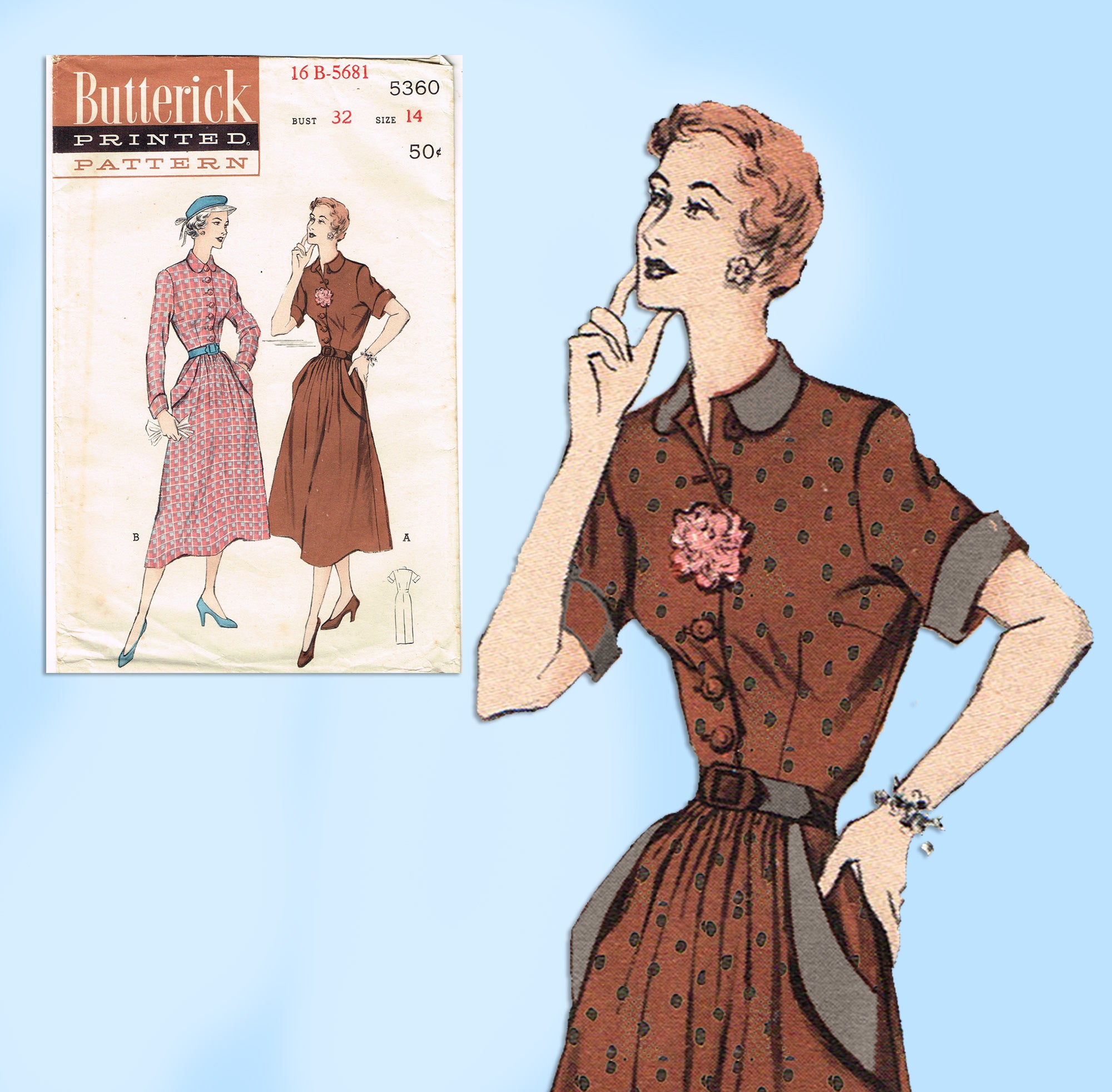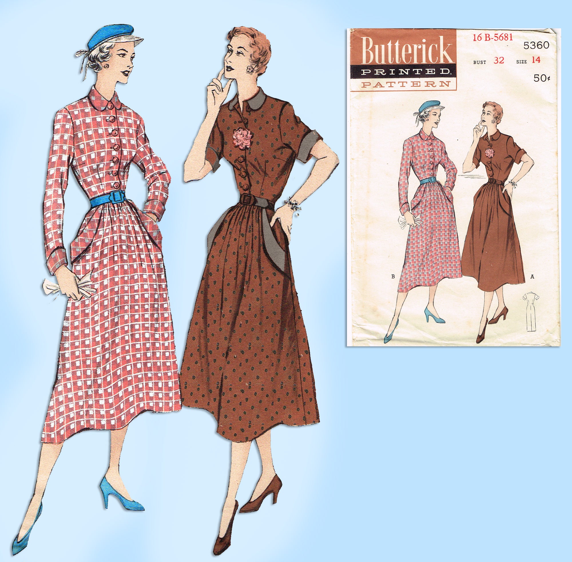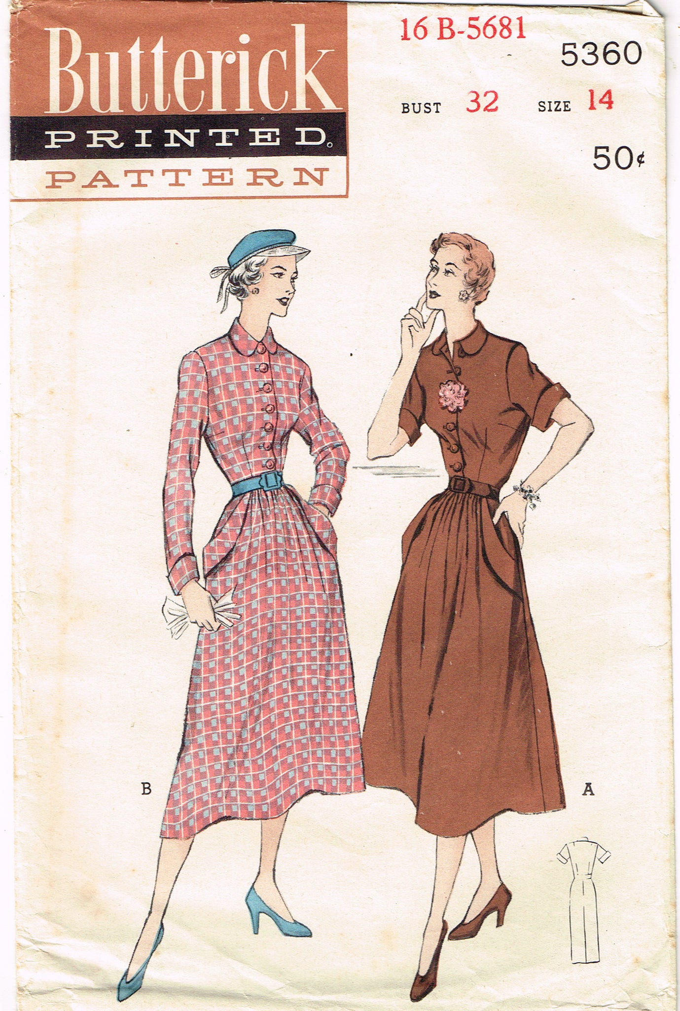 Butterick 5360: 1950s Uncut Misses Dress w Pockets Sz 32B Vintage Sewing Pattern