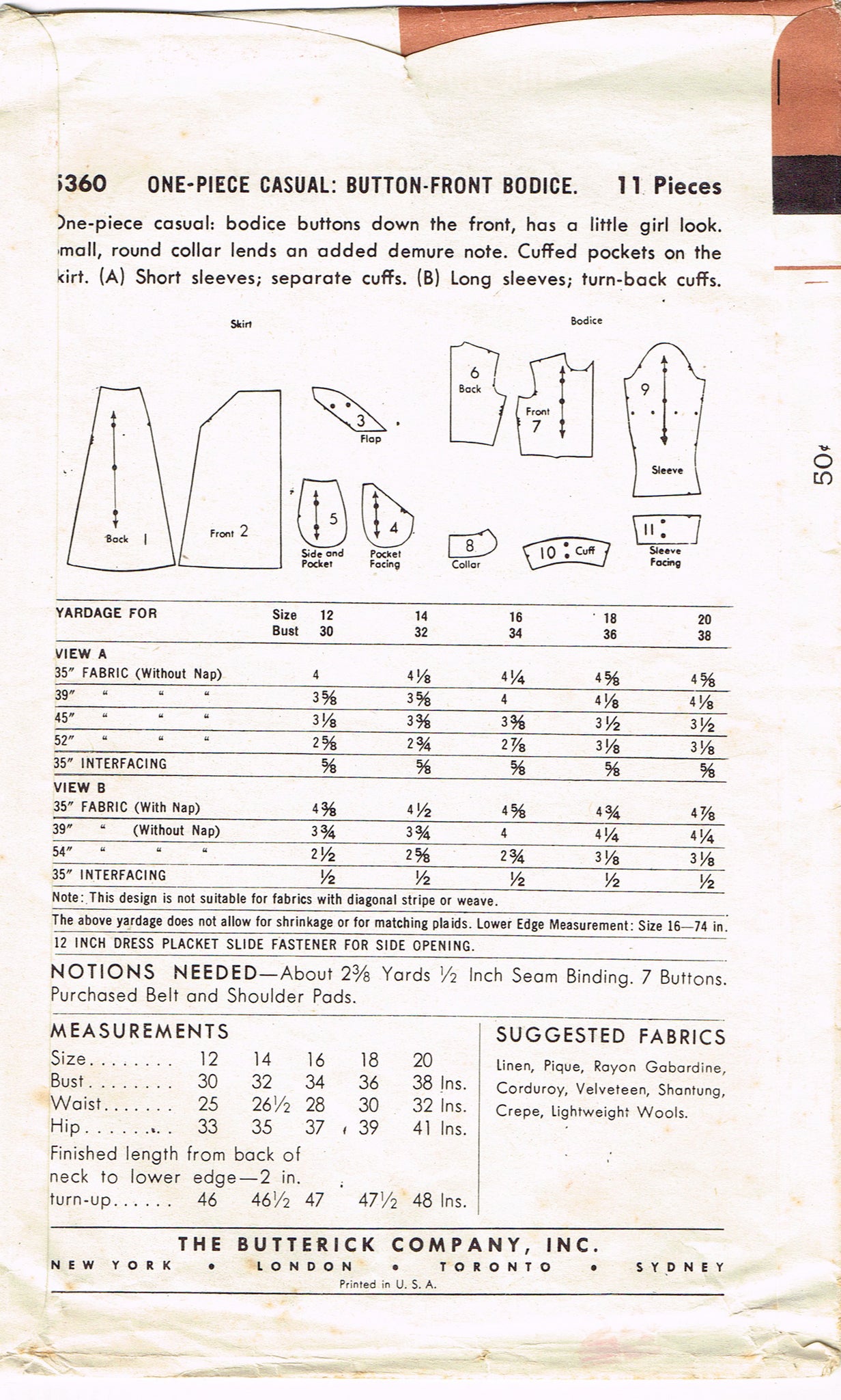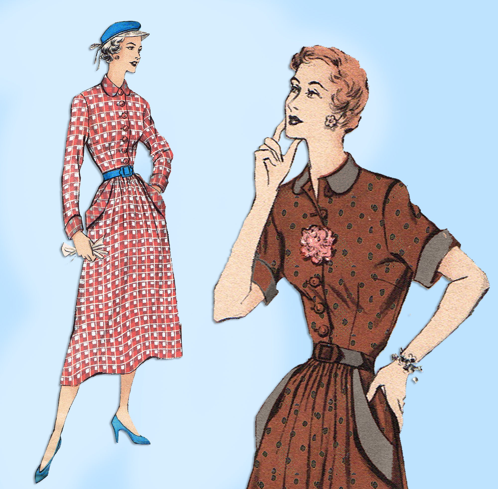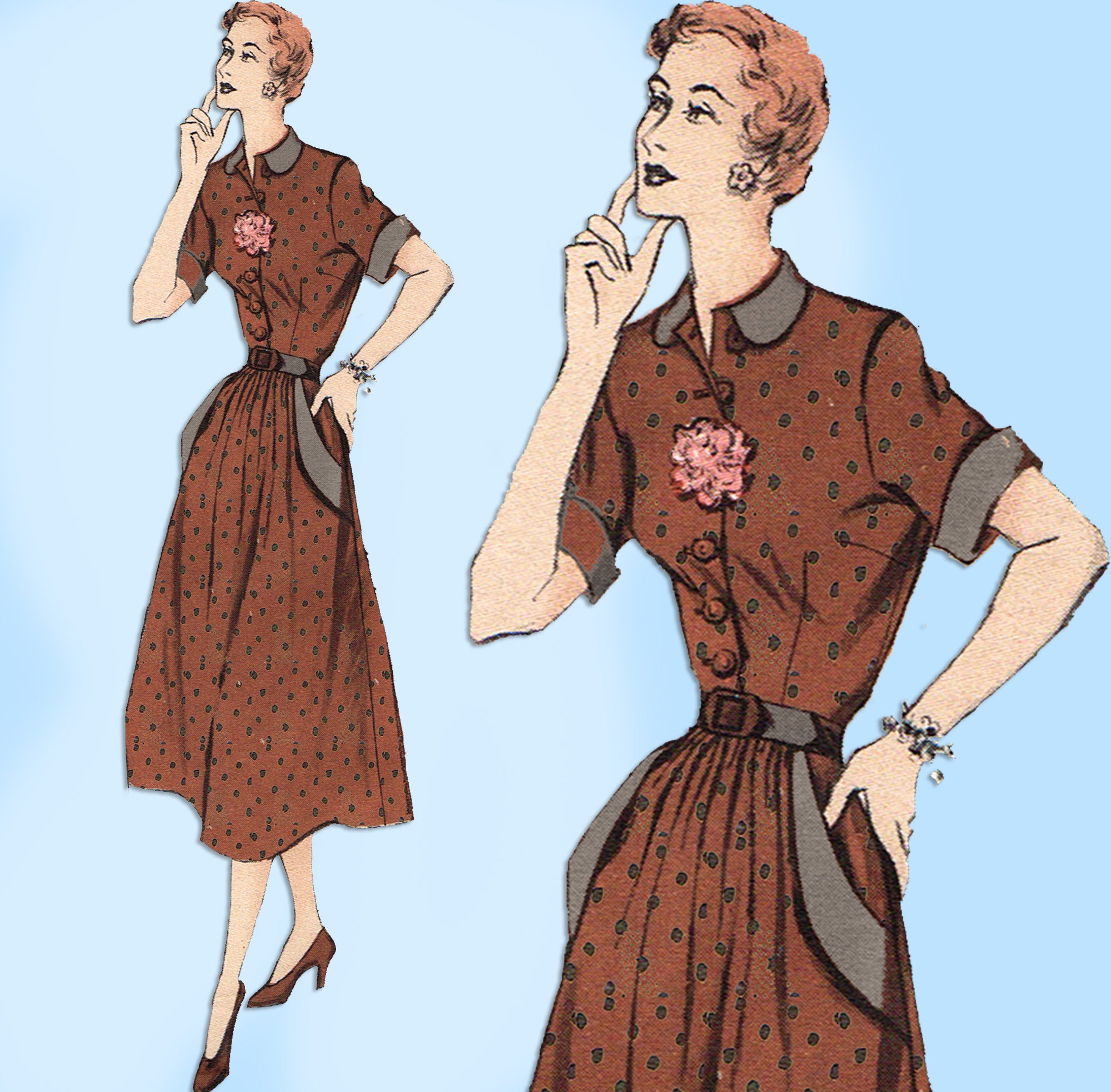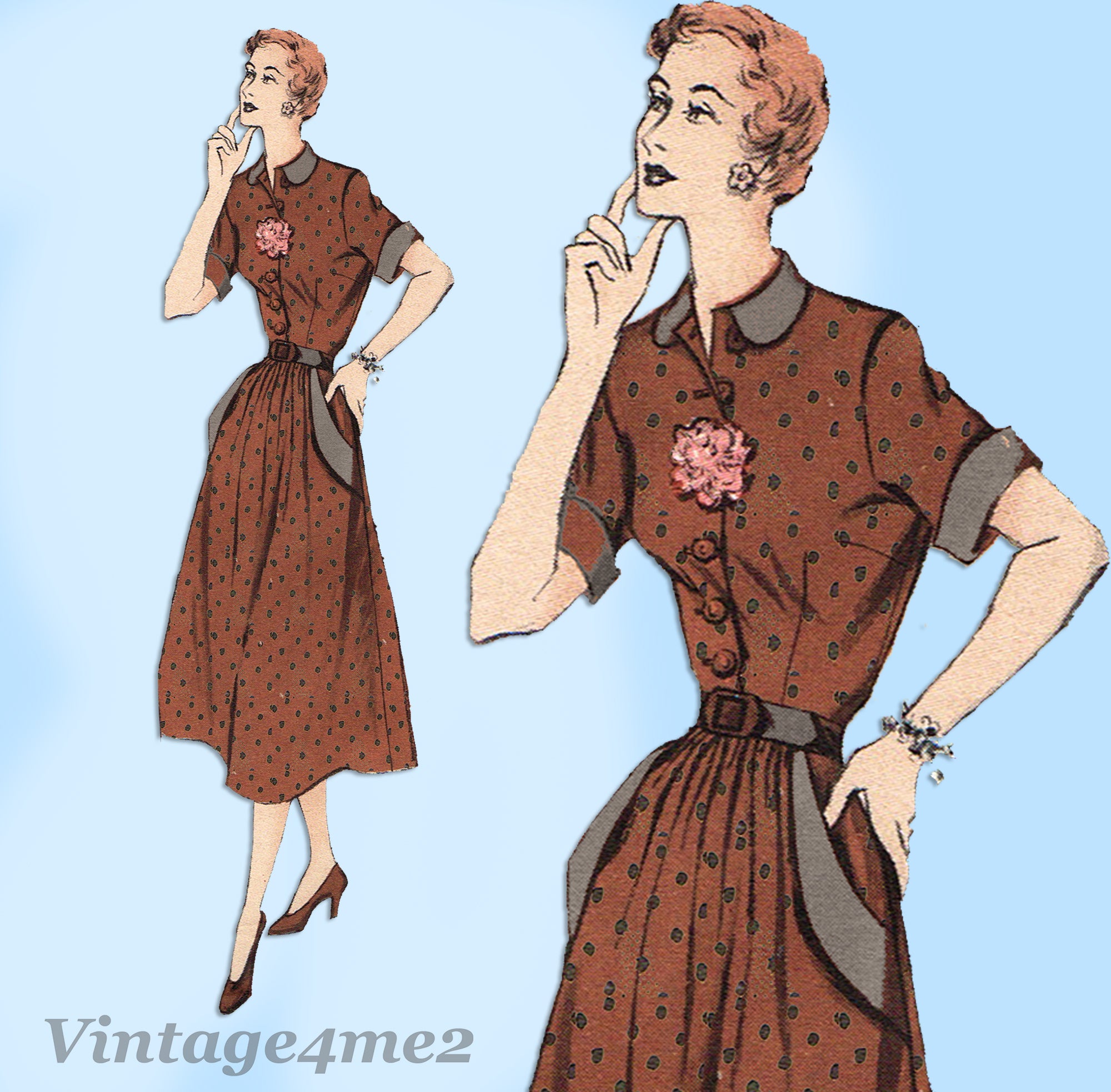 Butterick 5360: 1950s Uncut Misses Dress w Pockets Sz 32B Vintage Sewing Pattern