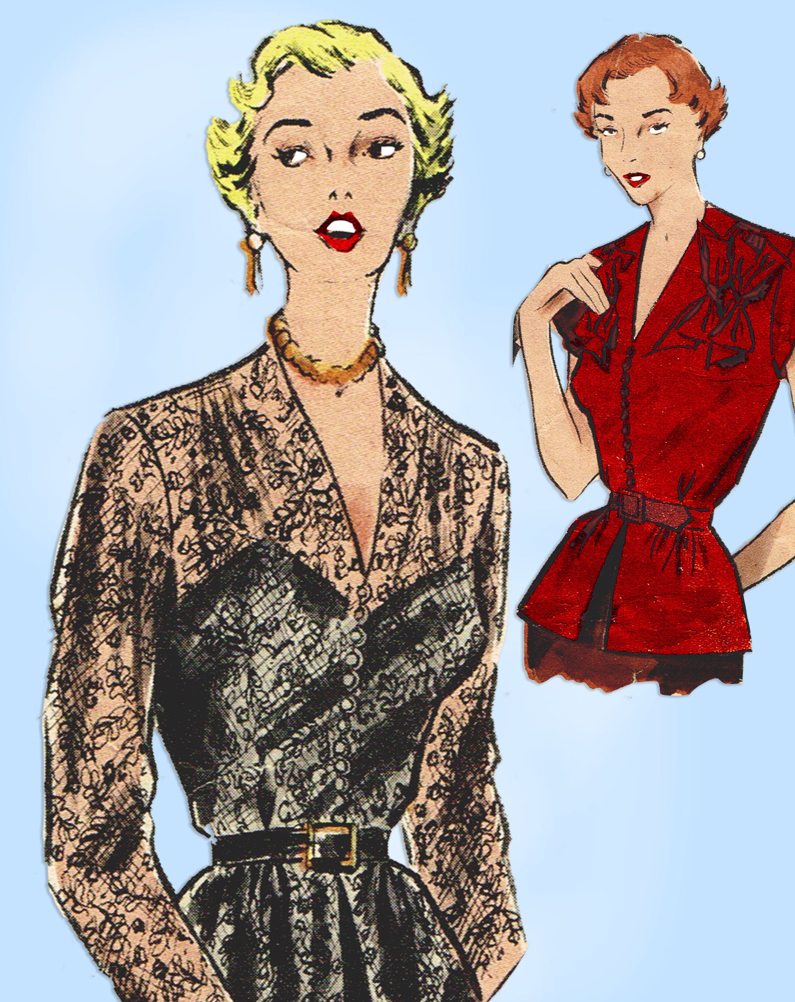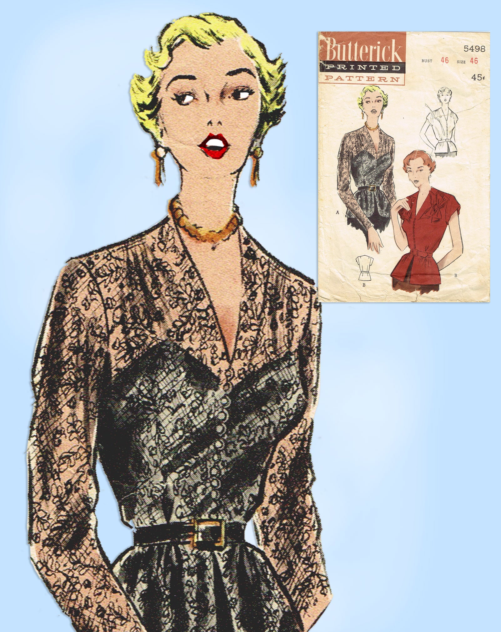 Butterick 5498: 1950s Plus Size Evening Blouse Sz 46 B Vintage Sewing Pattern