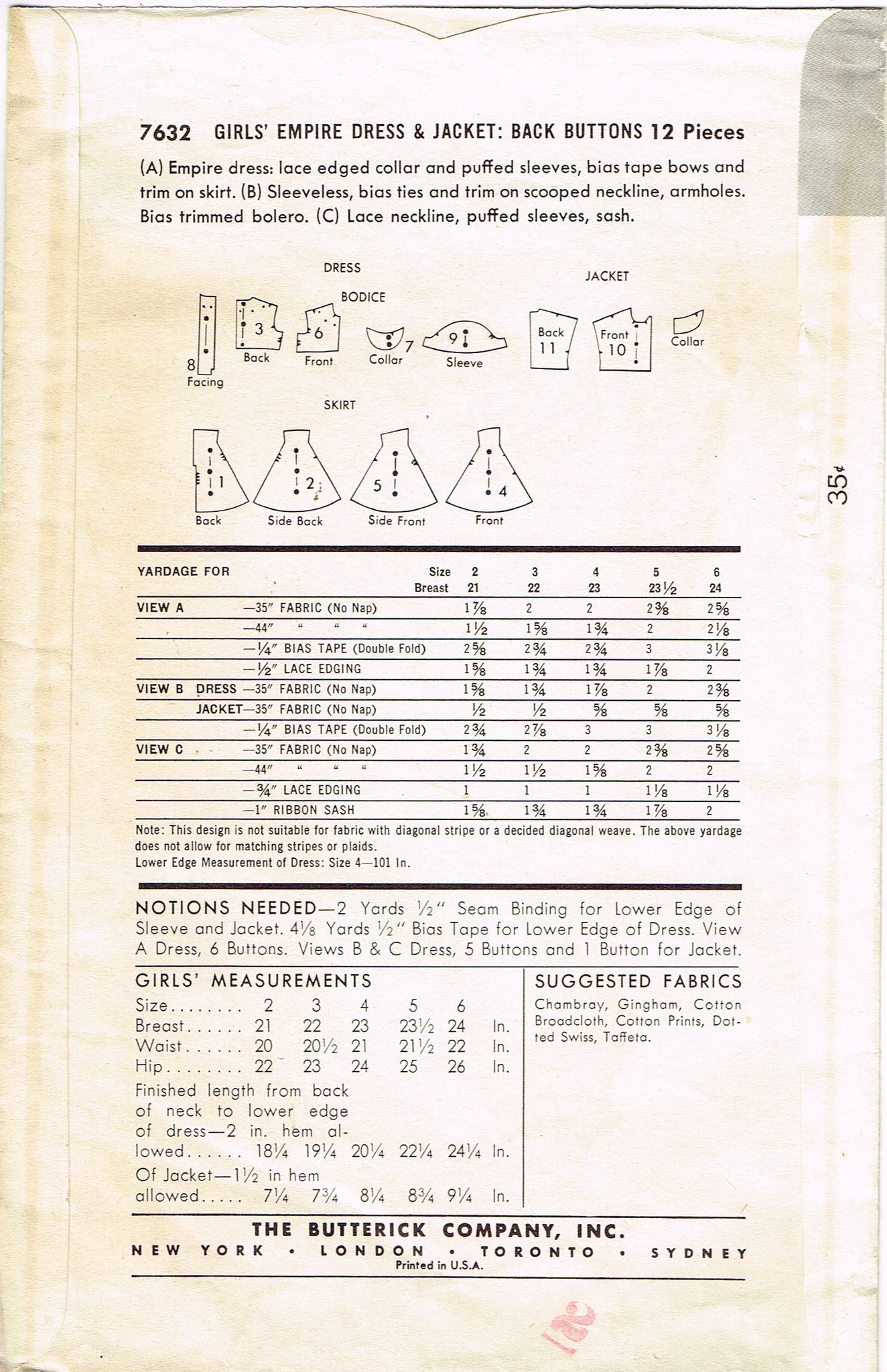 Butterick 7632: 1950s Cute Toddler Girls Sun Dress Sz2 Vintage Sewing Pattern