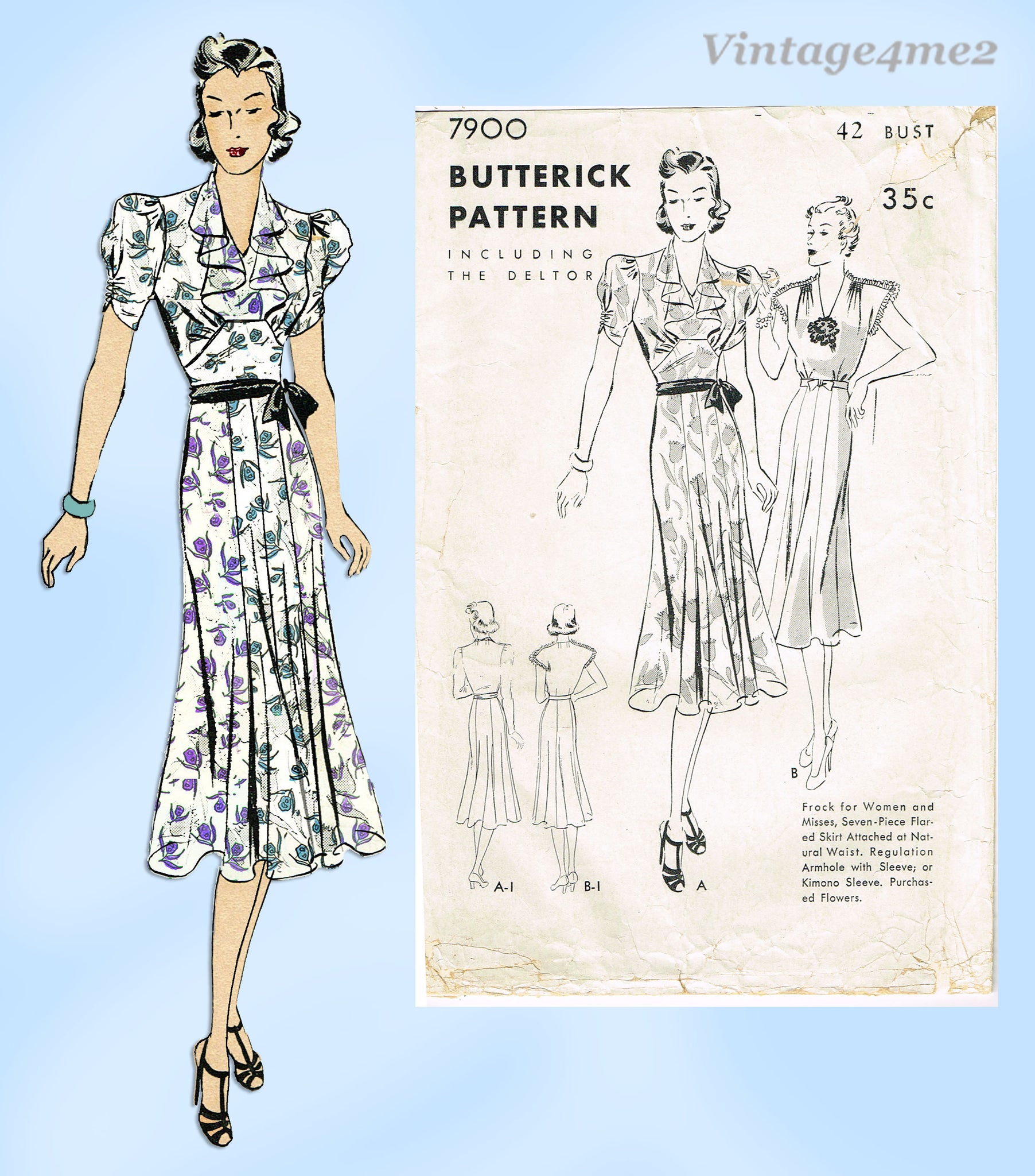 Butterick 7900: 1930s Uncut Misses Street Dress Sz 42 B Vintage Sewing Pattern