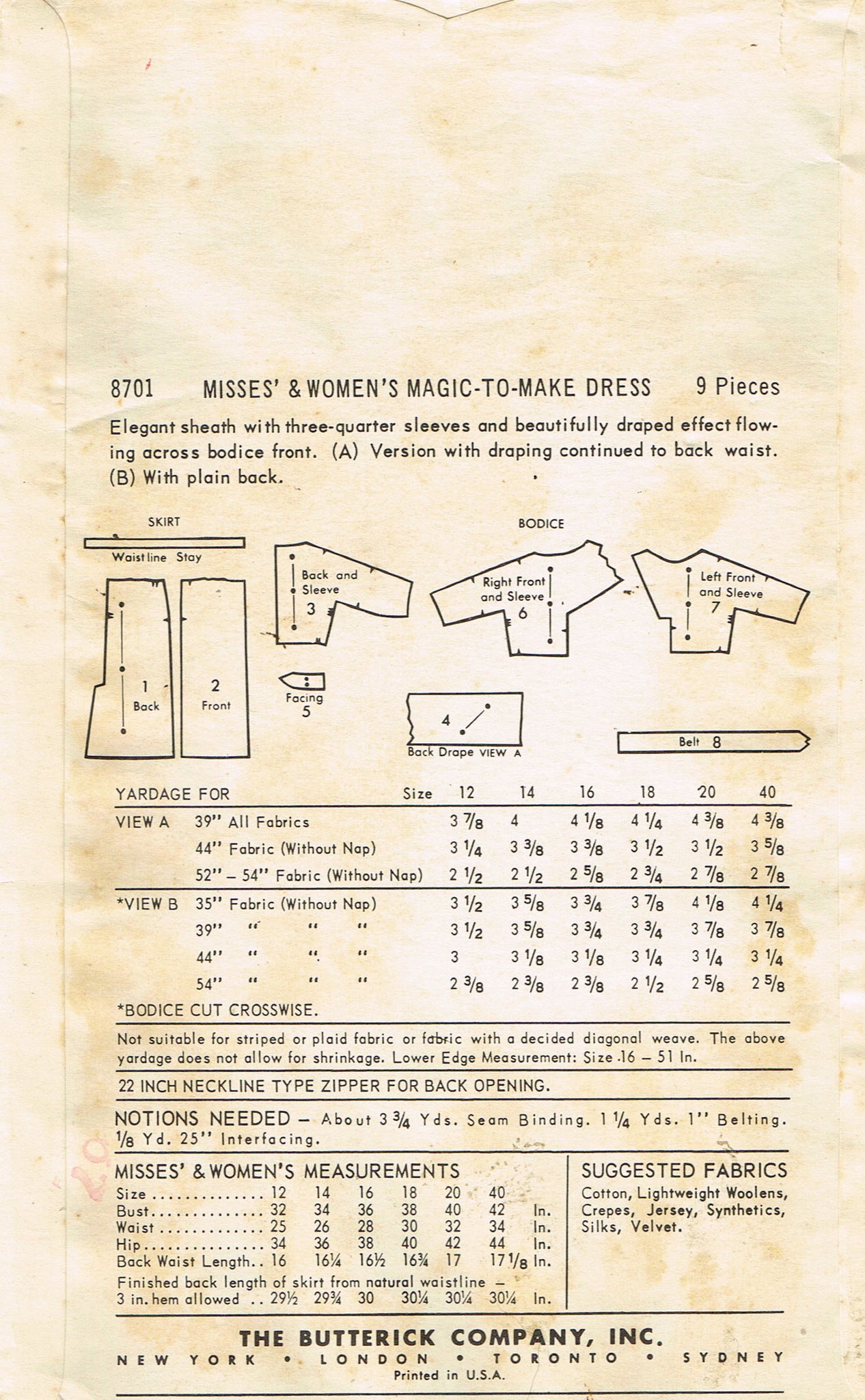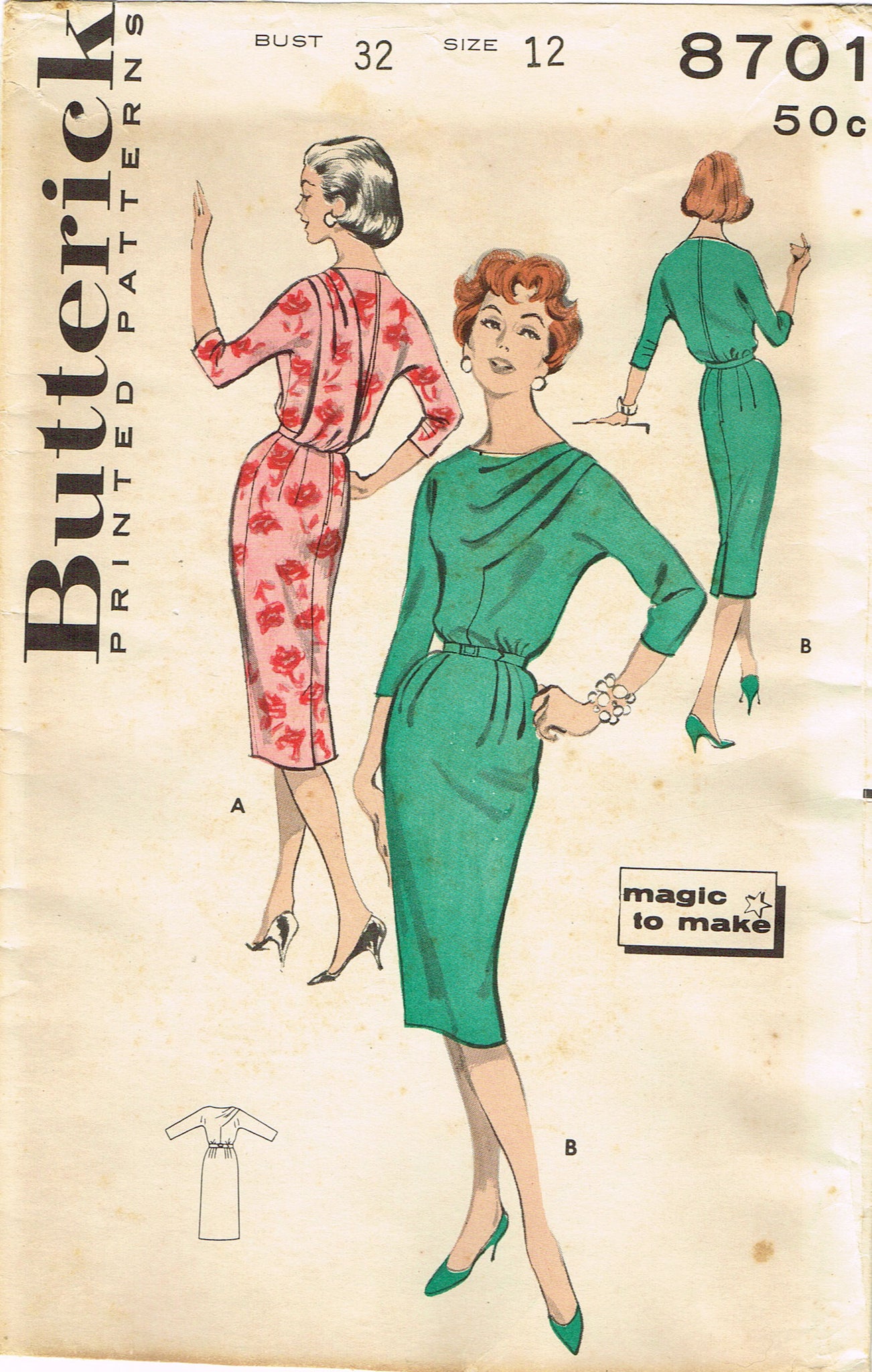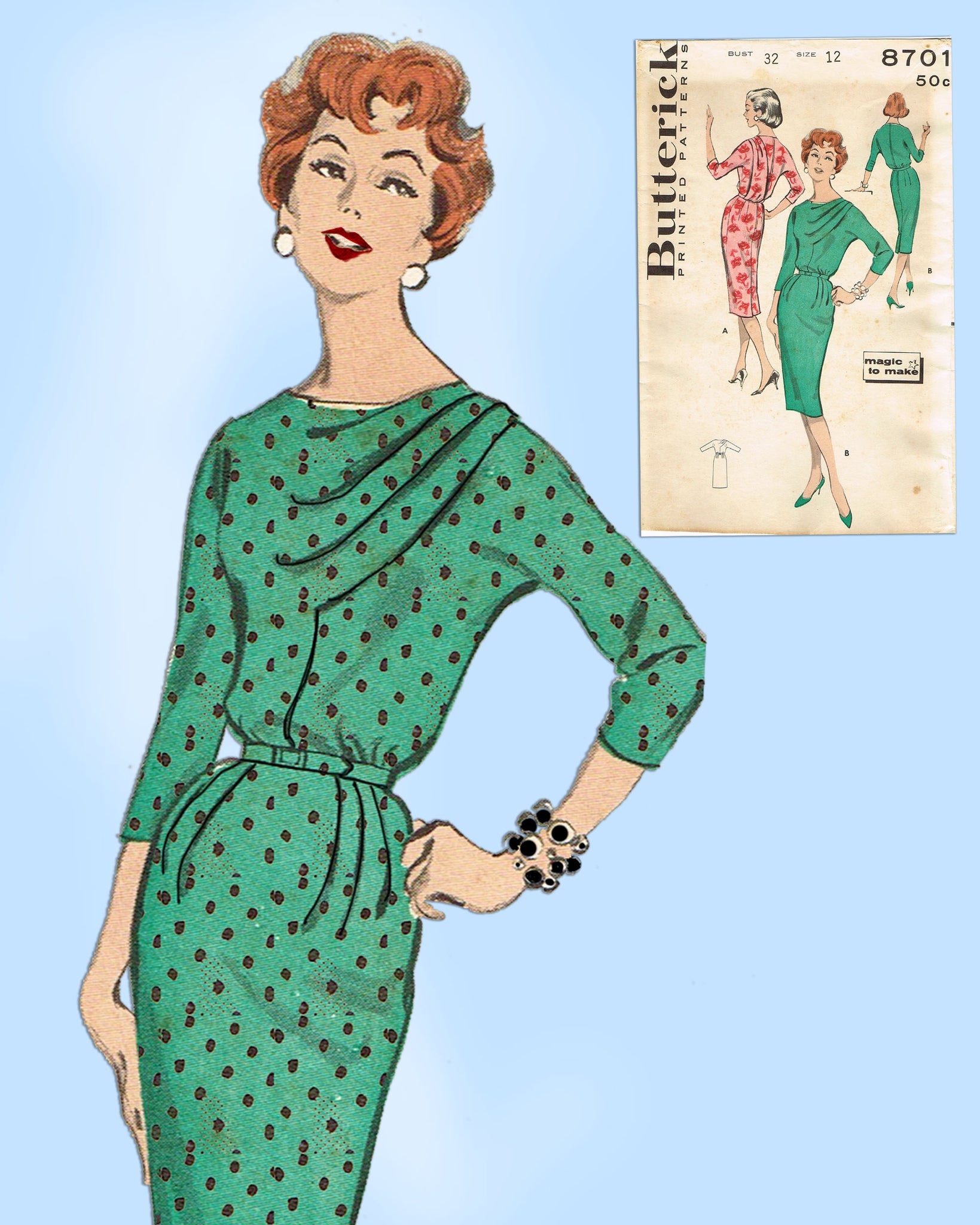 Butterick 8701: 1950s Uncut Marvelous Misses Draped Dress 32B VTG Sewing Pattern