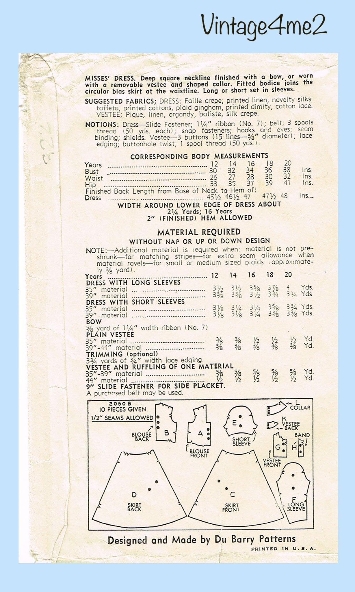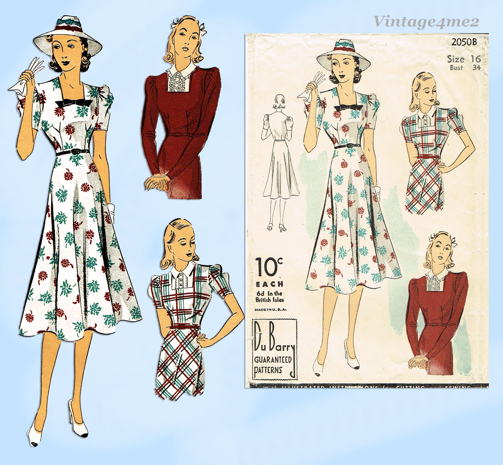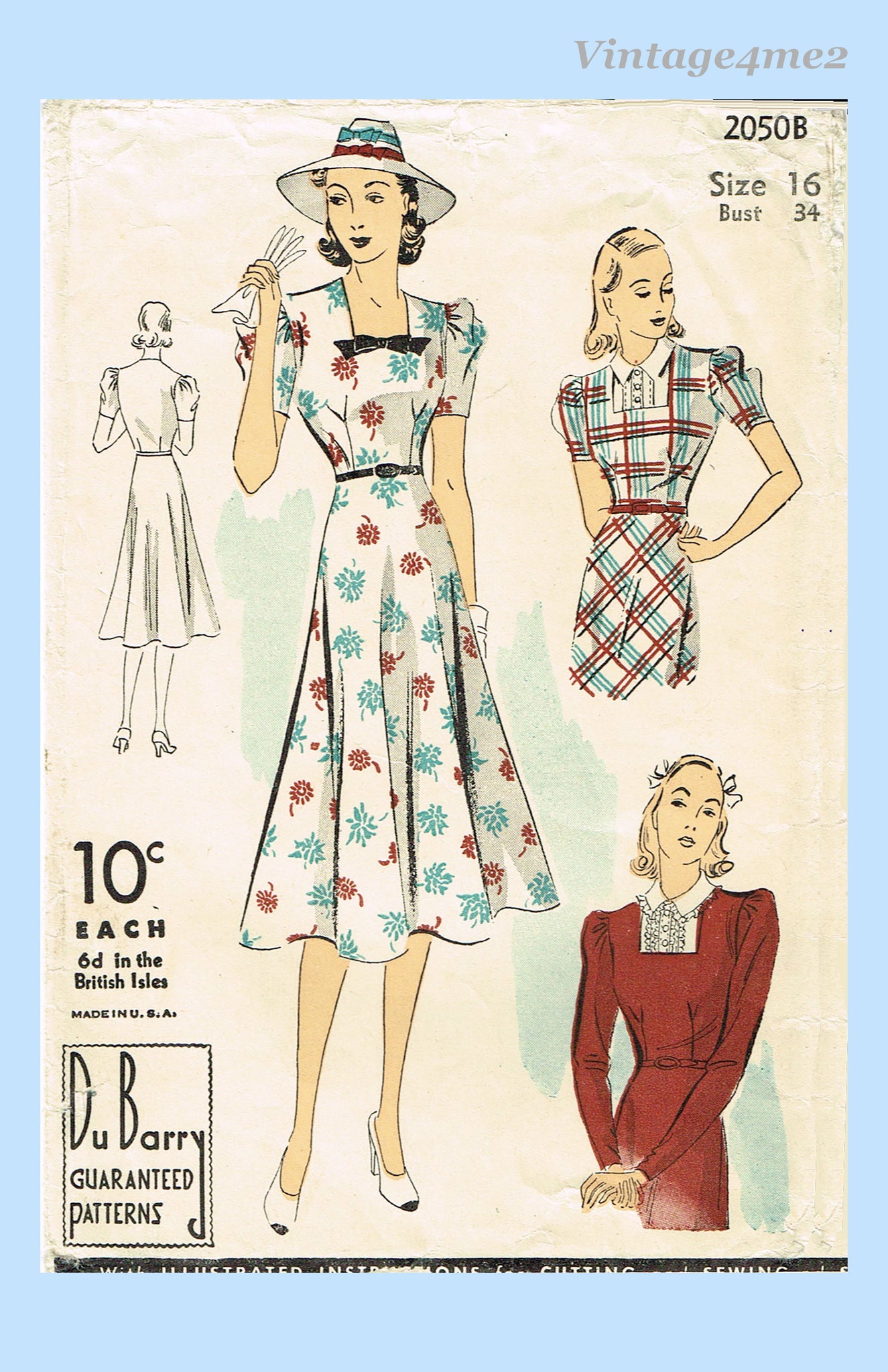 Du Barry 2050: 1930s Stunning Misses Street Dress Sz 34 B Vintage Sewing Pattern