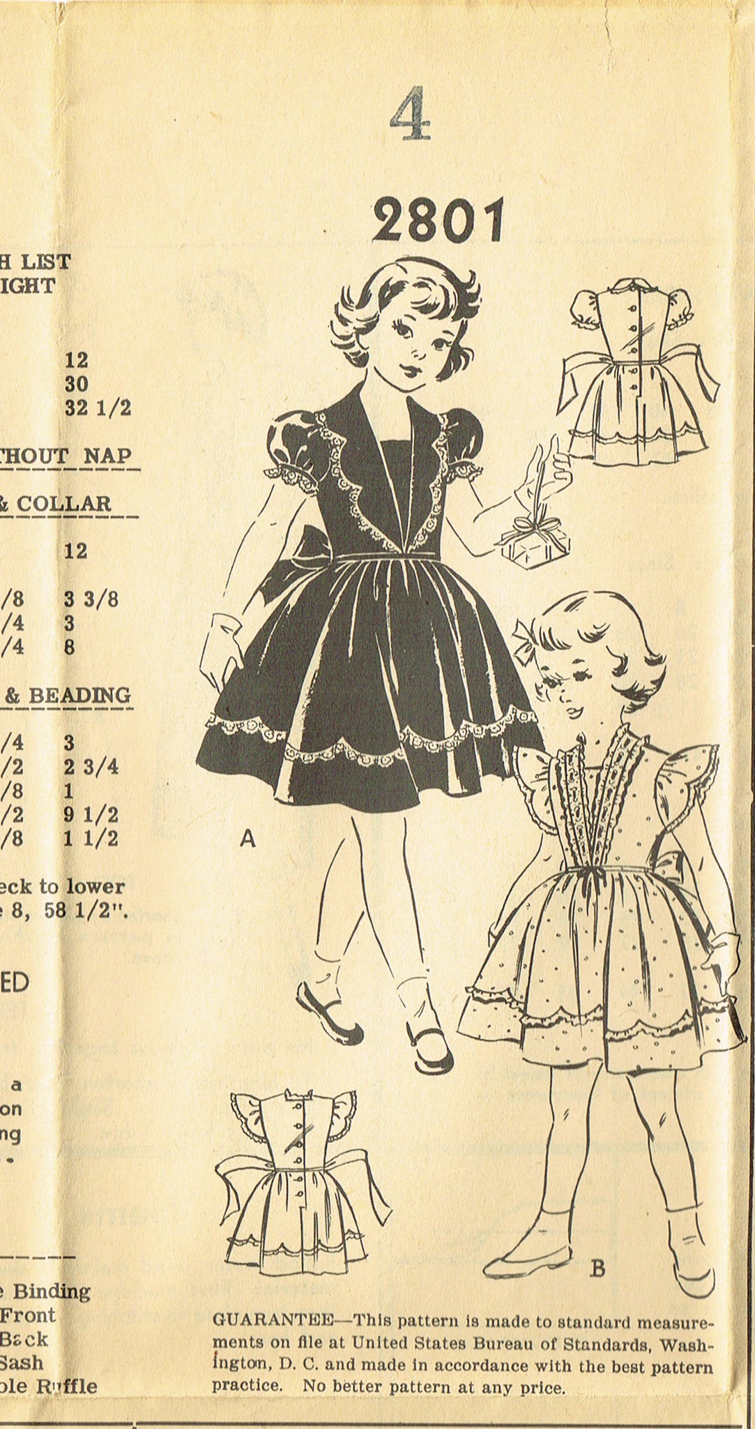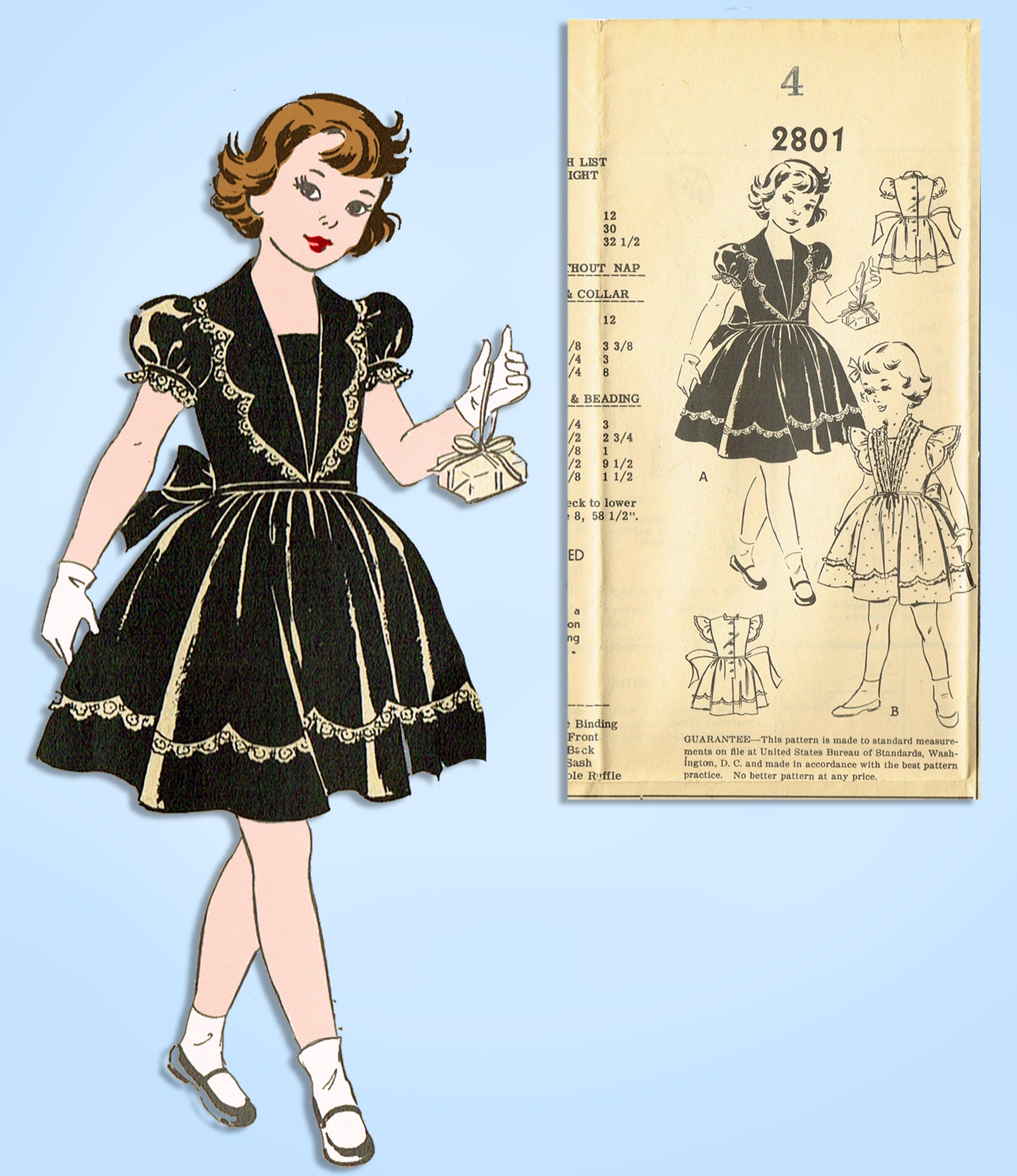 Fashion Service 2801: 1940s Uncut Toddler Girls Dress Sz4 Vintage Sewing Pattern