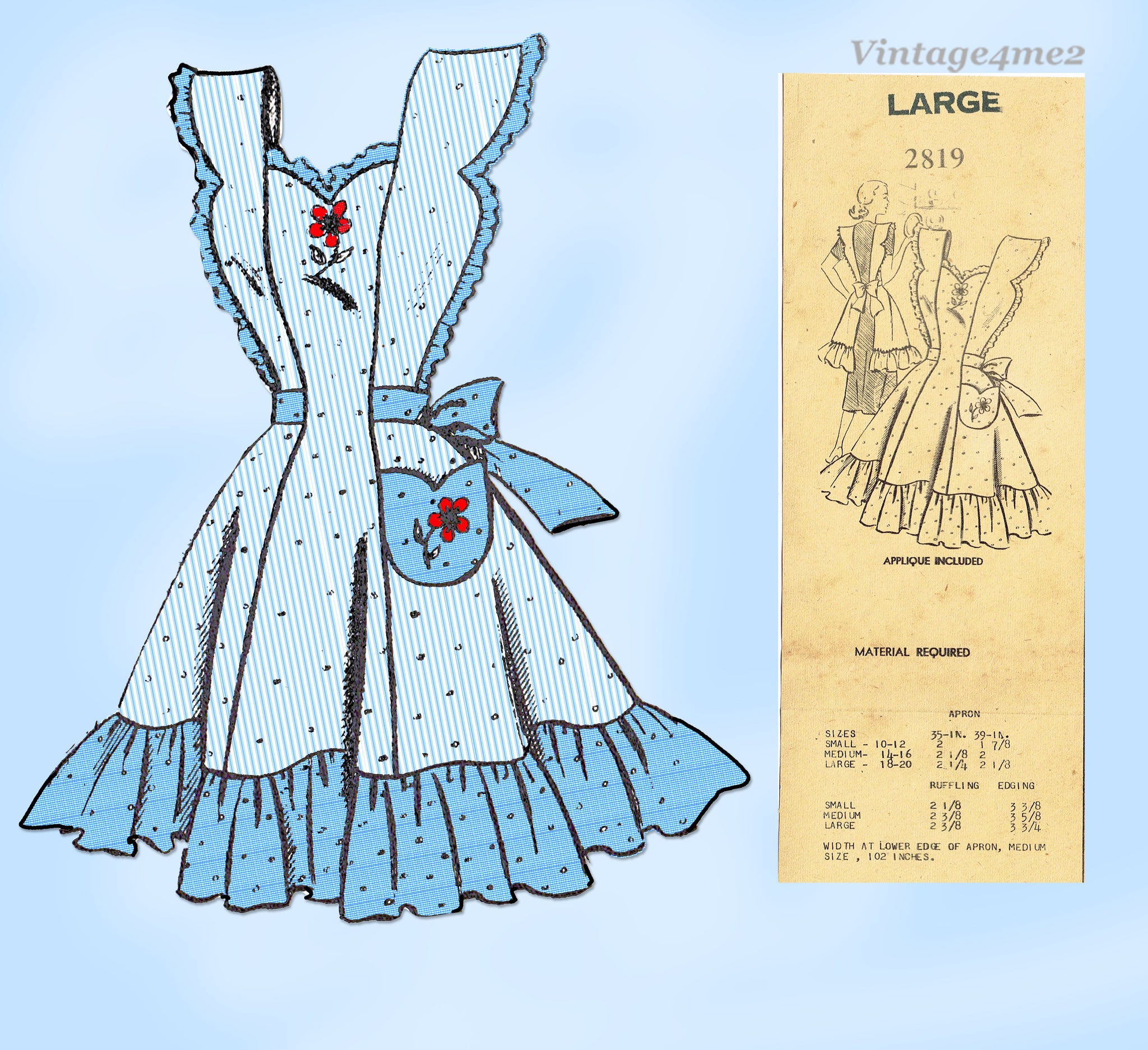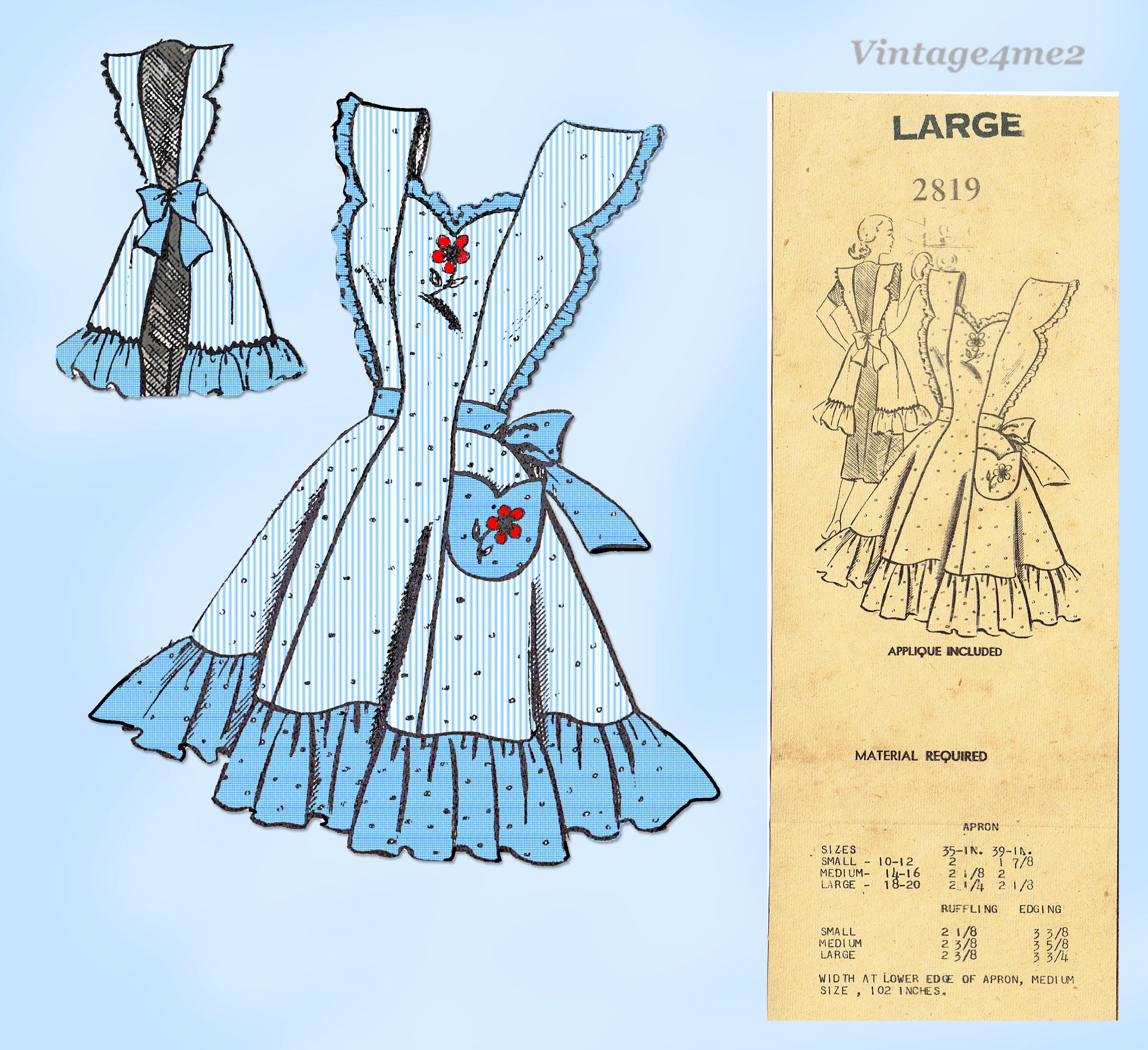 Fashion Service 2819: 1940s Misses Full Bib Apron 36-38 B Vintage Sewing Pattern
