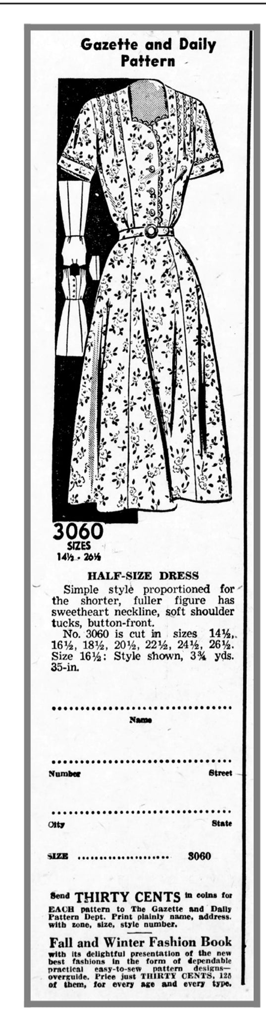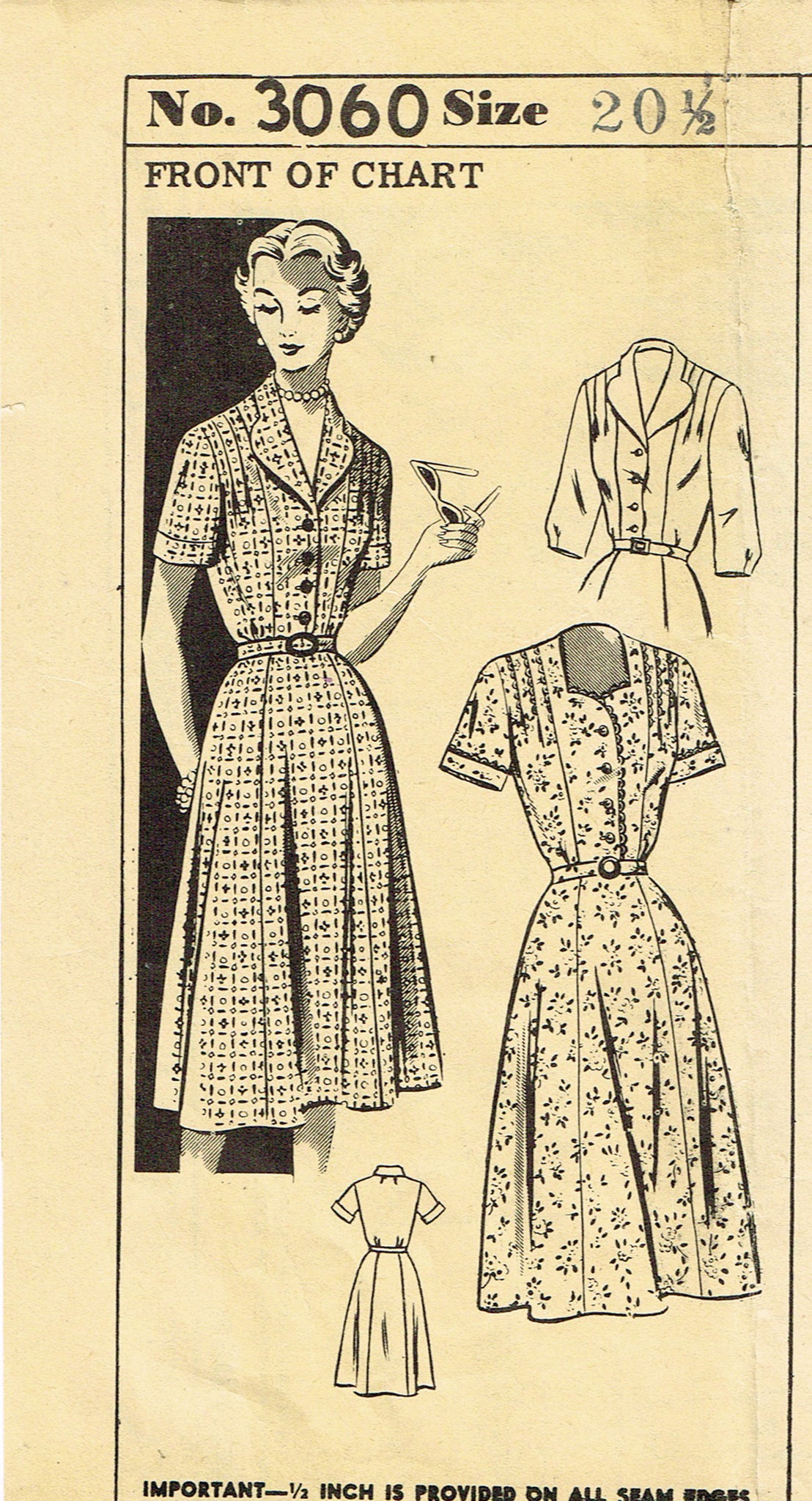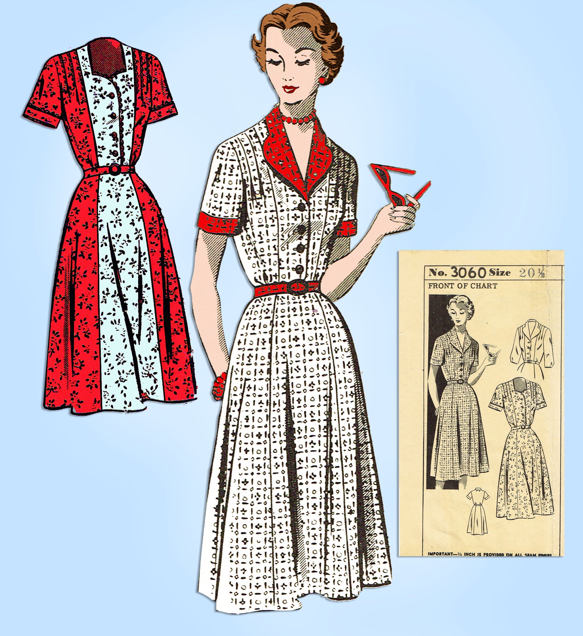 Fashion Service 3060: 1950s Ladies Shirtwaist Dress 39 B Vintage Sewing Pattern
