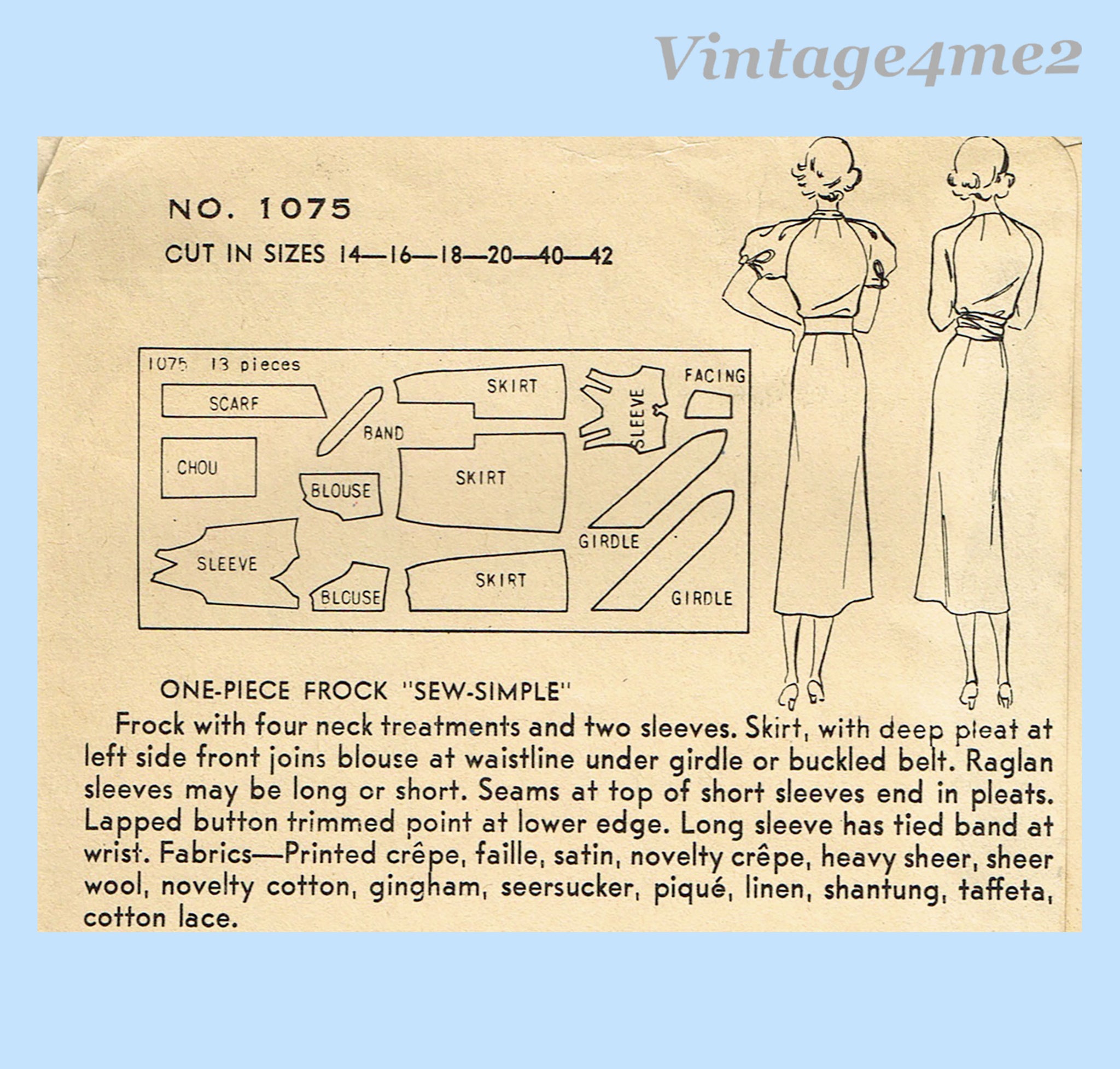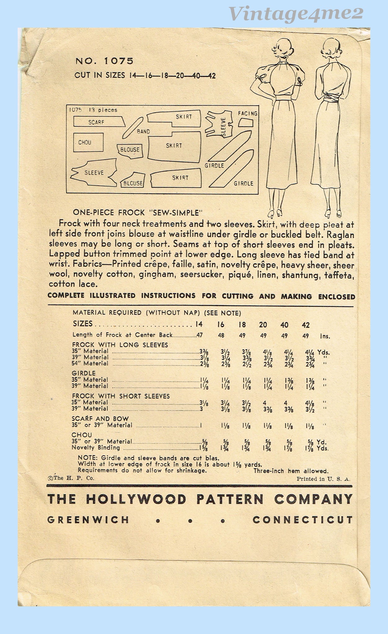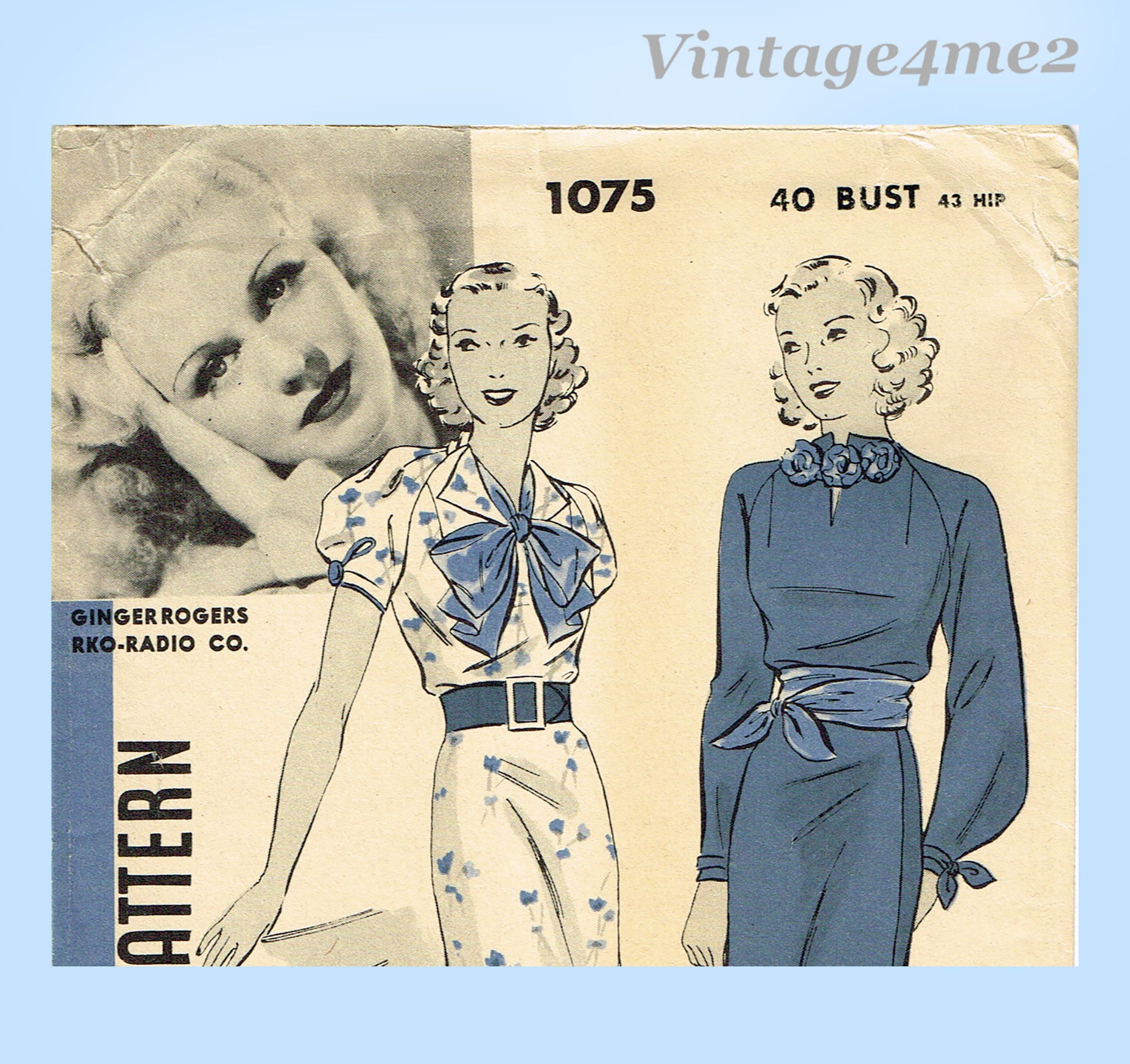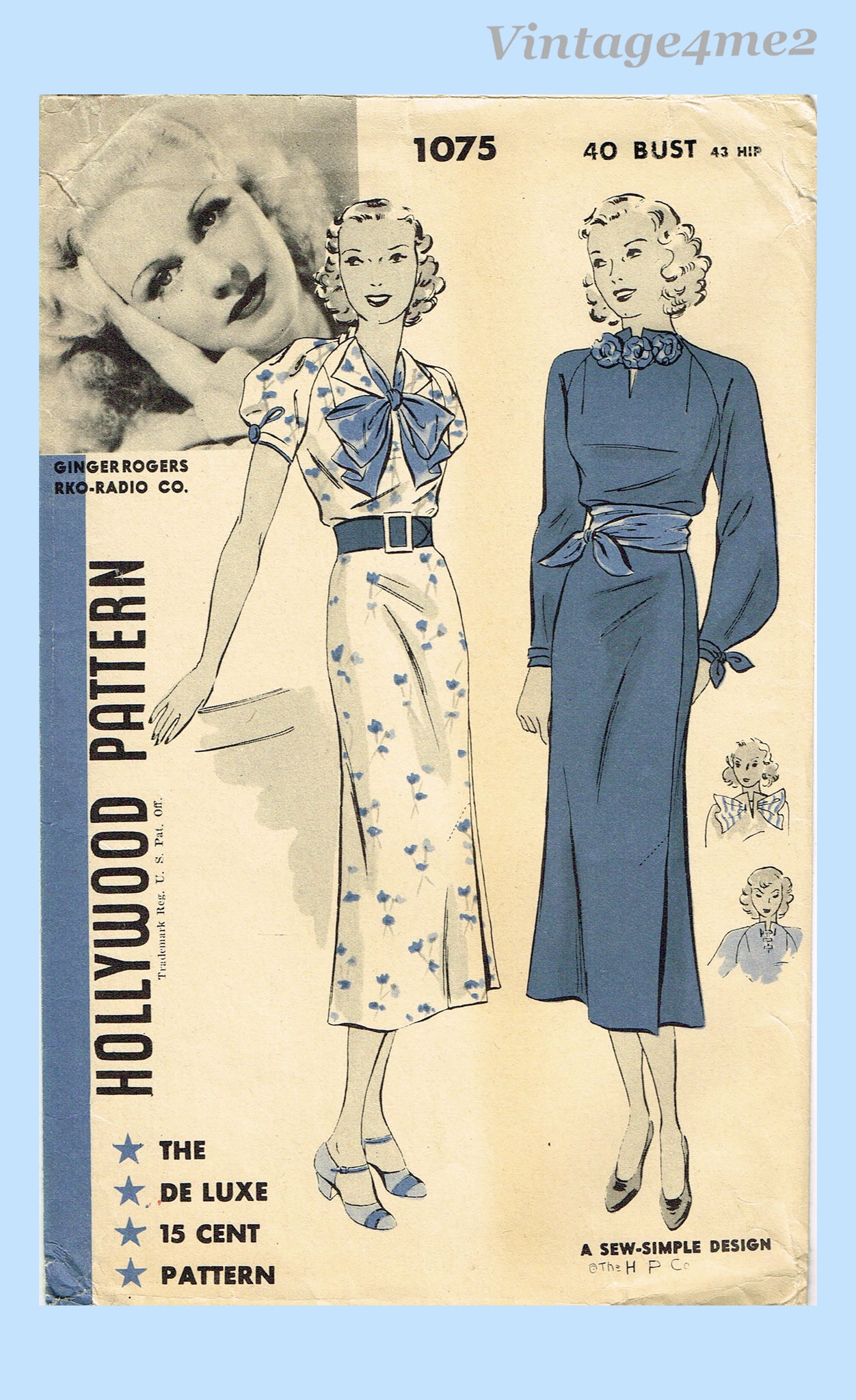 Hollywood 1075: 1930s Stunning Ginger Rogers Uncut Dinner Dress 40B Vintage Sewing Pattern