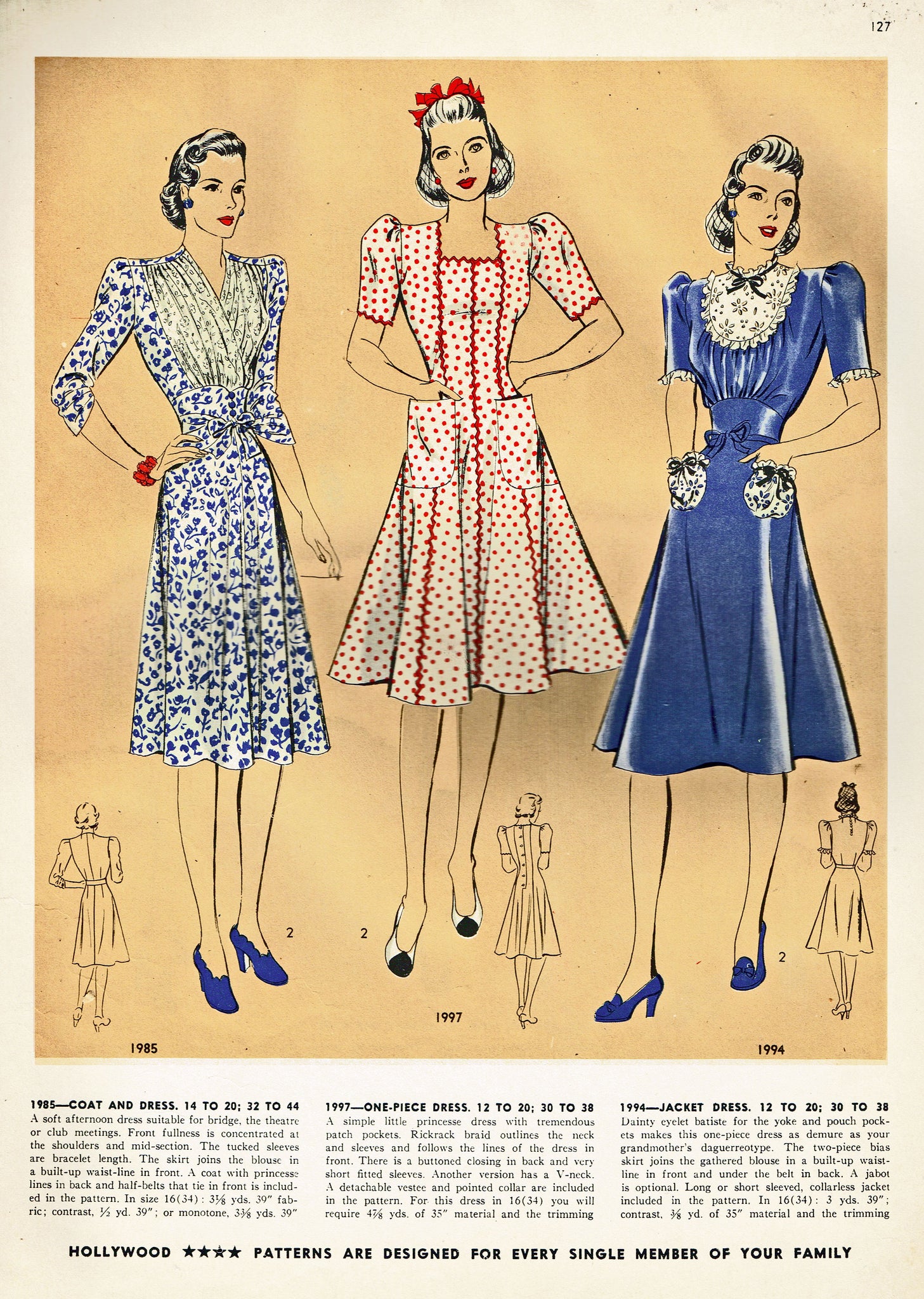 Hollywood 1997: 1940s Misses WWII Princess Dress Sz 30 B Vintage Sewing Pattern