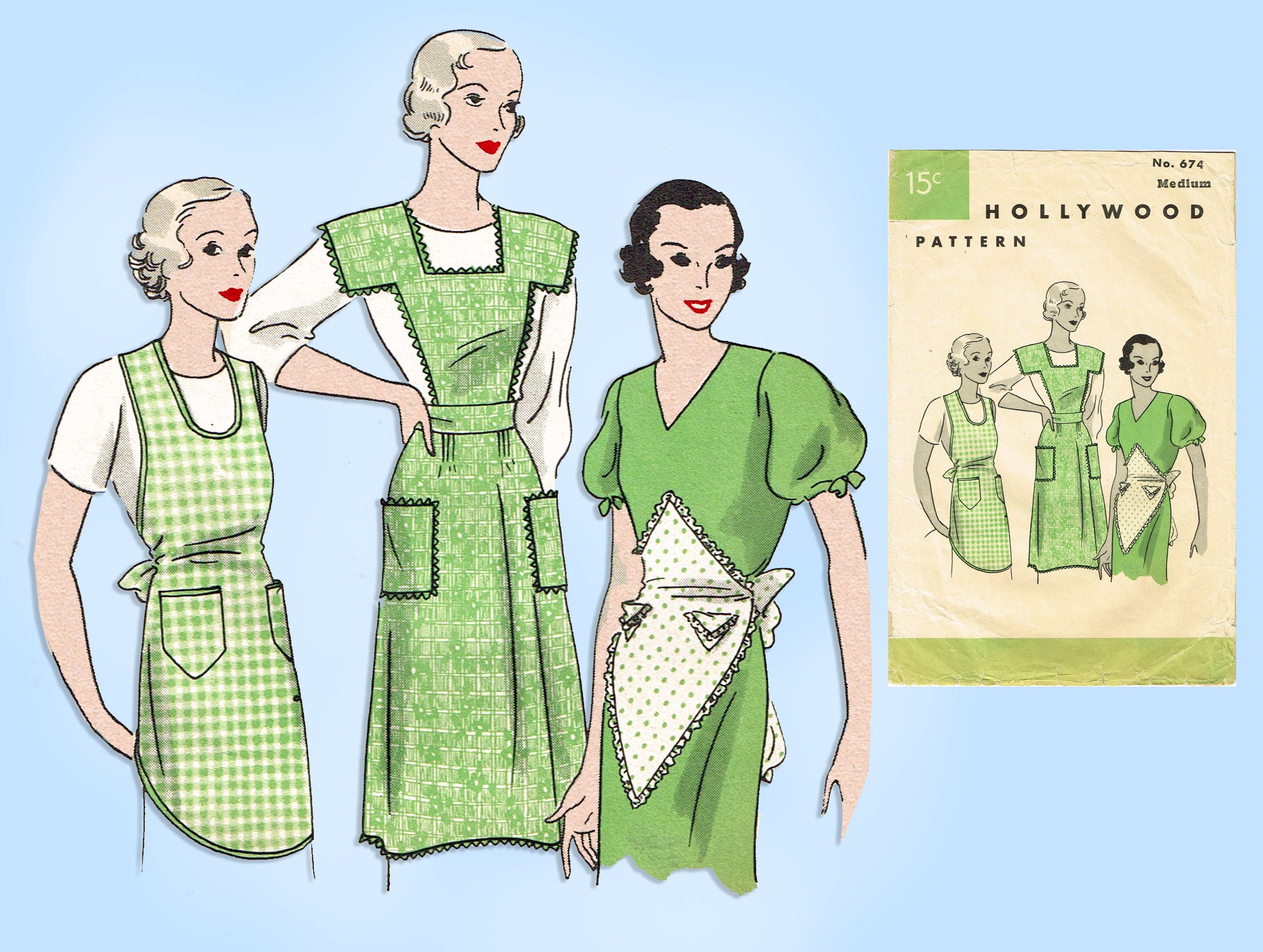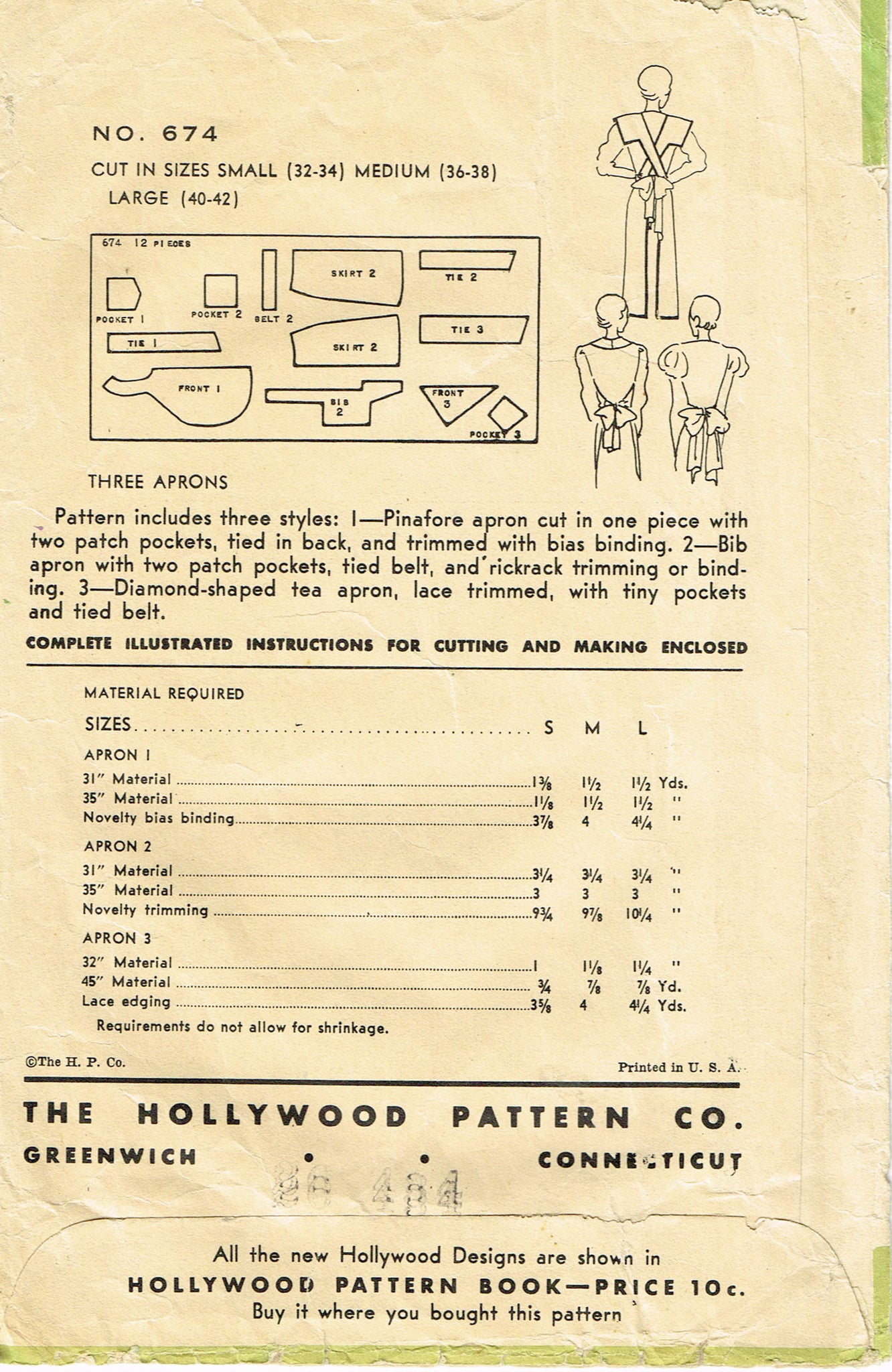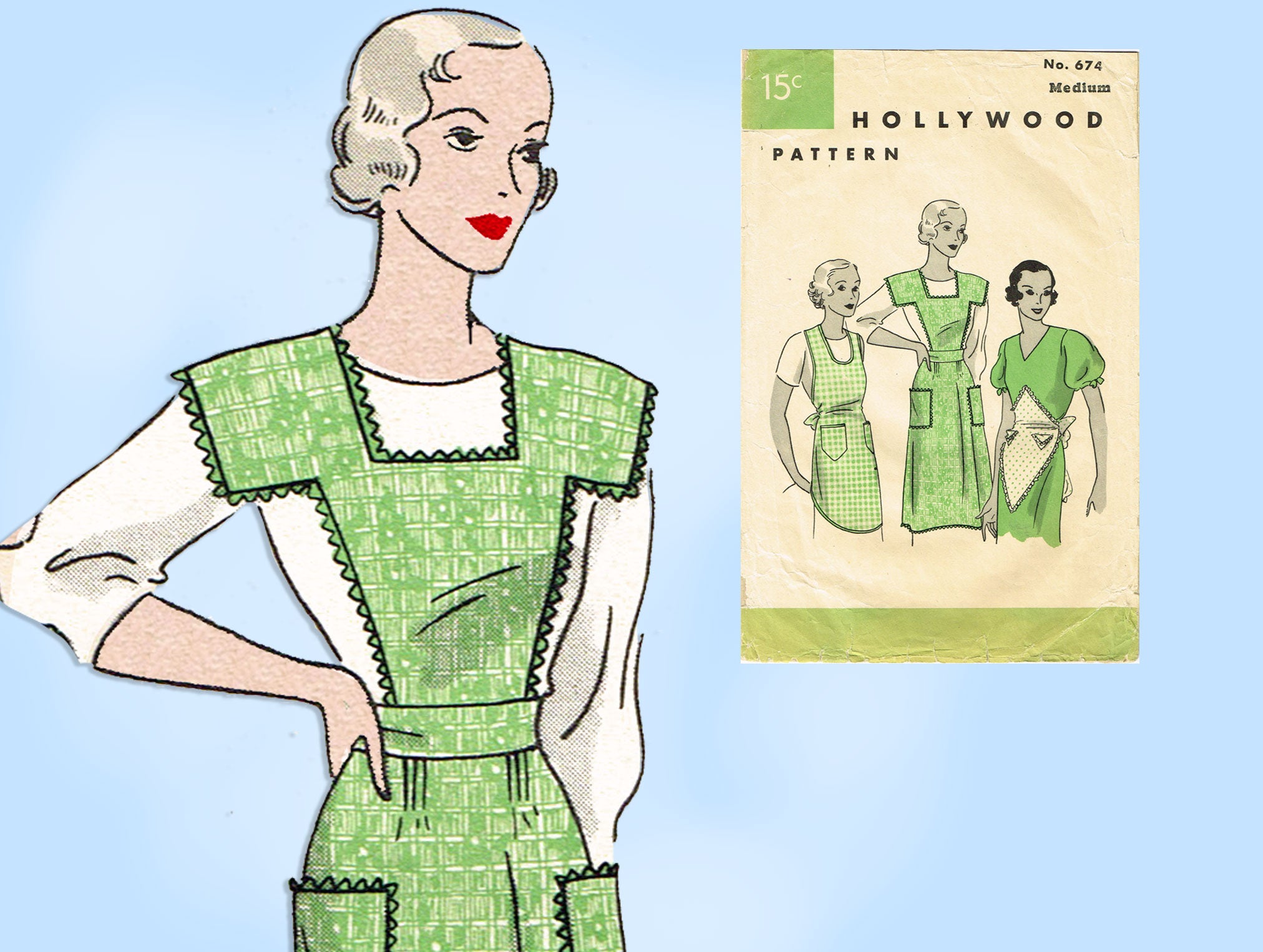 Hollywood 674: 1930s Rare Misses Apron Set Sz 36 to 38 B Vintage Sewing Pattern