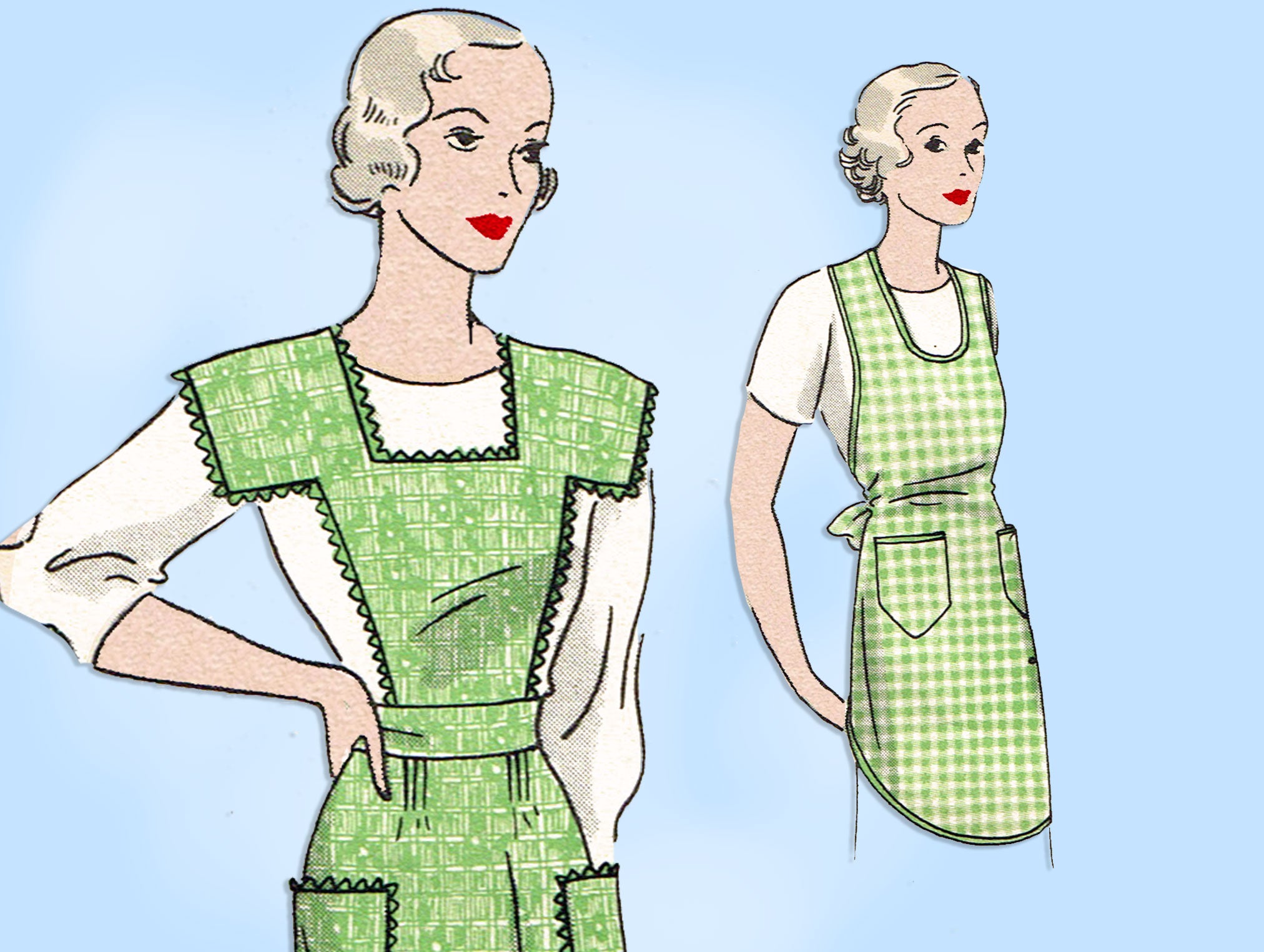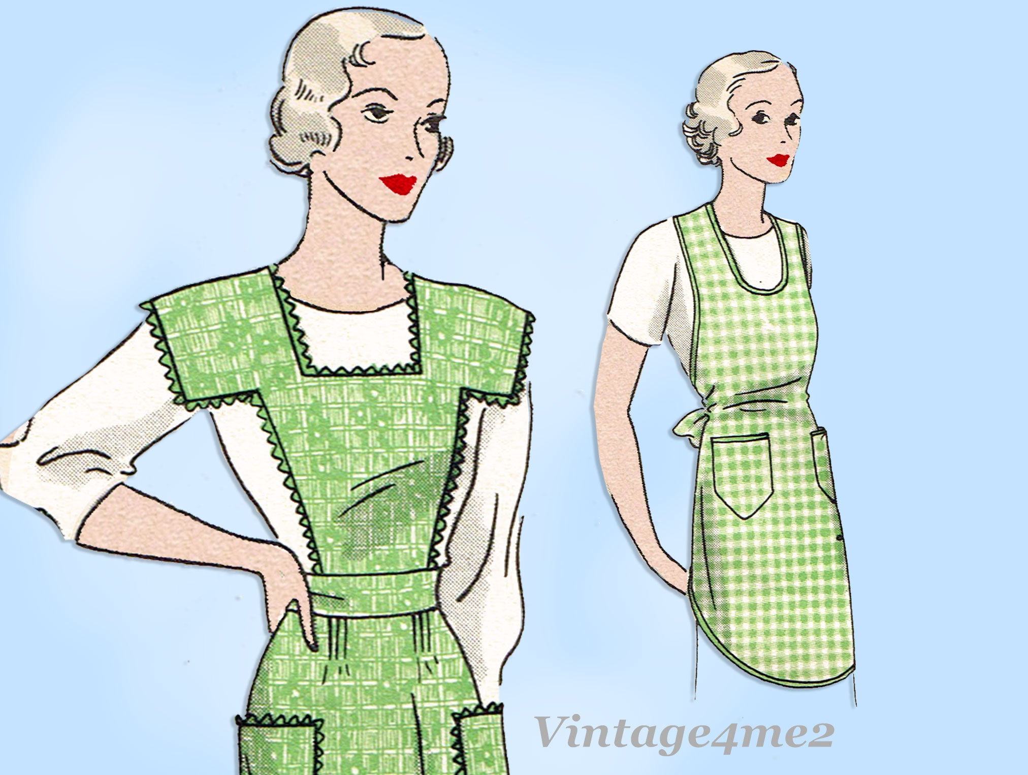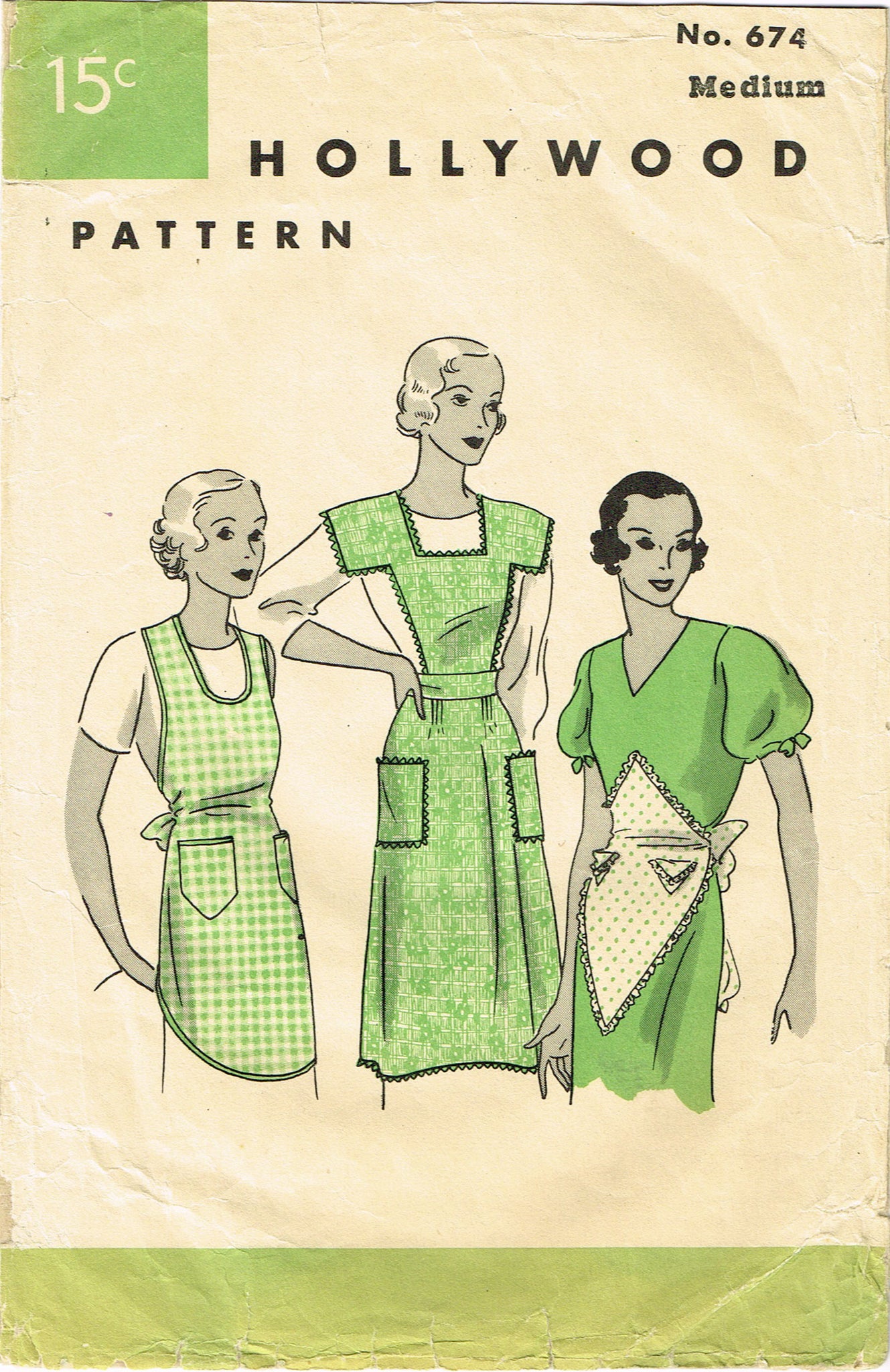 Hollywood 674: 1930s Rare Misses Apron Set Sz 36 to 38 B Vintage Sewing Pattern