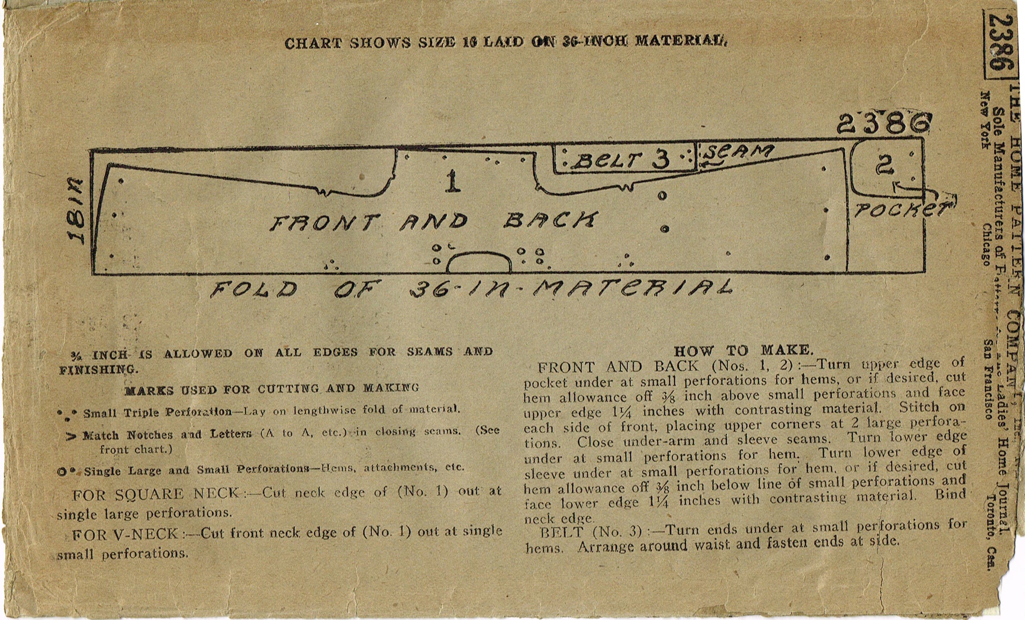Ladies Home Journal 2386: 1920s Uncut Misses Bungalow Apron Sz 32 B Sewing Pattern