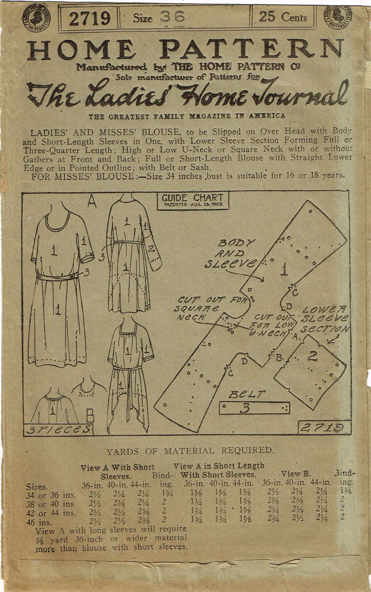 Ladies Home Journal 2719: 1920s Uncut Misses Blouse 36 B Vintage Sewing Pattern