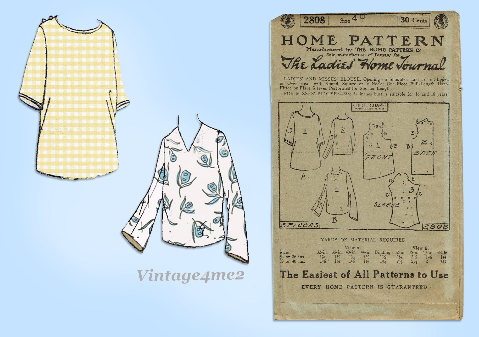 Ladies Home Journal 2808: 1920s Uncut Misses Blouse 40 B Vintage Sewing Pattern