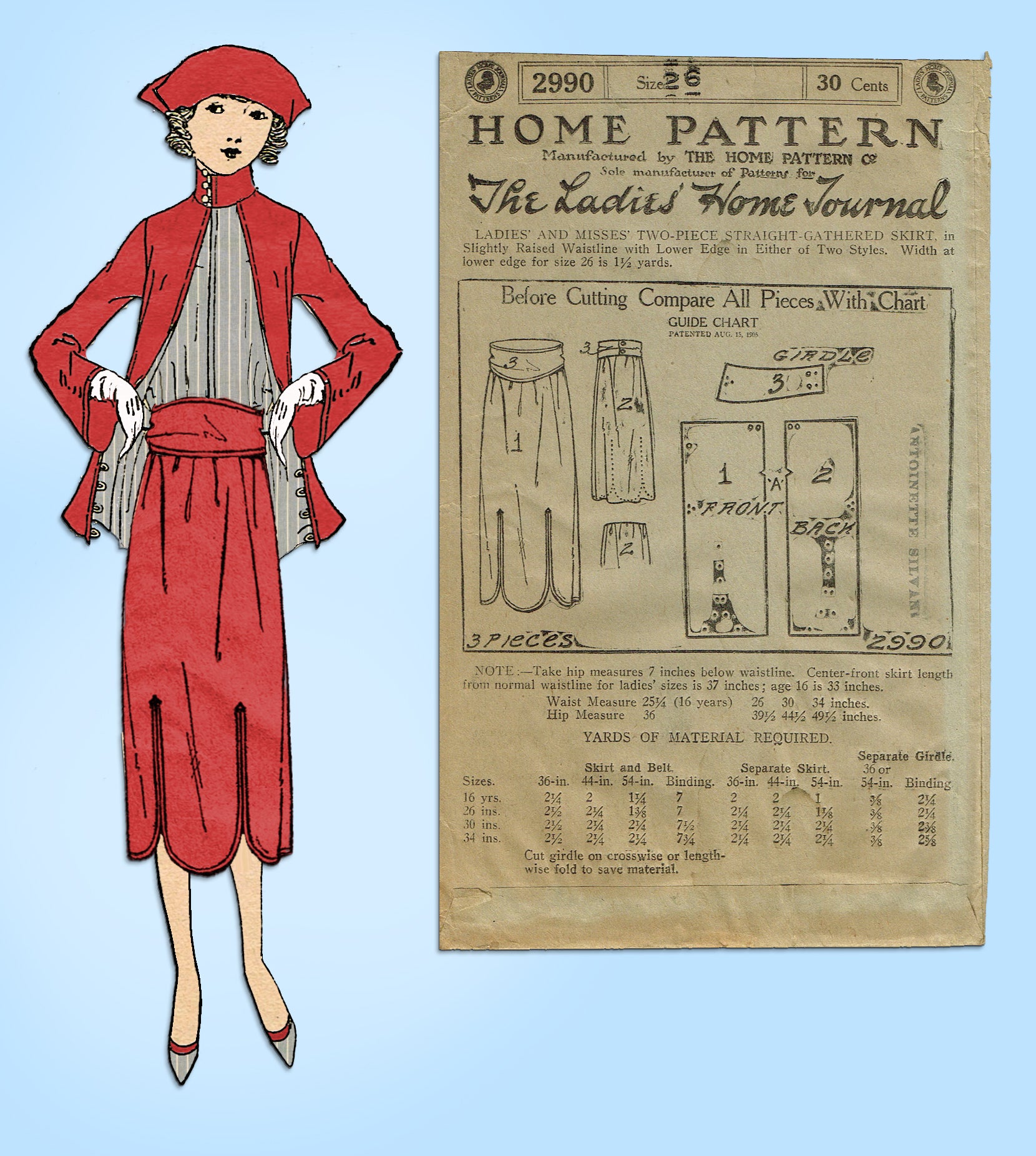 Ladies Home Journal 2990: 1920s Uncut Misses Skirt 26 W Vintage Sewing Pattern