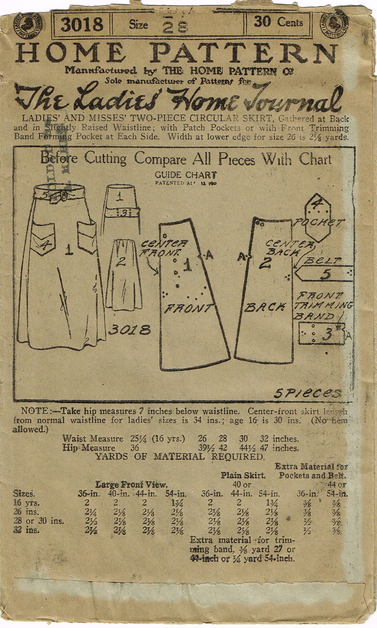 Ladies Home Journal 3018: 1920s Uncut Misses Skirt Sz 28 W Vintage Sewing Pattern