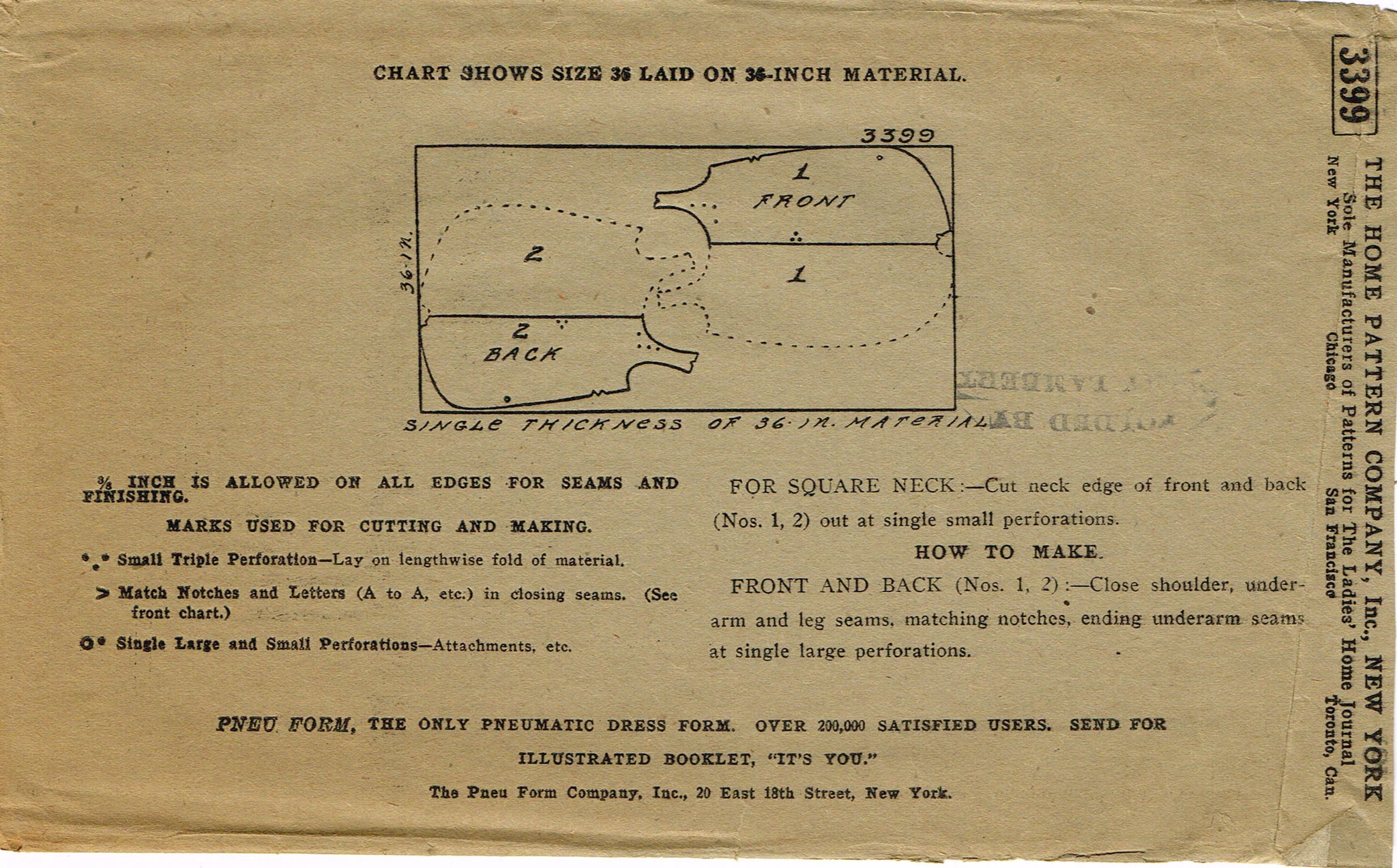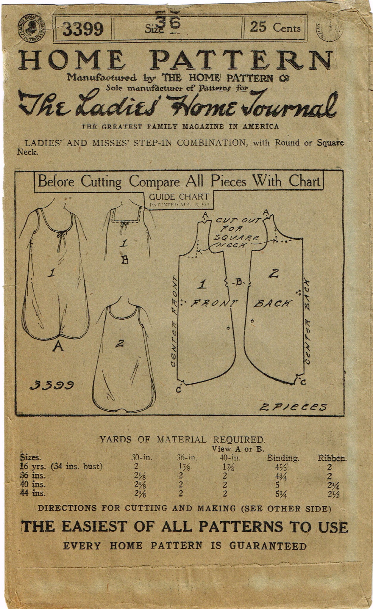 Ladies Home Journal 3399: 1920s Uncut Combination Undies Sz 36 B Sewing Pattern
