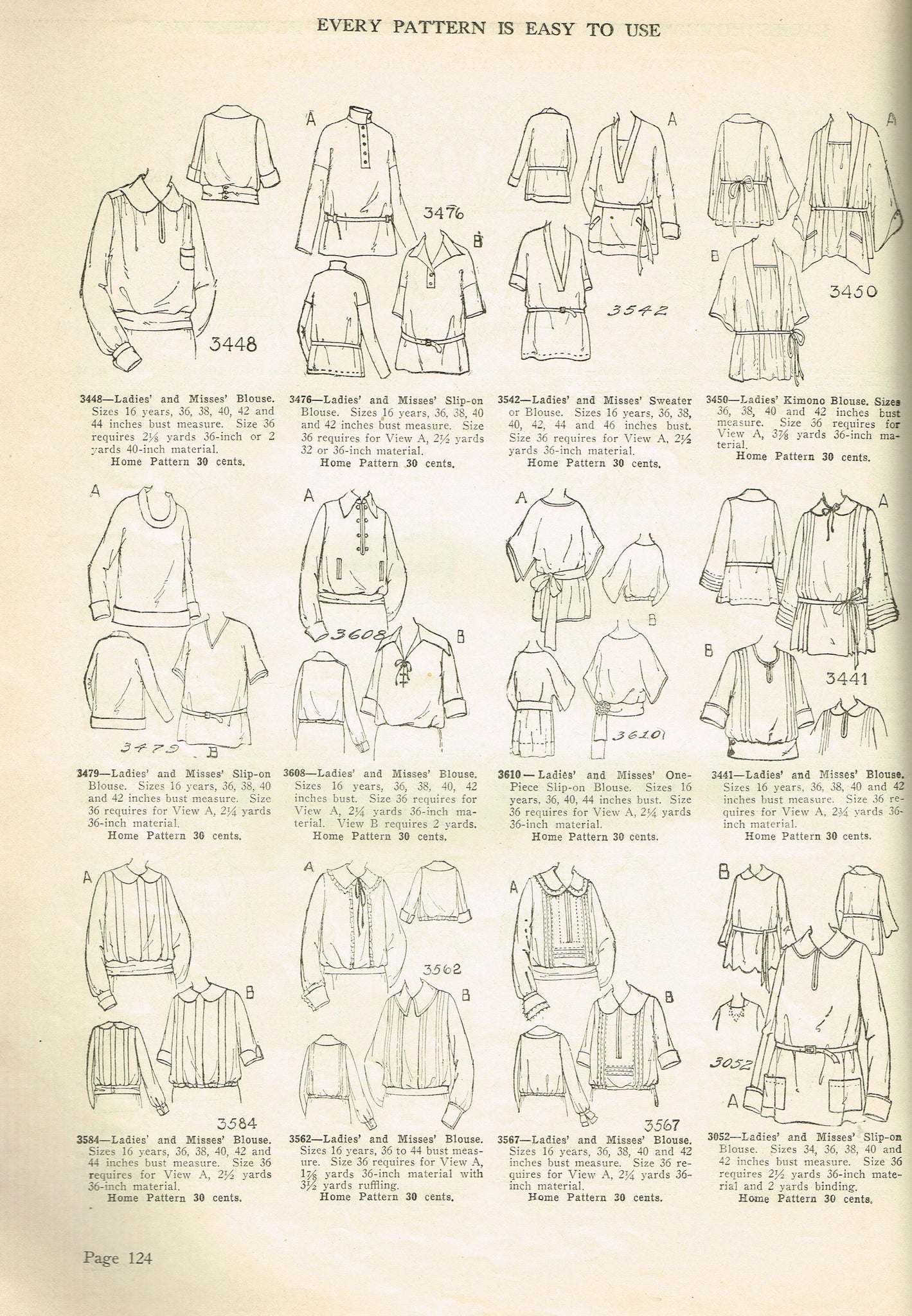 Found in the 1924 Catalog. The pictures are here for reference and are not included in the sale Factory Folded "New Old Stock" Unprinted Pattern Pieces Envelope is a Little Worn Size 42" Bust