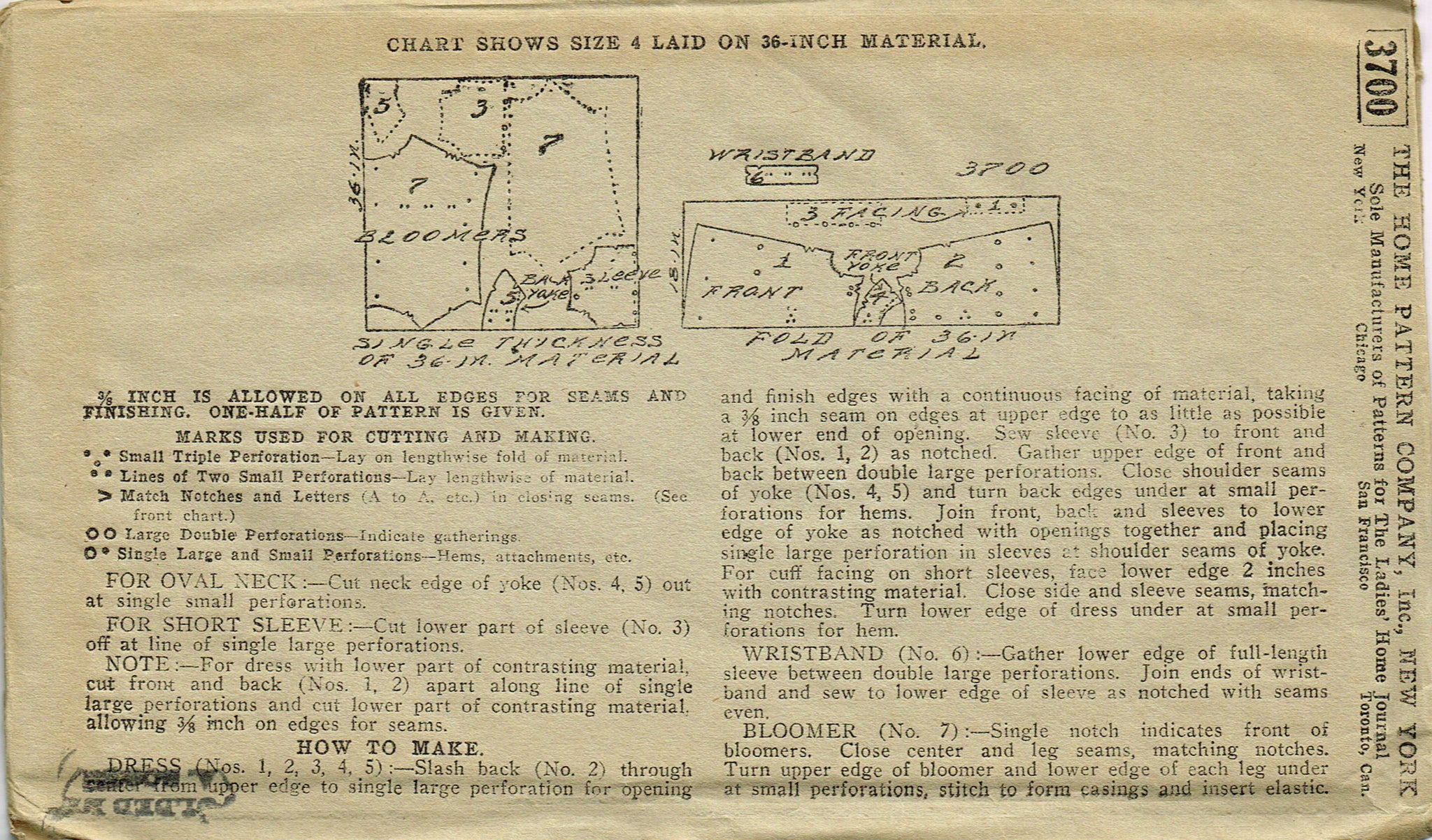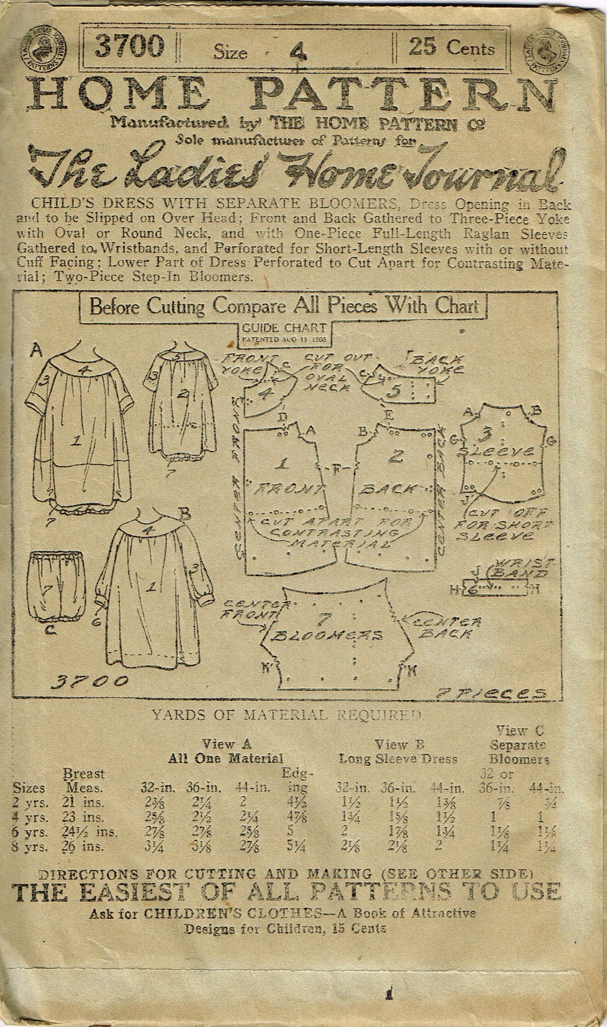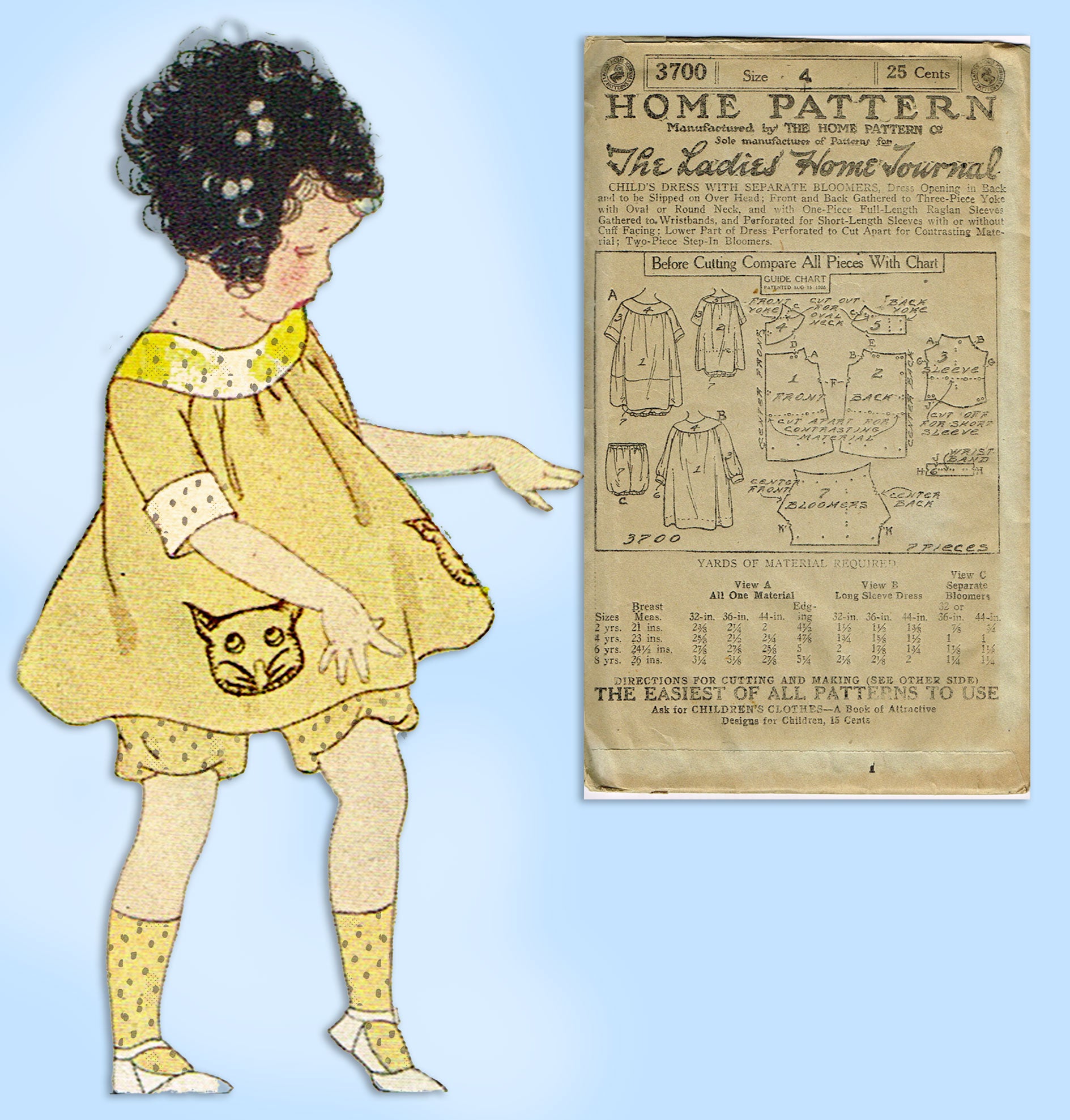 Ladies Home Journal 3700: 1920s Girls Bloomer Dress Sz 4 Vintage Sewing Pattern