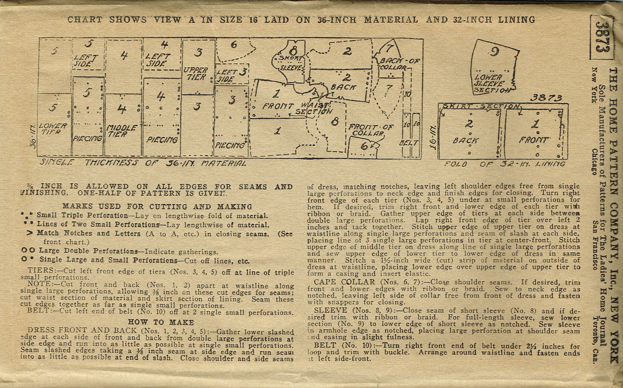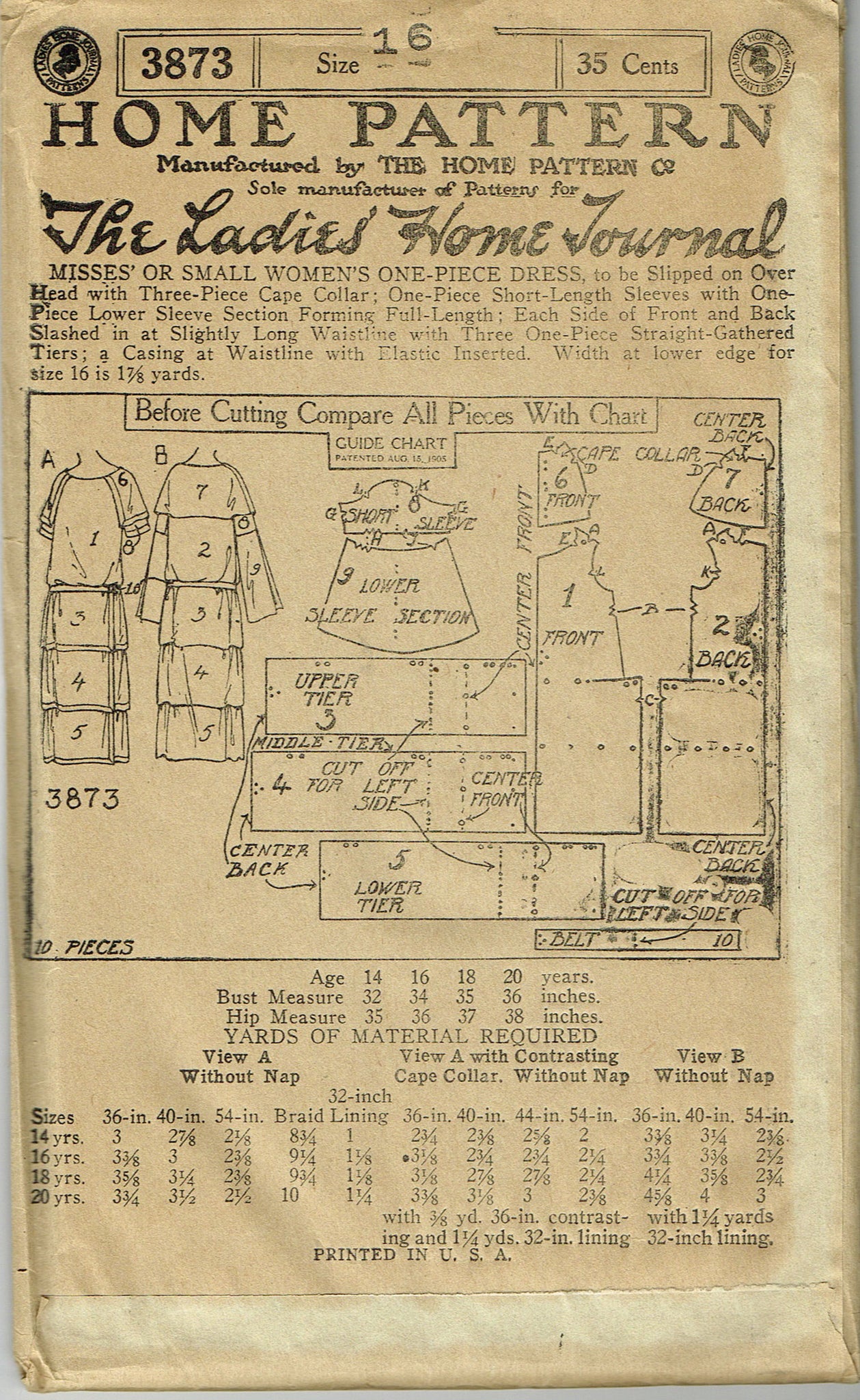 Ladies Home Journal 3873: 1920s Uncut Misses Dress 34B Vintage Sewing Pattern