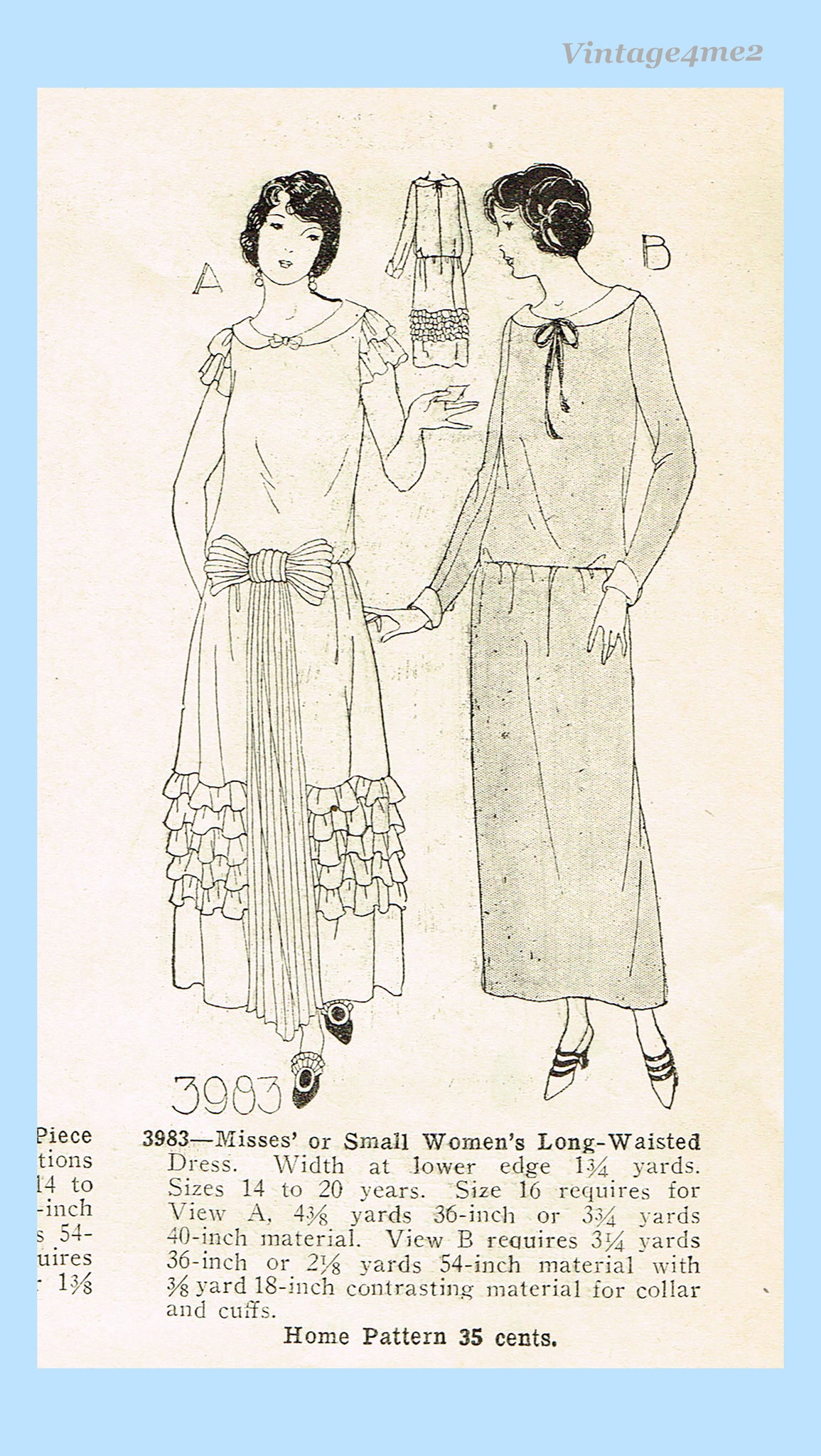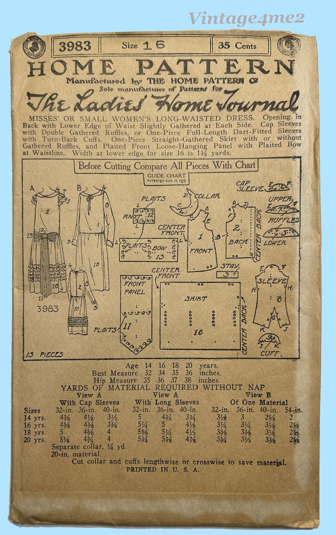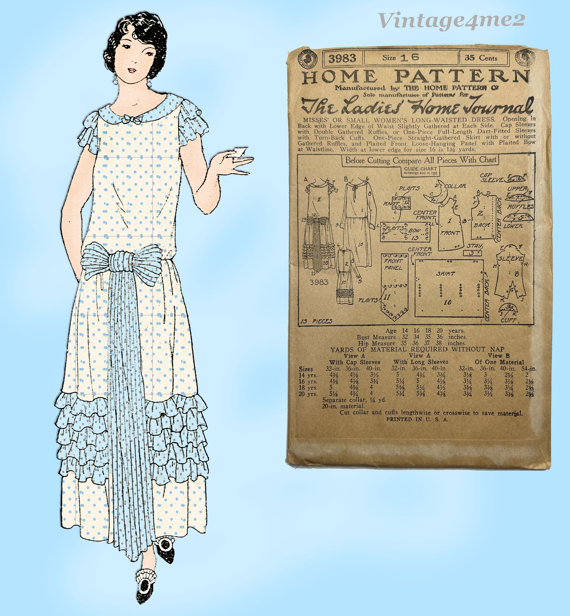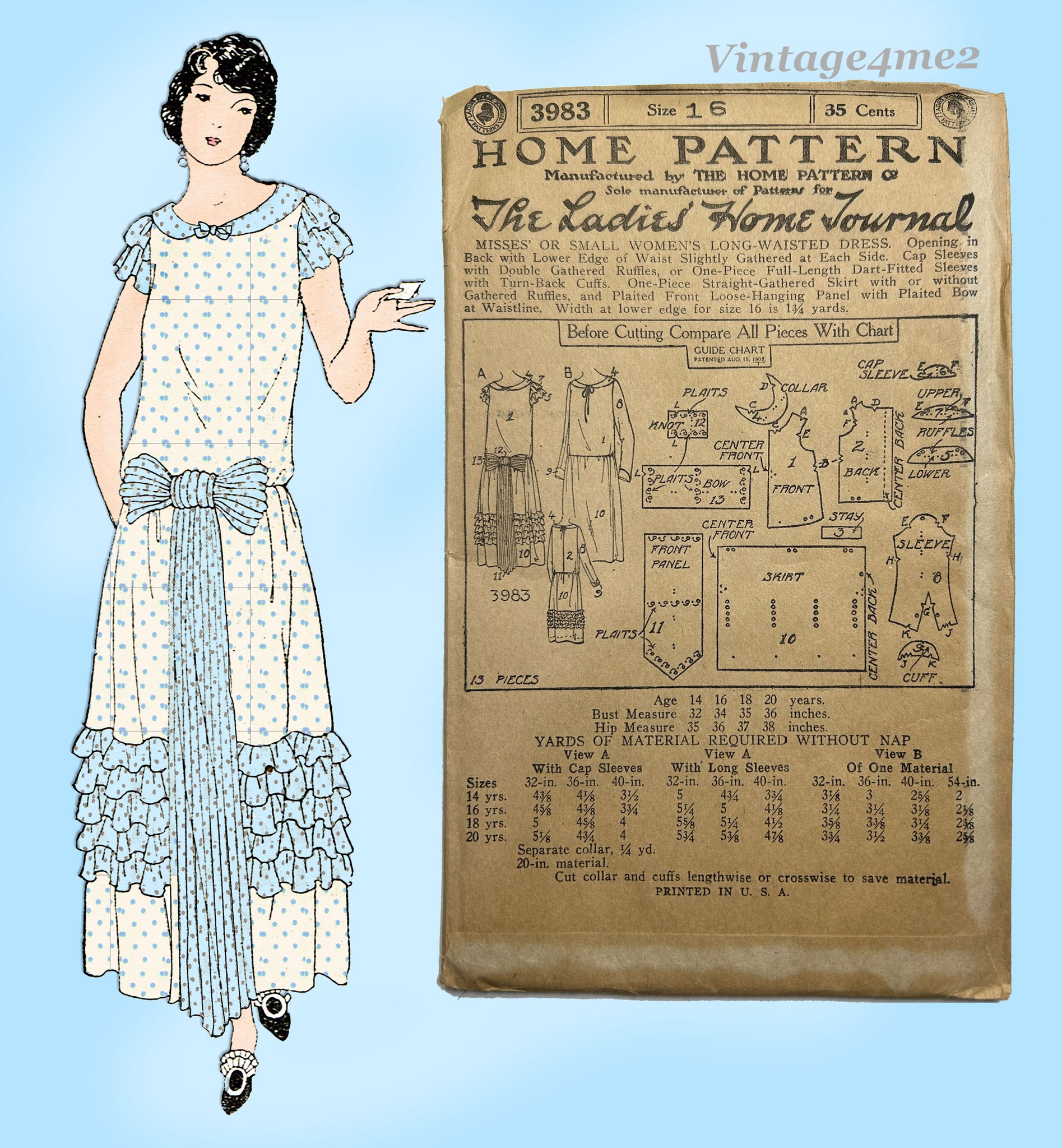Ladies Home Journal 3983: 1920s Uncut Misses Dress 34B Vintage Sewing Pattern