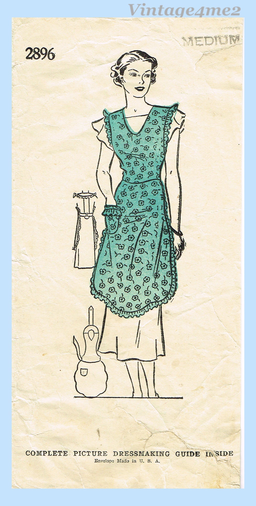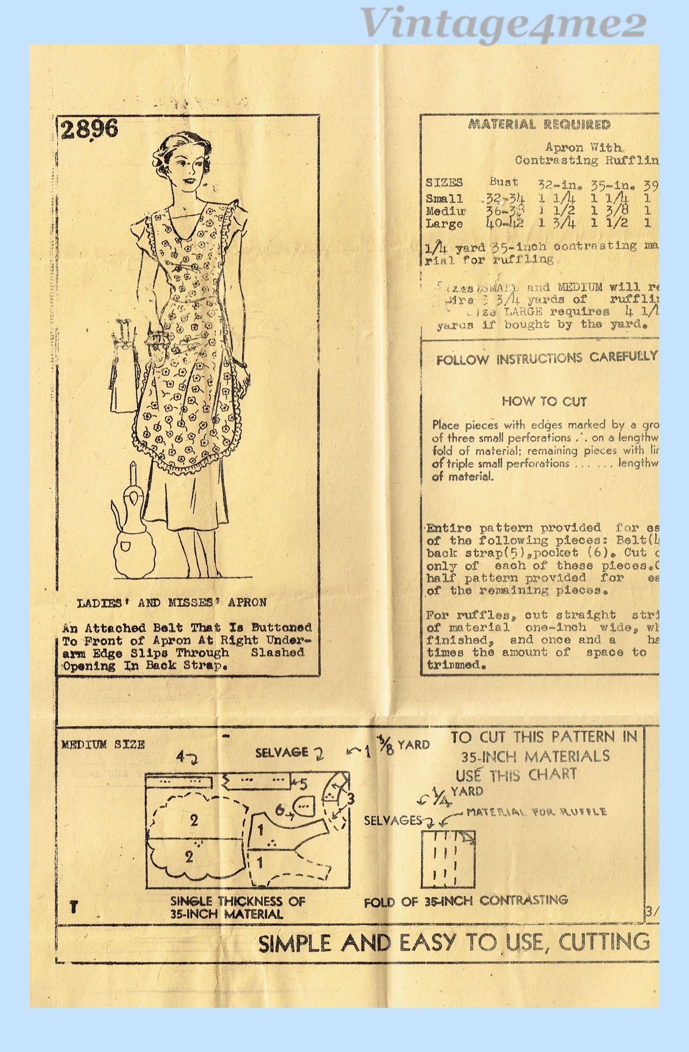 New York 2896: 1930s Misses Farm Kitchen Apron Sz 36-38 B Vintage Sewing Pattern