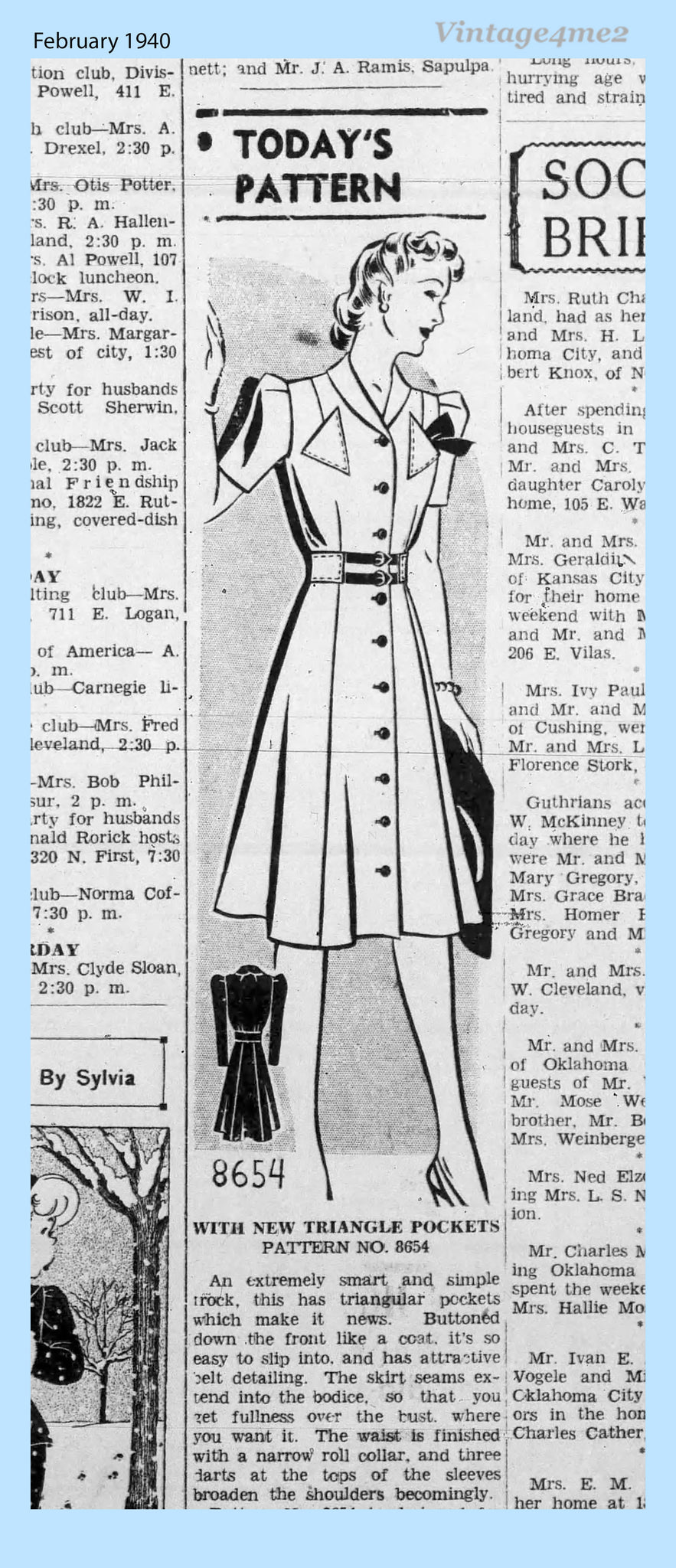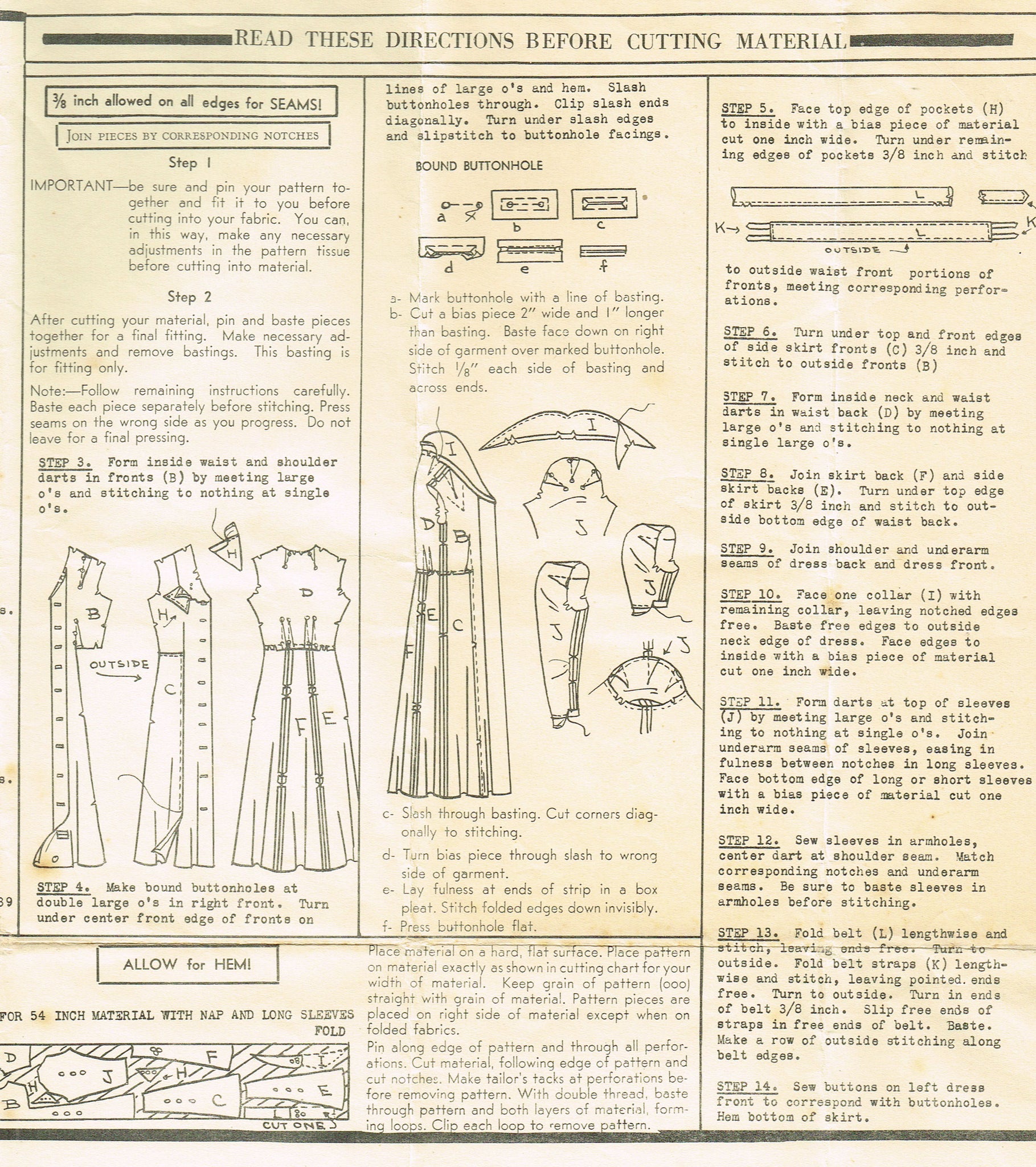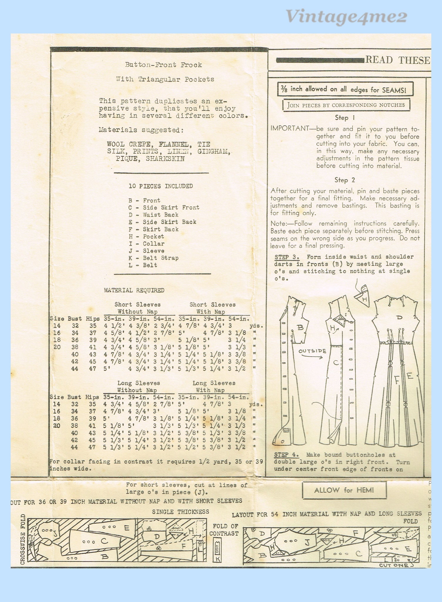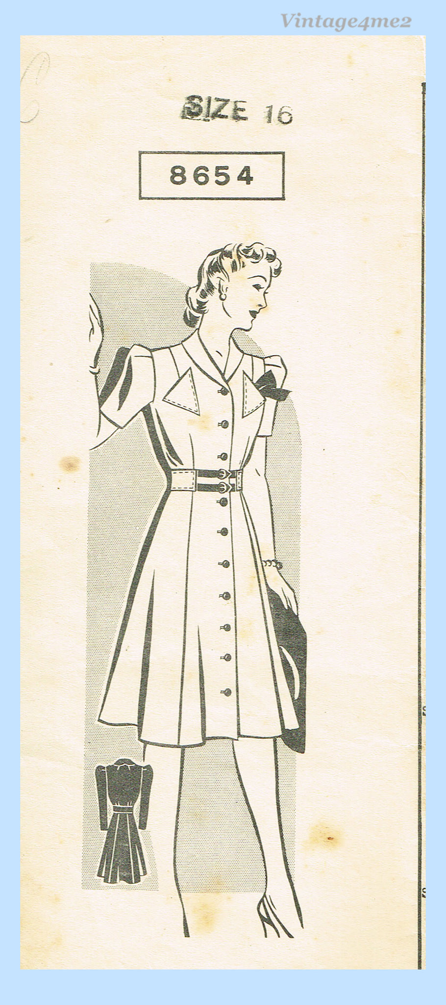 Mail Order 8654: 1940s Misses WWII Shirtwaist Dress Sz 34 B Vintage Sewing Pattern
