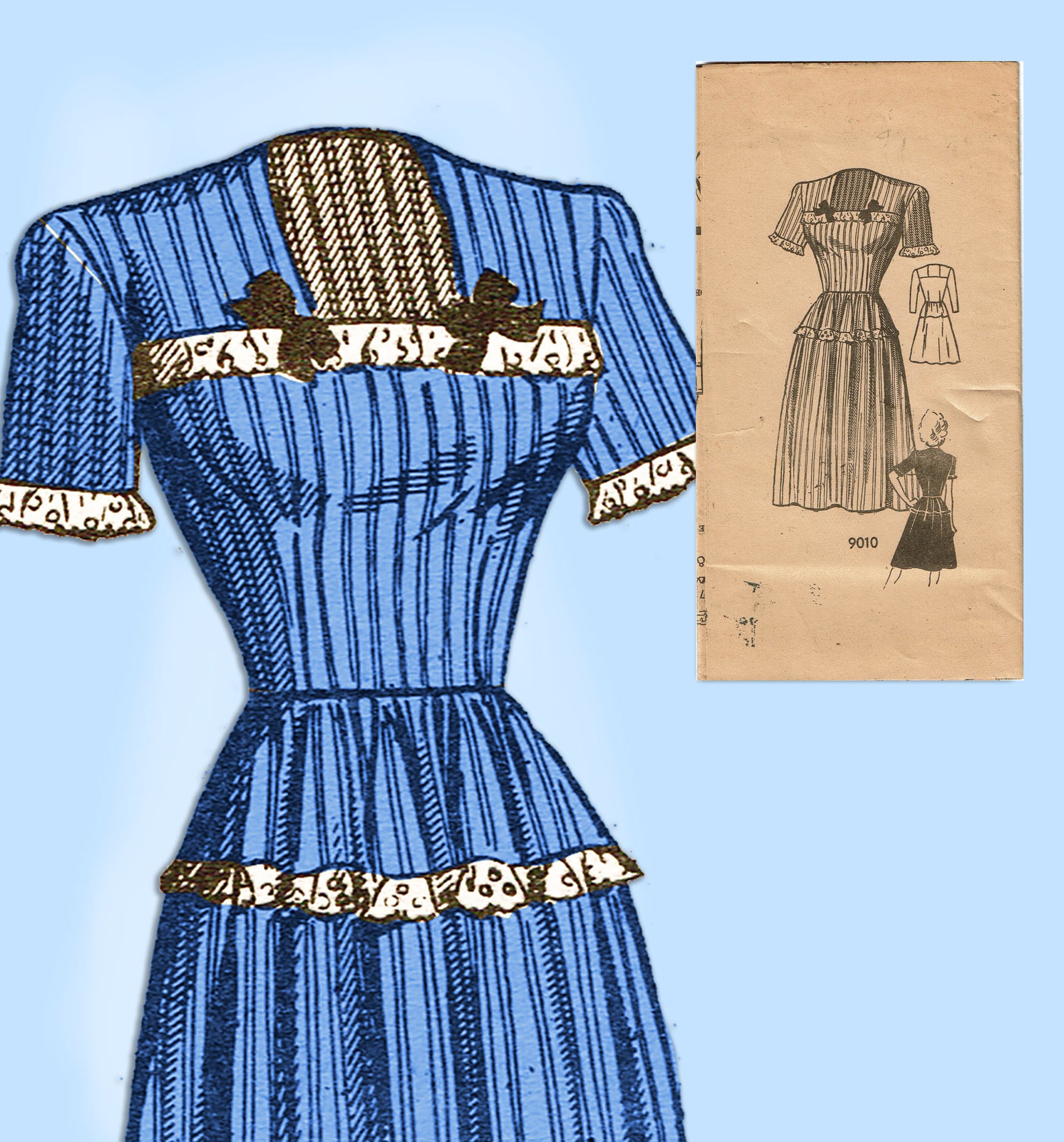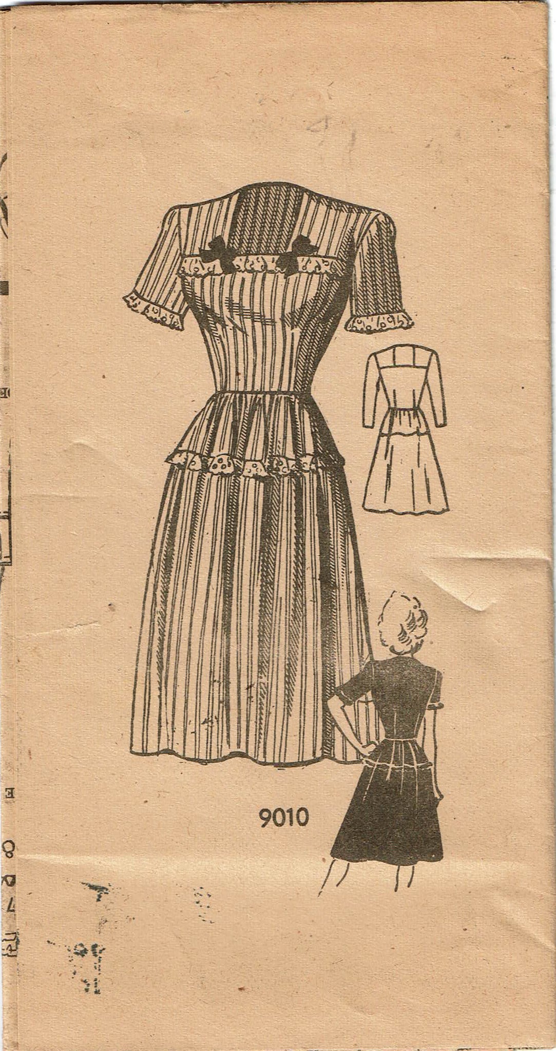 Marian Martin 9010: 1940s Uncut Misses Day Dress Sz 31 Bust Vintage Sewing Pattern
