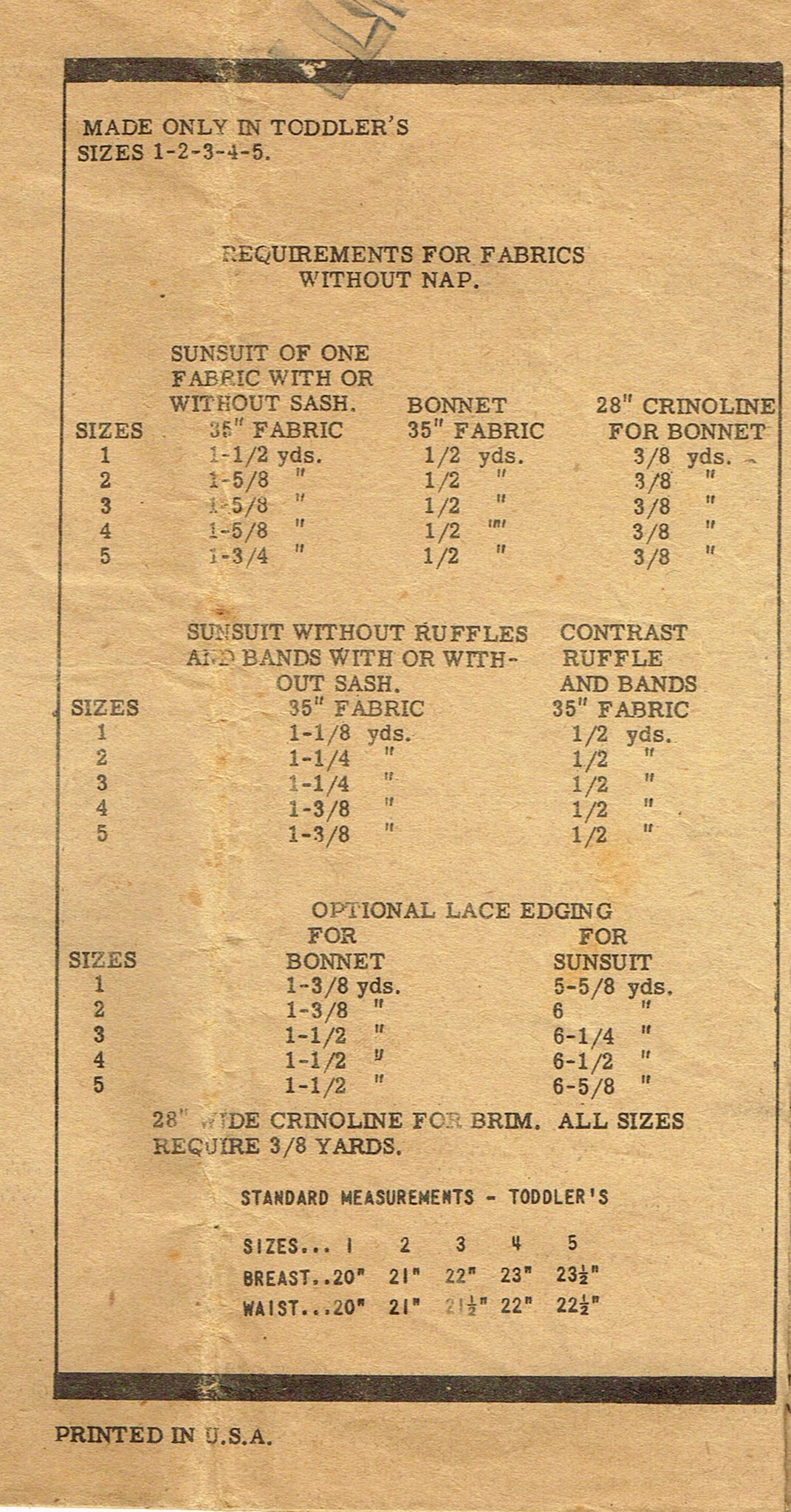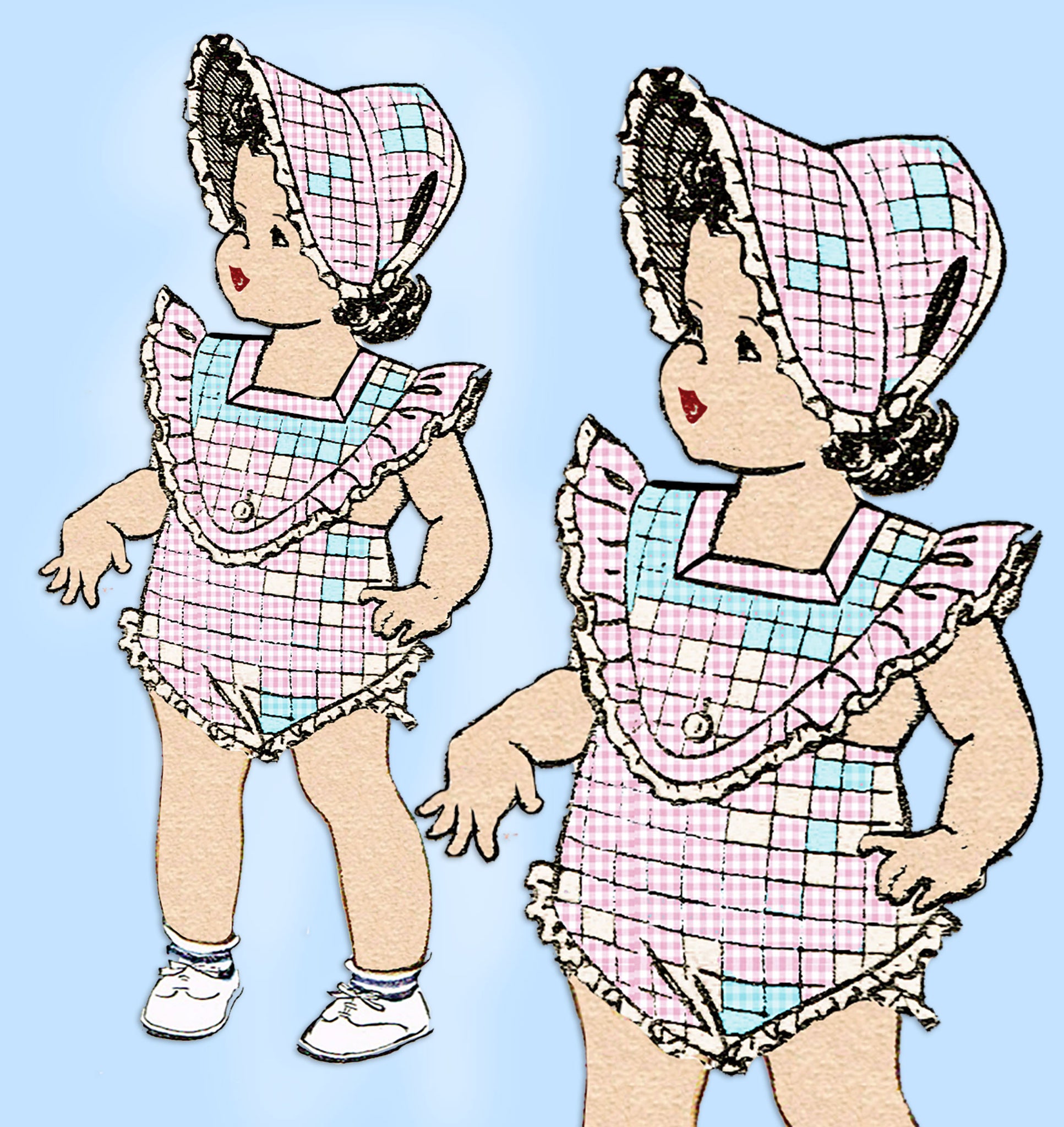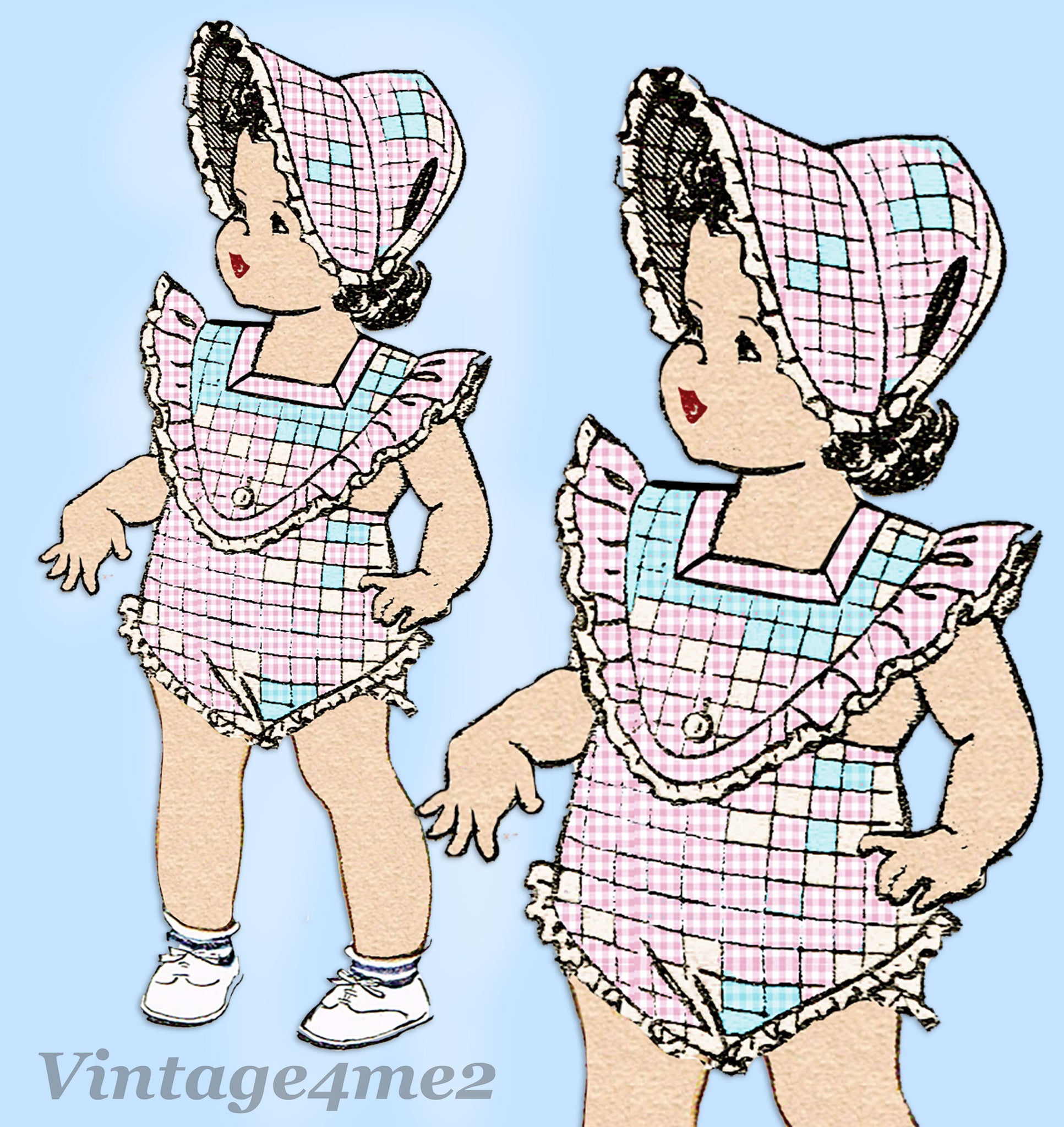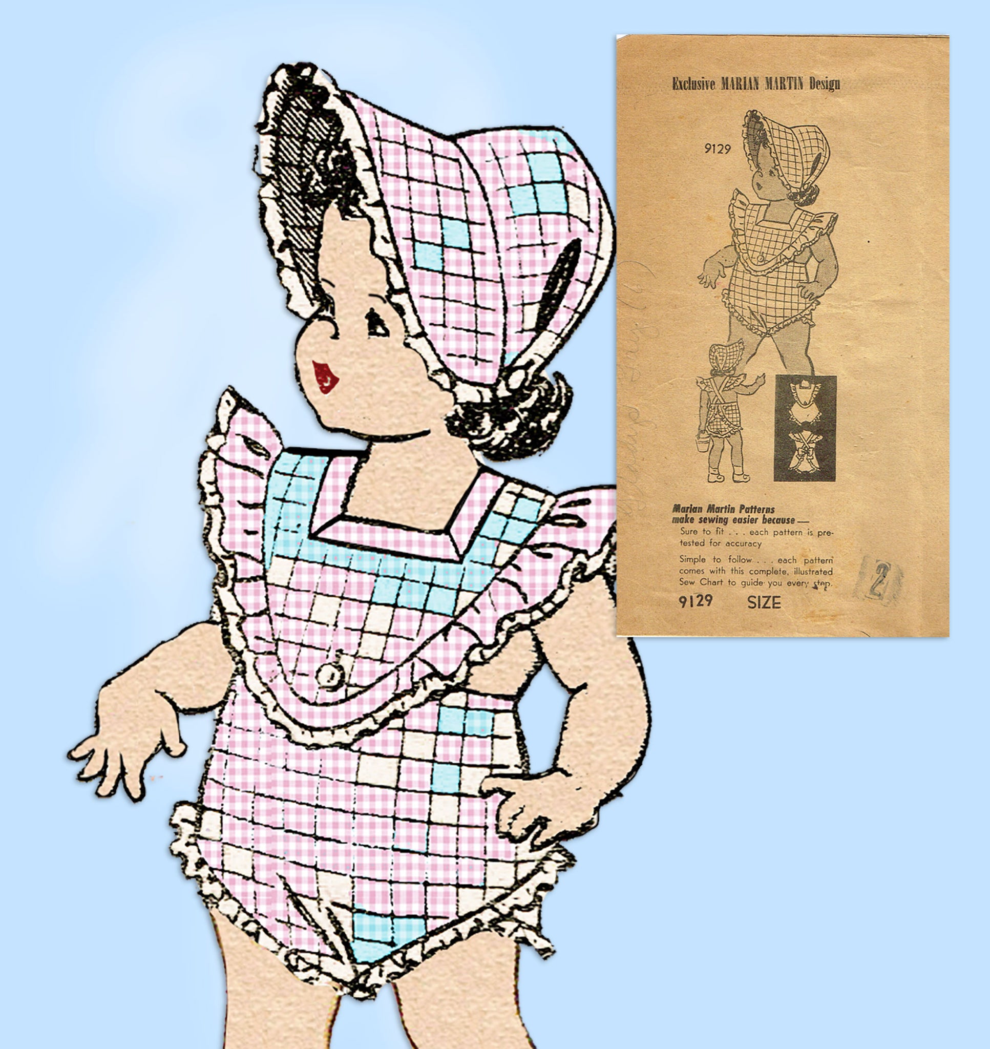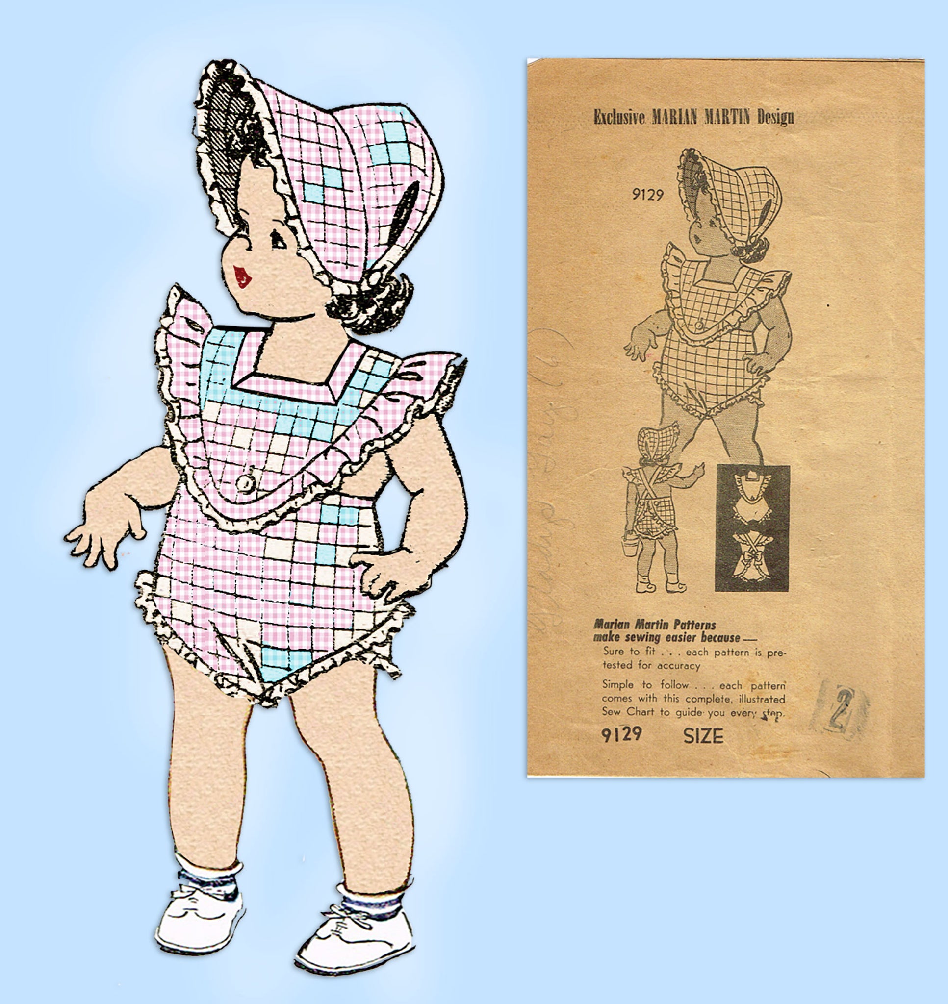 Marian Martin 9129: 1940s Baby Girls Sunsuit & Bonnet Sz2 Vintage Sewing Pattern