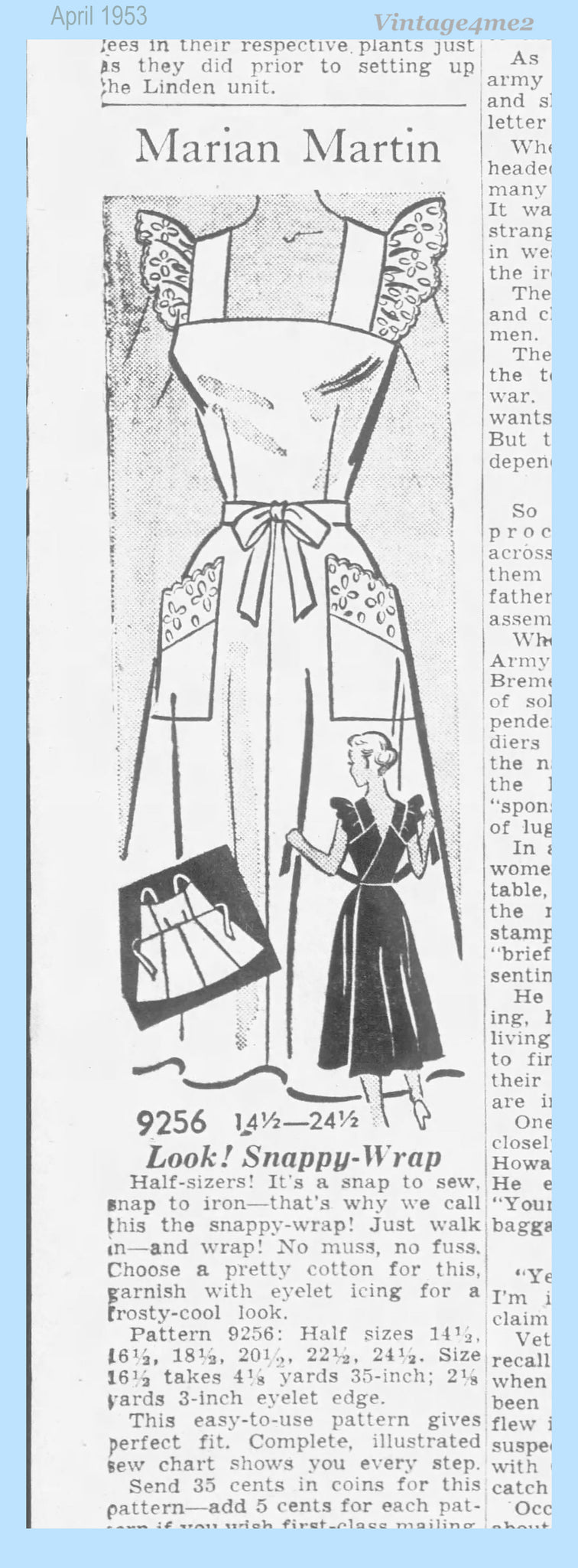 Marian Martin 9256: 1950s Misses Wrap Around Sun Dress 44 B Vintage Sewing Pattern