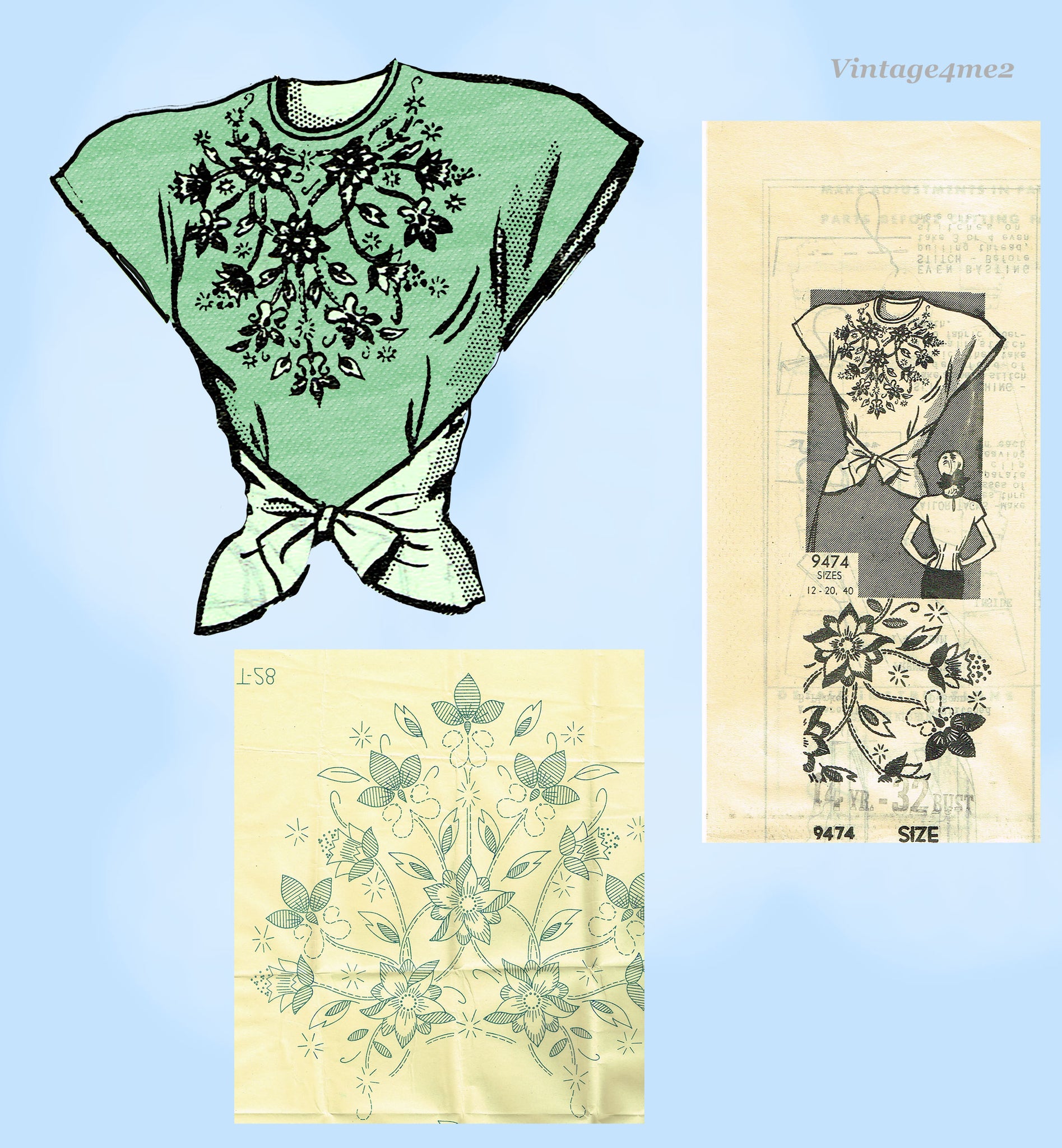 Marian Martin 9471: 1940s Rare Misses Embroidered Wrap Blouse 32 B Vintage Sewing Pattern