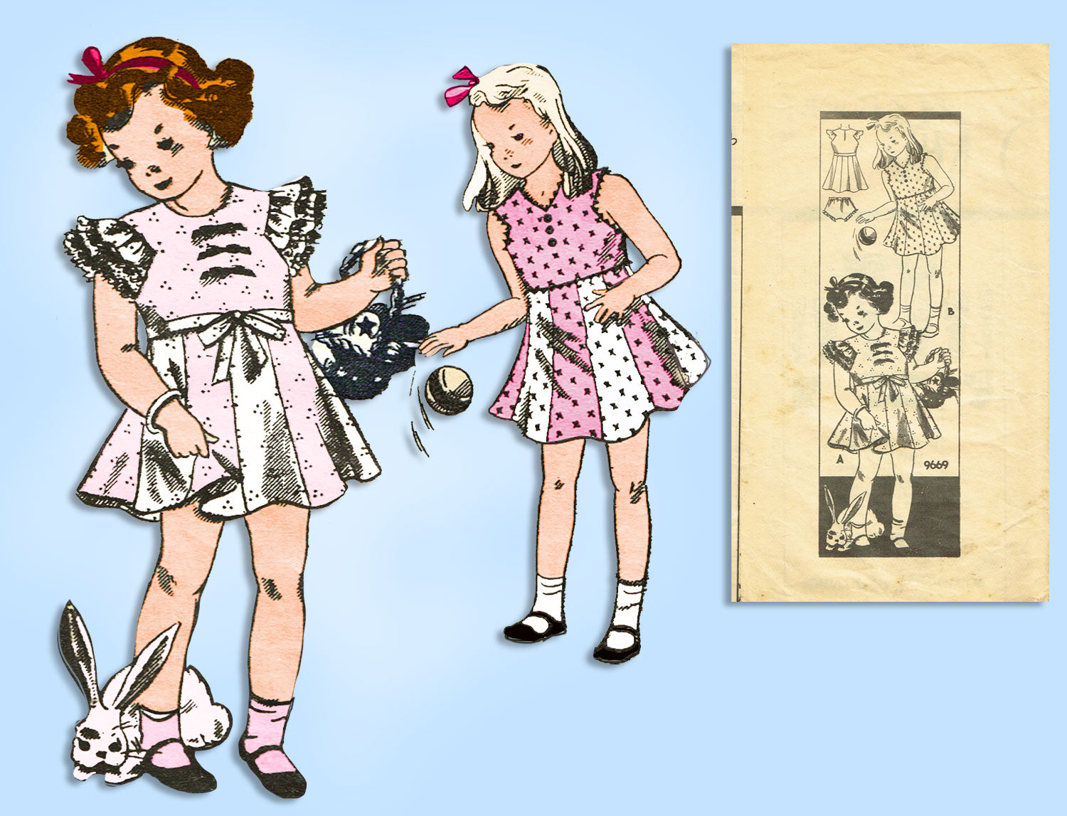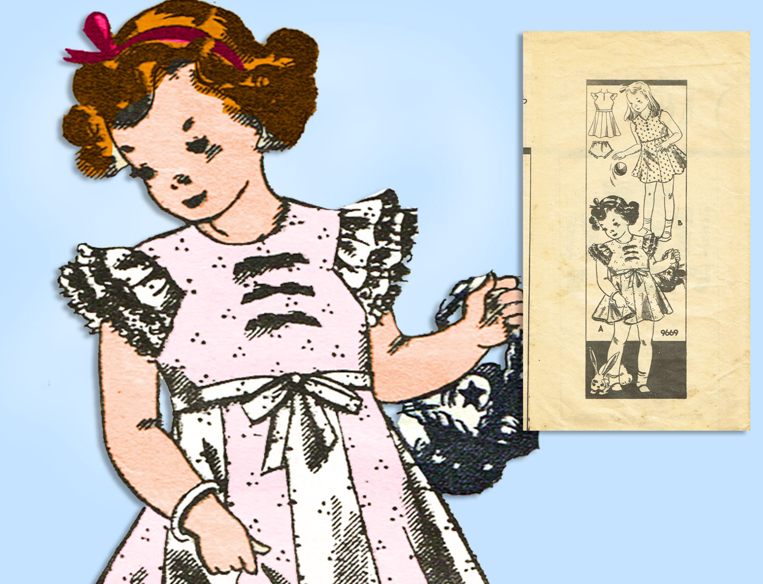 Marian Martin 9669: 1940s Little Girls Dress & Slip Sz 8 Vintage Sewing Pattern