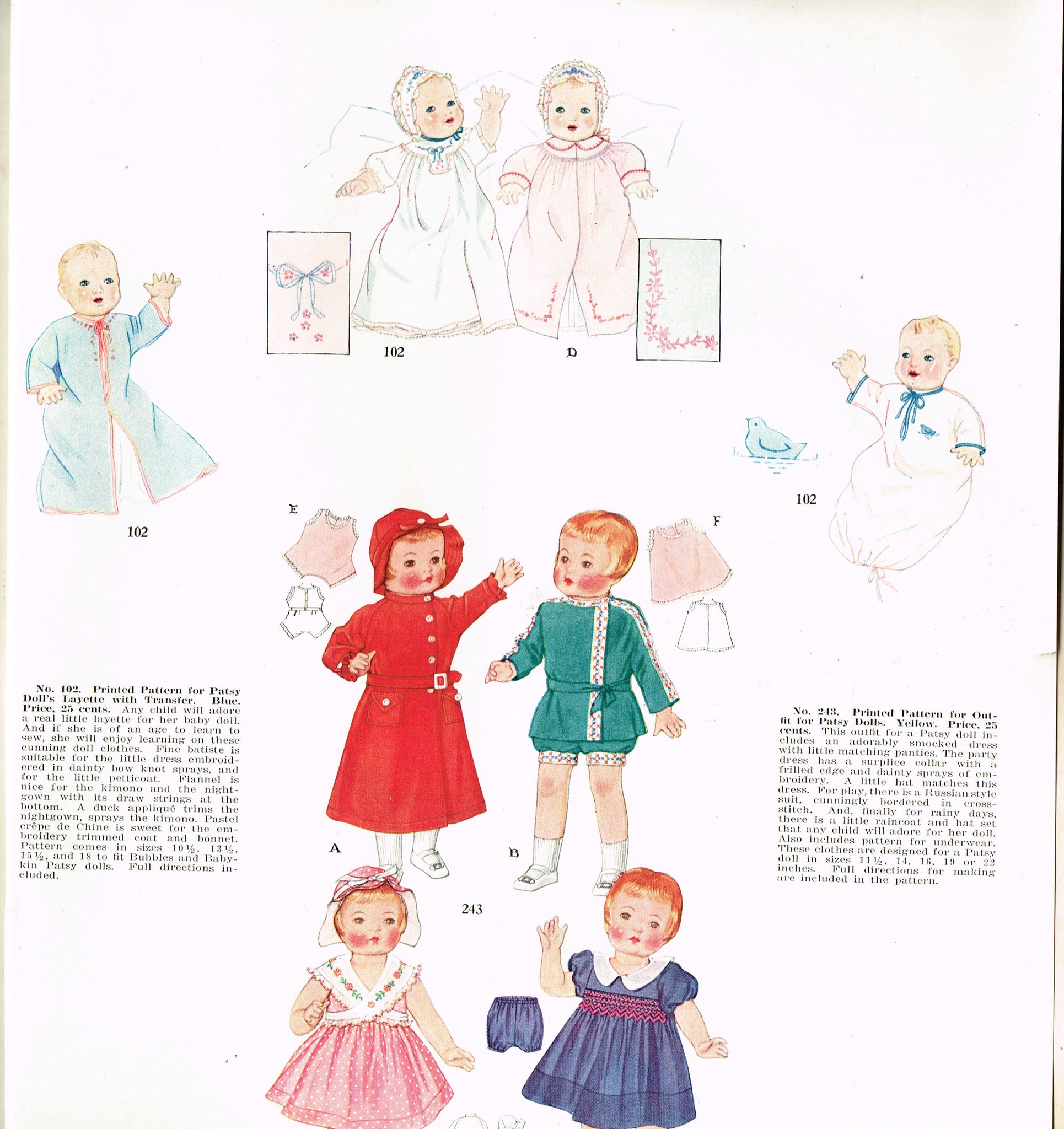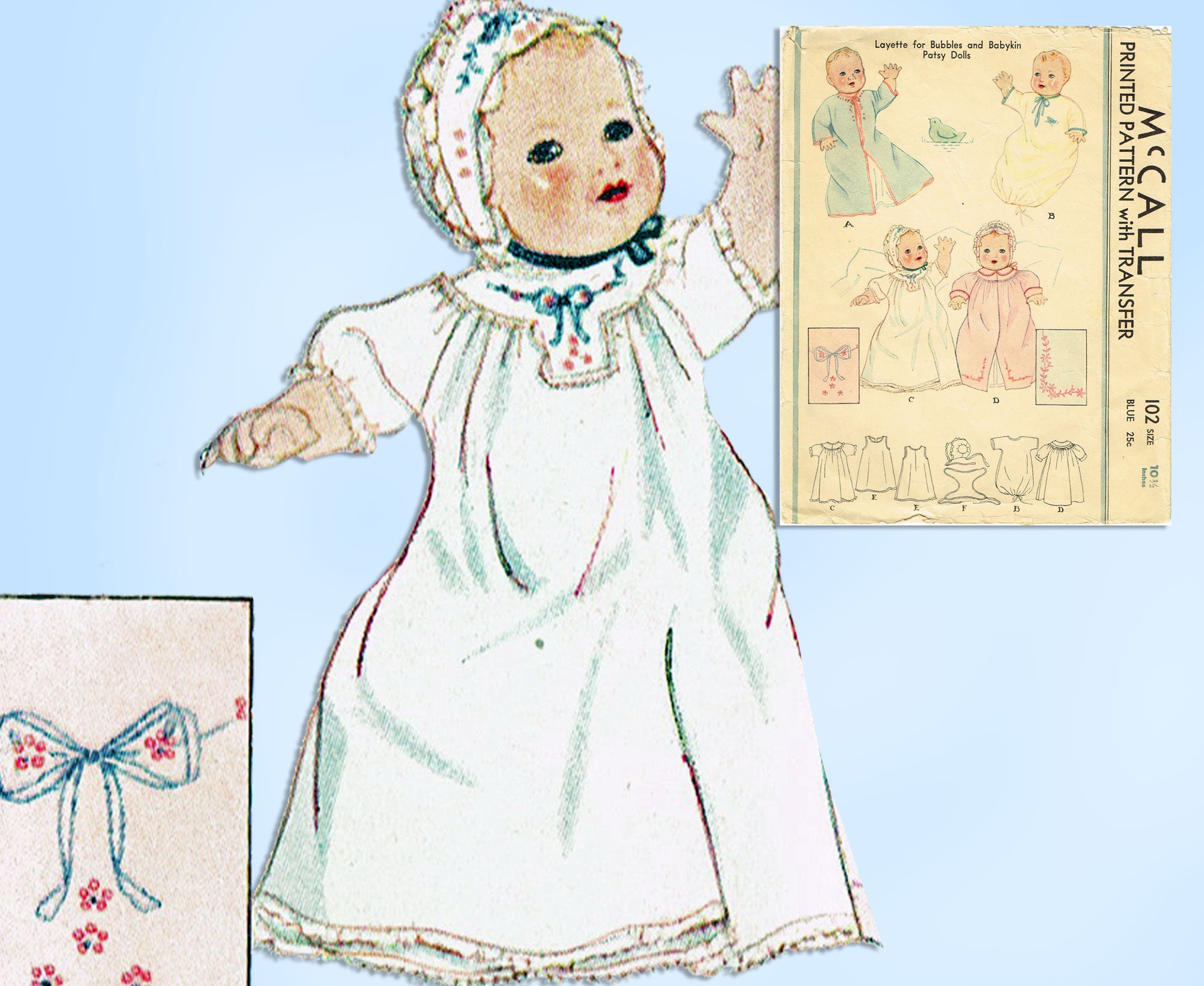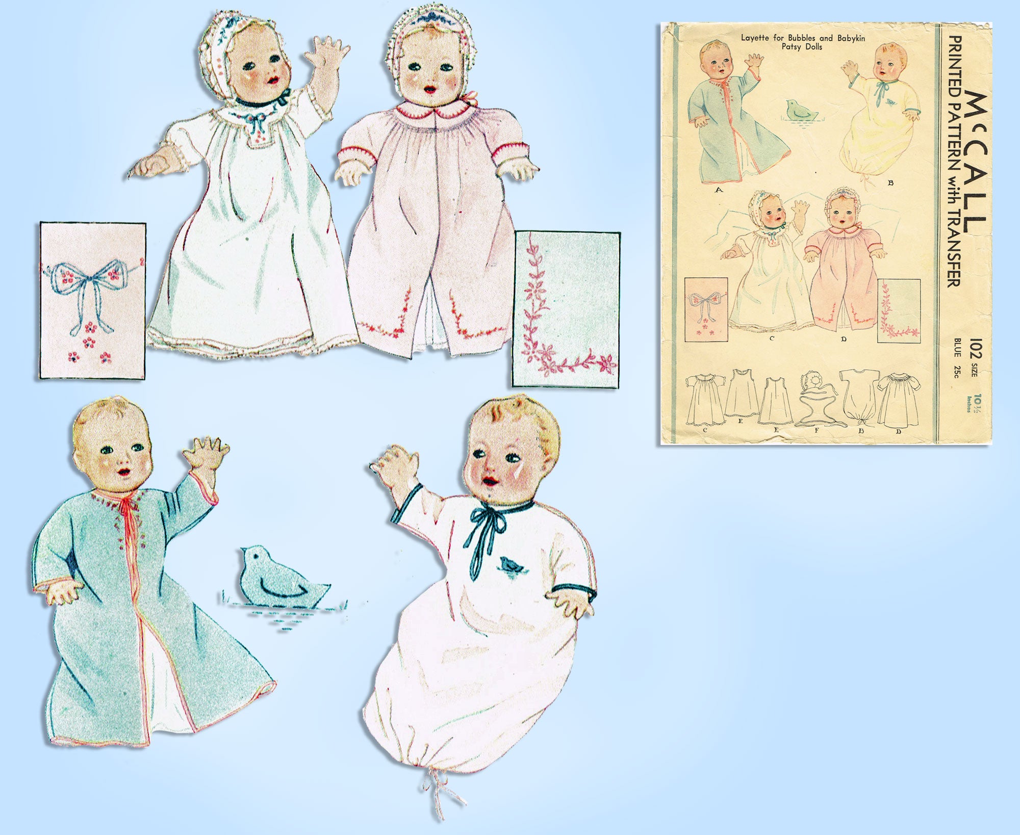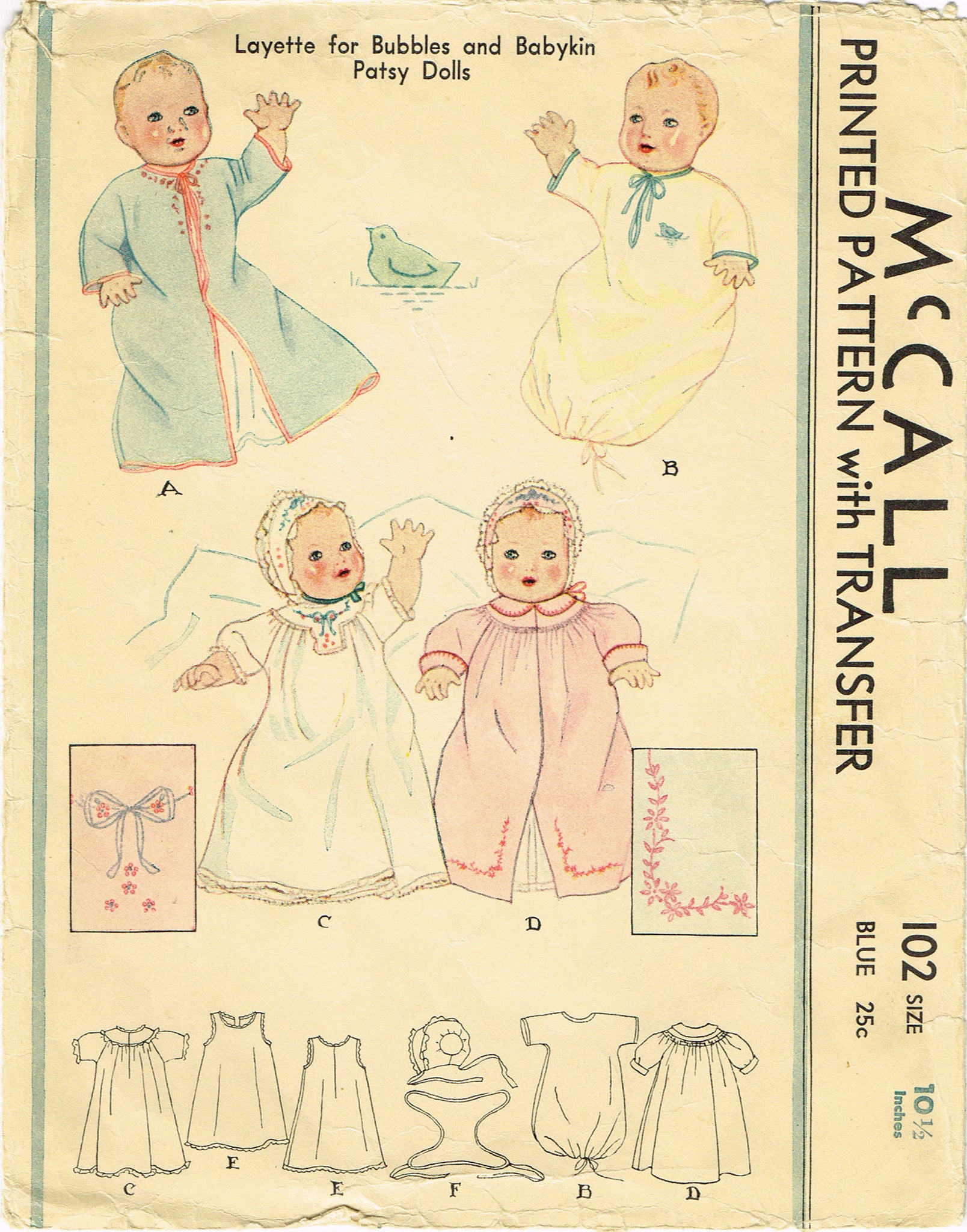 McCall 102: 1930s Bubbles & Babykin Patsy Doll Clothes Vintage Sewing Pattern