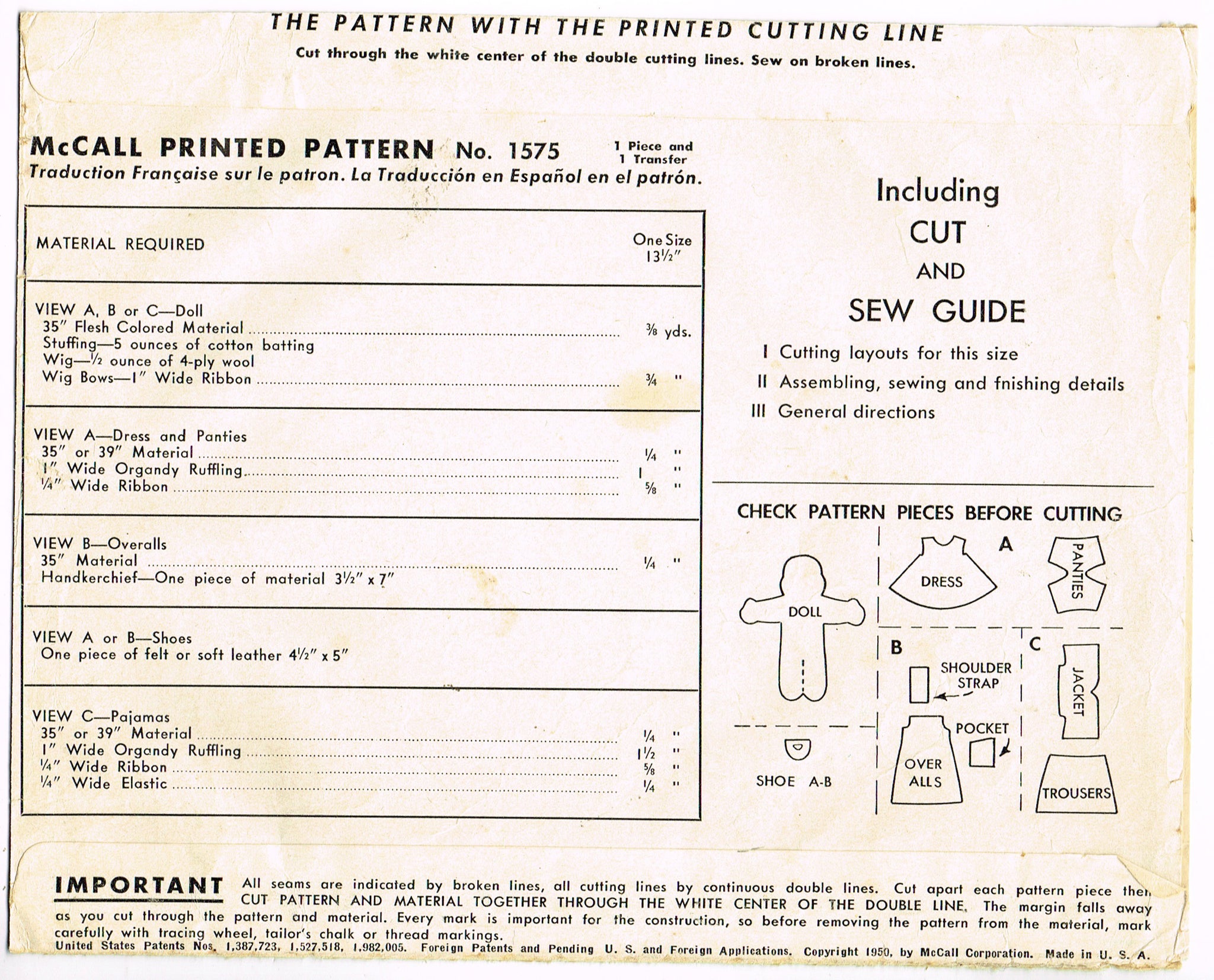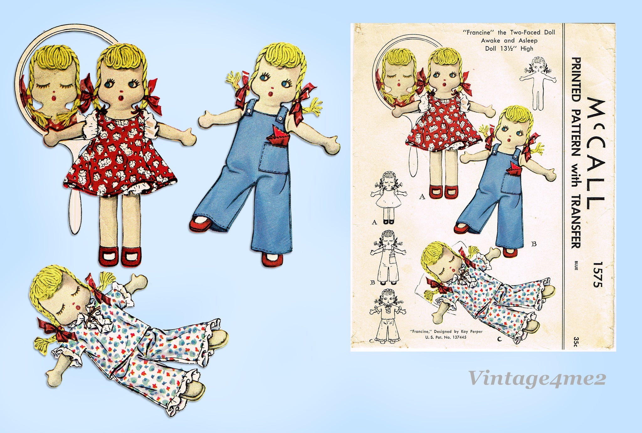 McCall 1575: 1950s Uncut Francine Soft Doll & Clothes Set Vintage Sewing Pattern